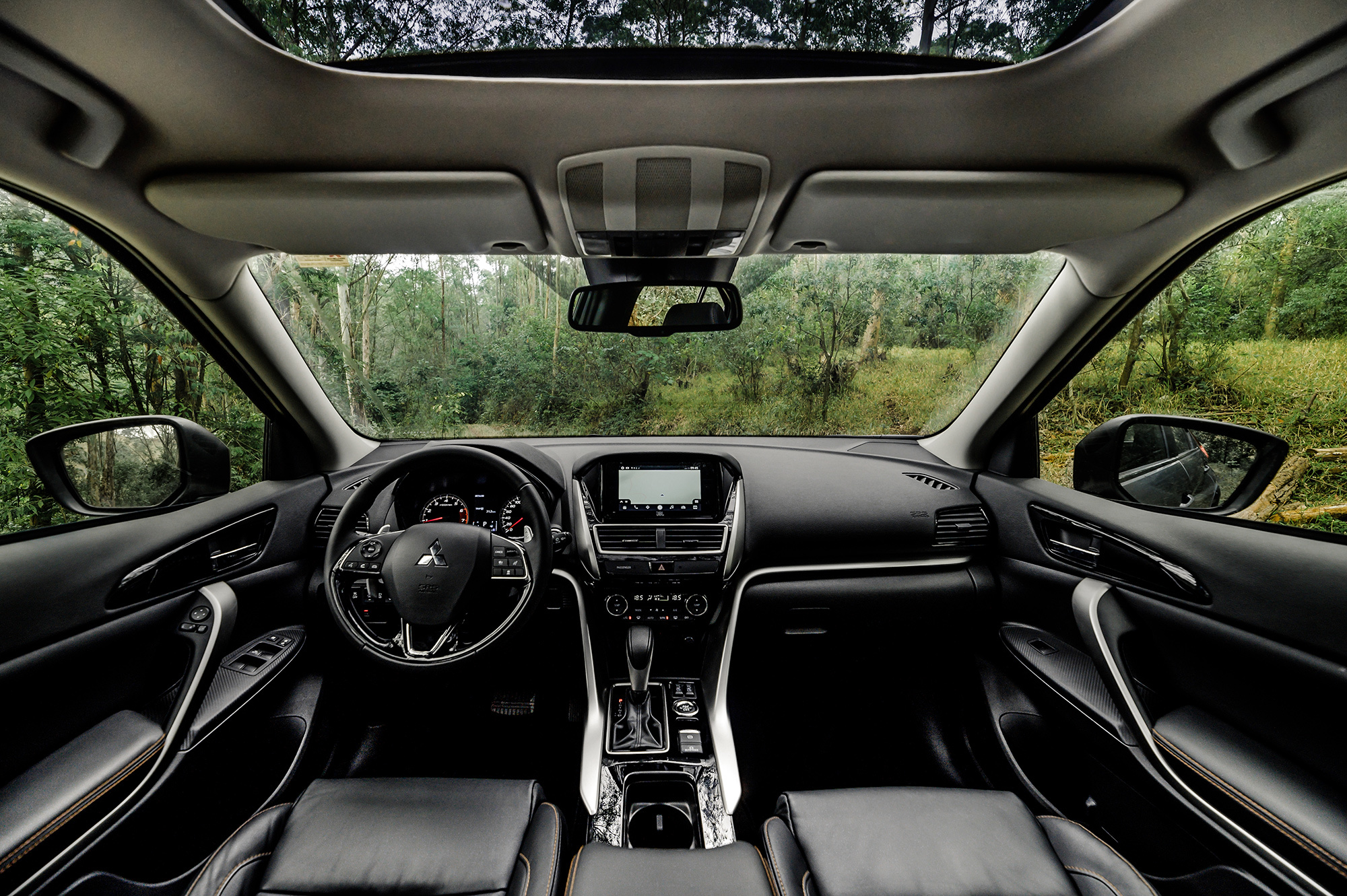 Вторая версия абсолютно полярная по сути. Её назвали Sport, и автомобиль в этом исполнении выглядит не менее эффектно, чем Eclipse Cross Outdoor. Оспортивленный кроссовер щеголяет расширенным аэродинамическим обвесом, включая окрашенные в цвет кузова передний спойлер и накладки на порогах, декоративной внешней отделкой и 18-дюймовыми колёсами чёрного цвета, хотя суппорты красные. Но на этом дизайнеры не остановились и наклеили на капот бутафорские накладки, имитирующие воздуховоды. И таких машин будет сделано всего 200 штук, хотя для внедорожной версии Outdoor тираж не ограничен.