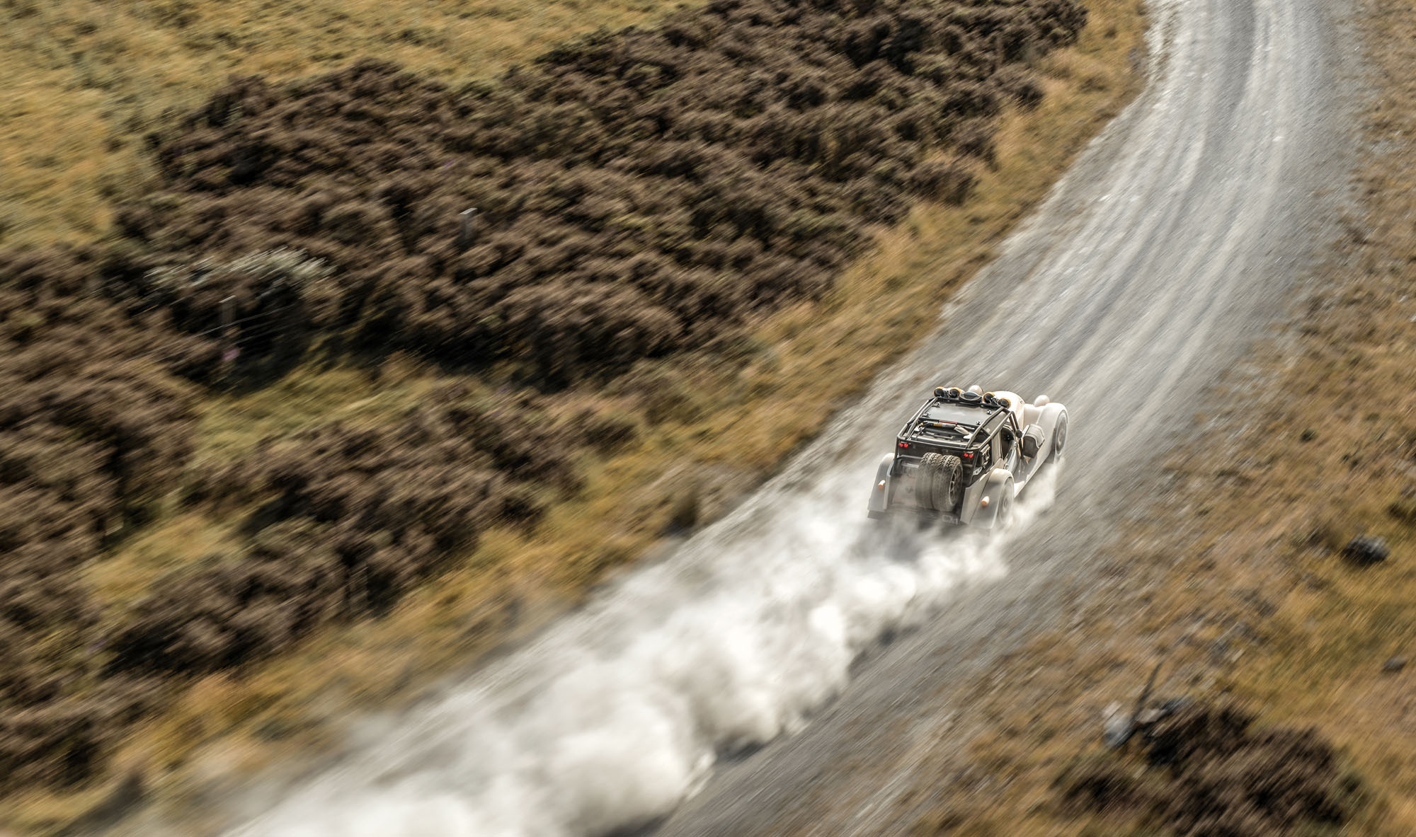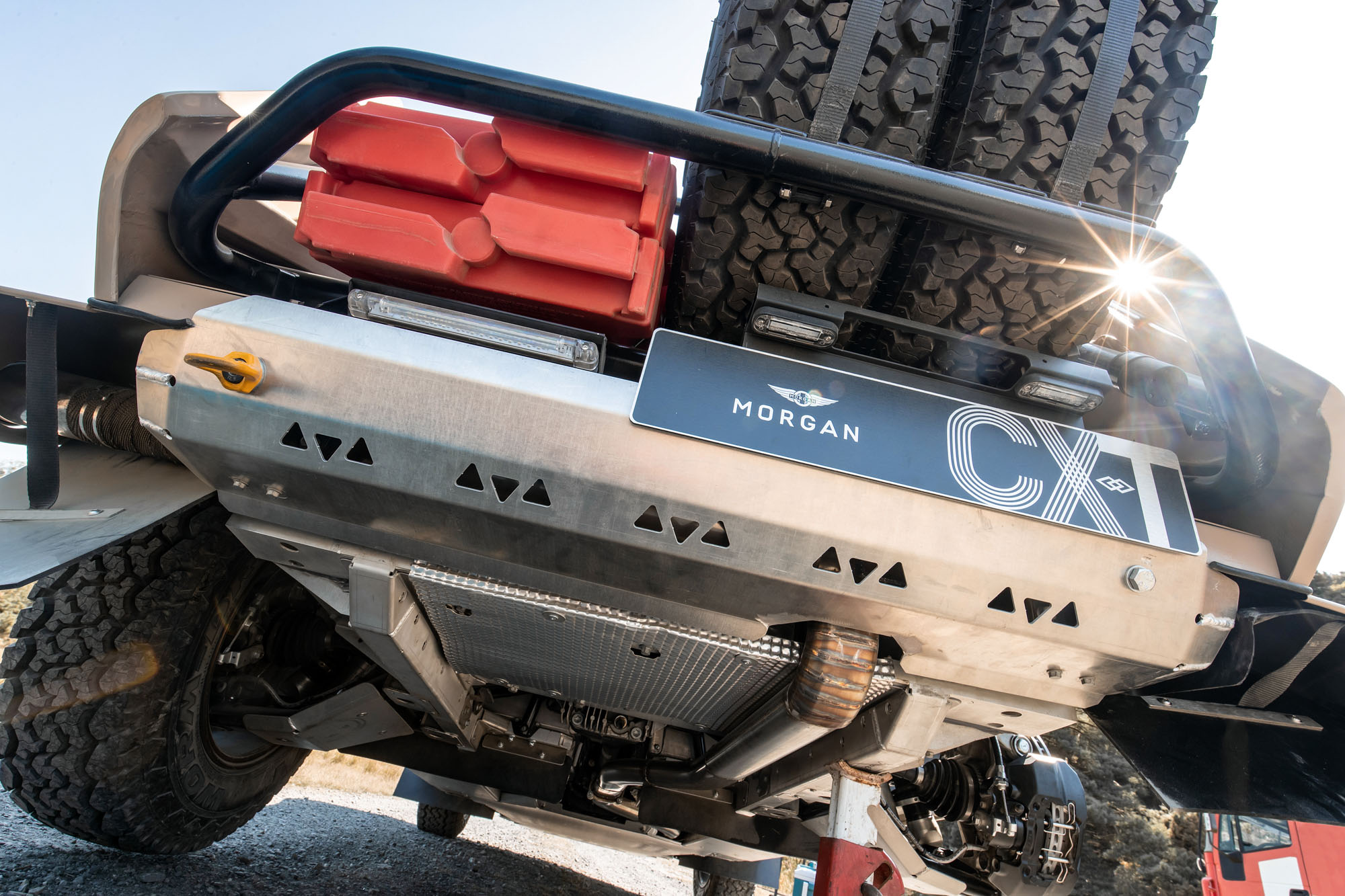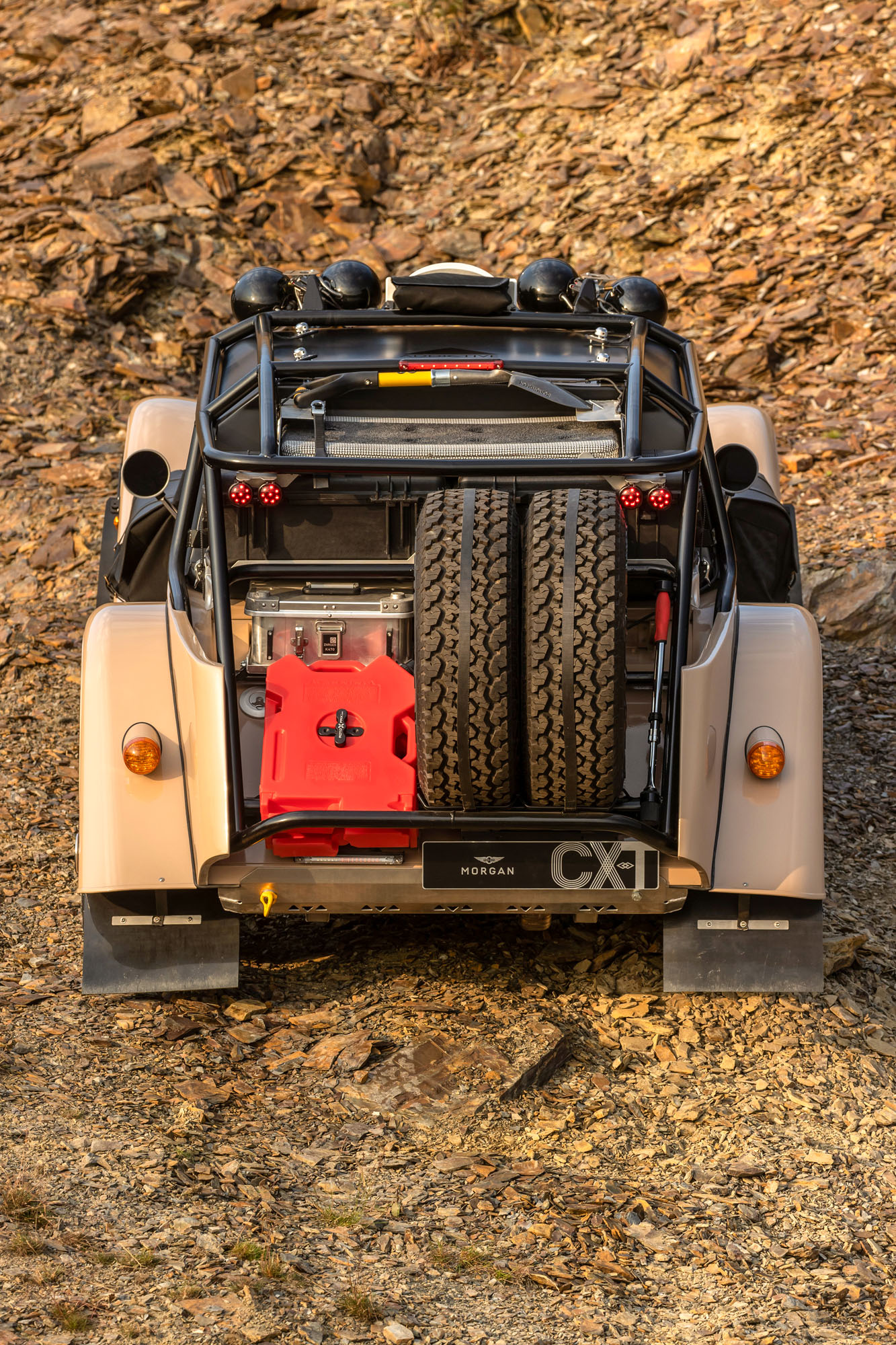 Заднюю панель кузова моргановцы заменили на специальную стойку с оборудованием. В распоряжении водителя оказываются два прочных и водонепроницаемых чемодана Pelican, алюминиевый ящик для снаряжения и инструментов Zarges, два 11-литровых контейнера Rotopax и два запасных колеса в сборе. Дополняют картину прочные буксирные петли спереди и сзади, внешний каркас с внедорожным светом, который можно дополнить креплениями для спортивного снаряжения (велосипеды, доски для серфинга), съёмные боковые стёкла, лопата.