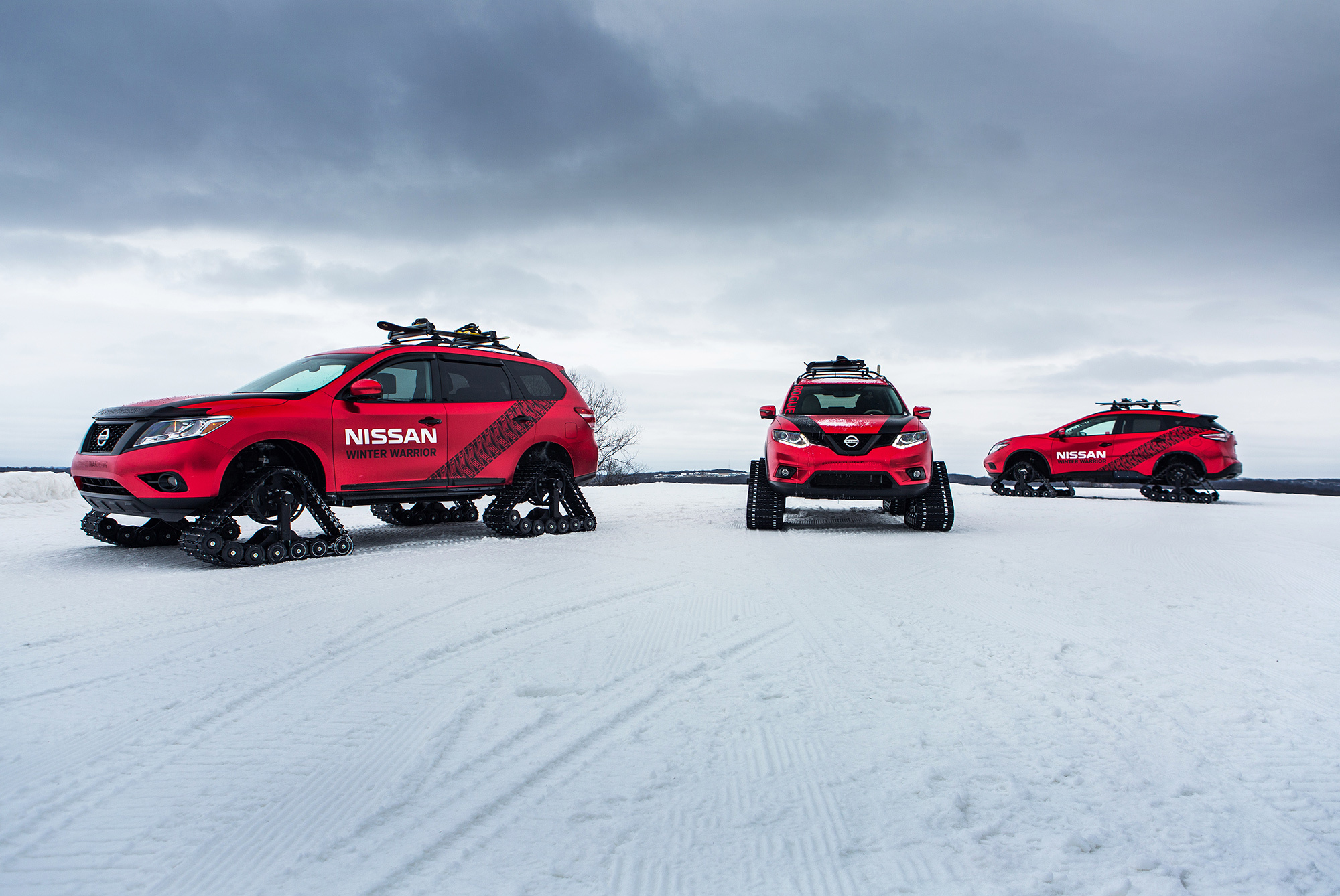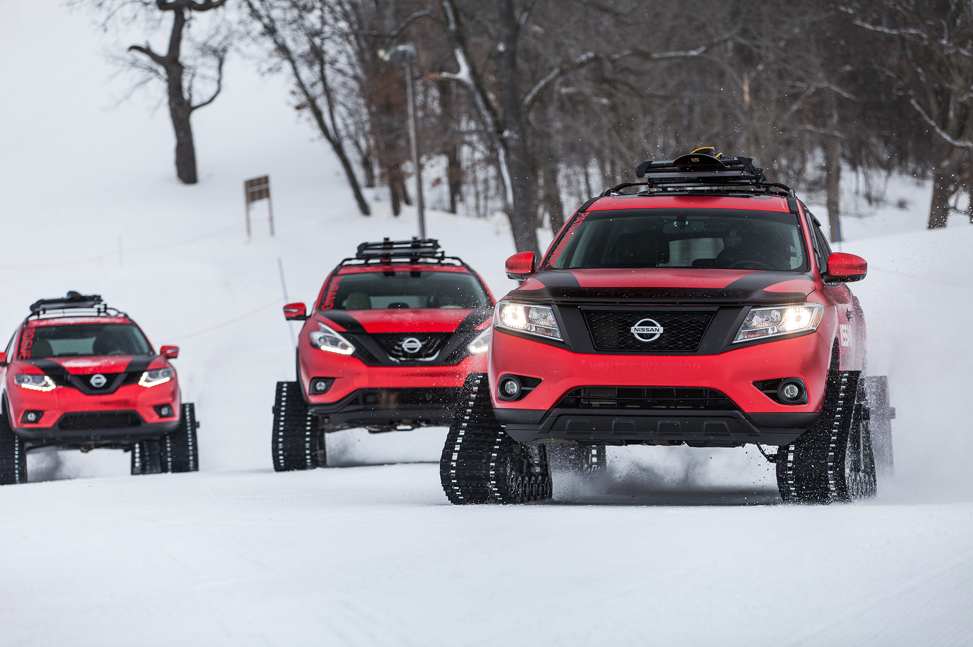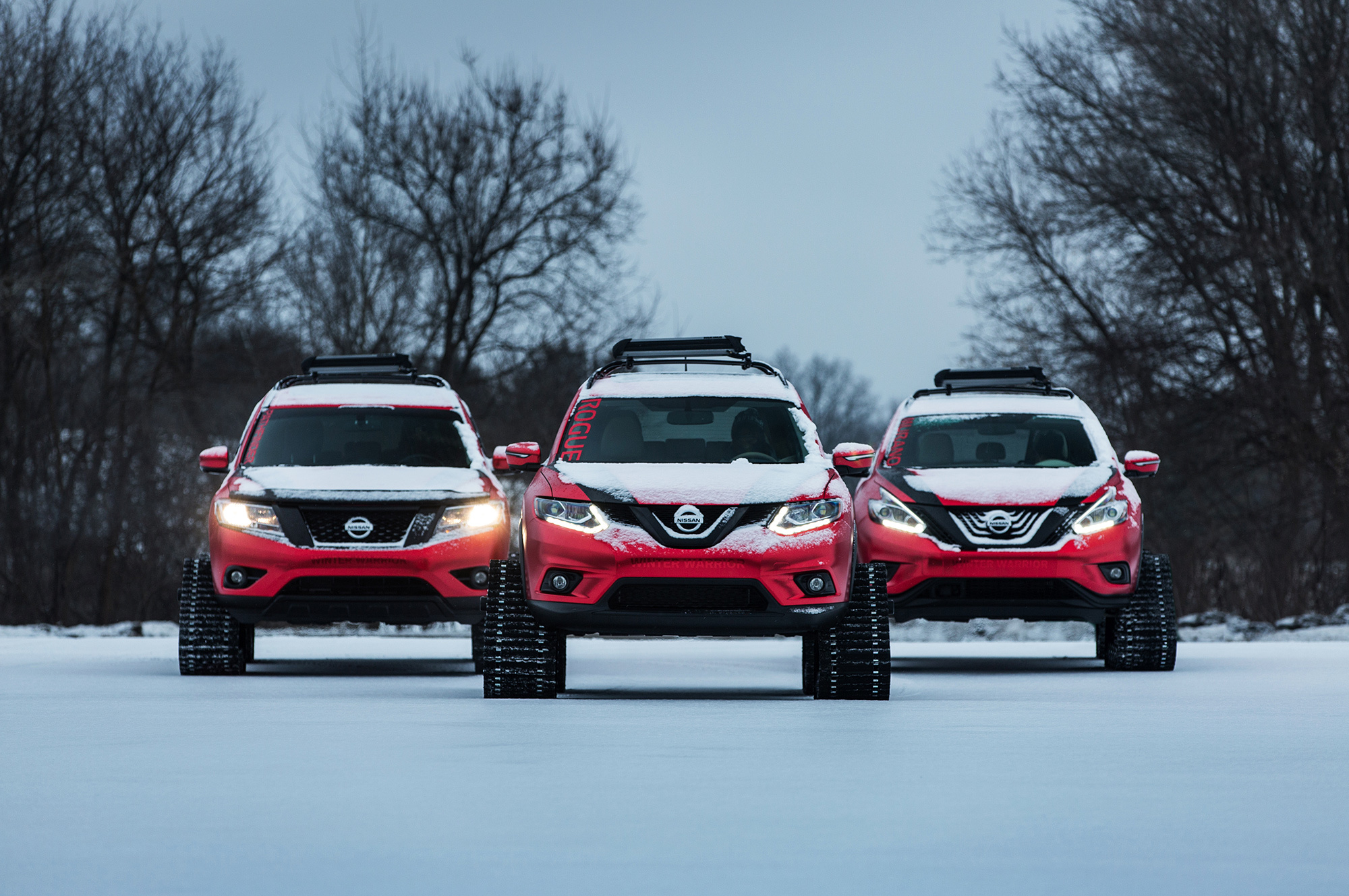 Меньше месяца назад компания Nissan представила переделанный в снежный вездеход кроссовер Rogue (на нашем рынке он продаётся под именем X-Trail). Концептуальный автомобиль справил свой дебют на смотринах в Монреале. А теперь стало известно, что на мотор-шоу в Чикаго будет показано сразу три подобных концепта. Помимо паркетника Rogue японцы поставили на гусеничный ход Murano и Pathfinder.