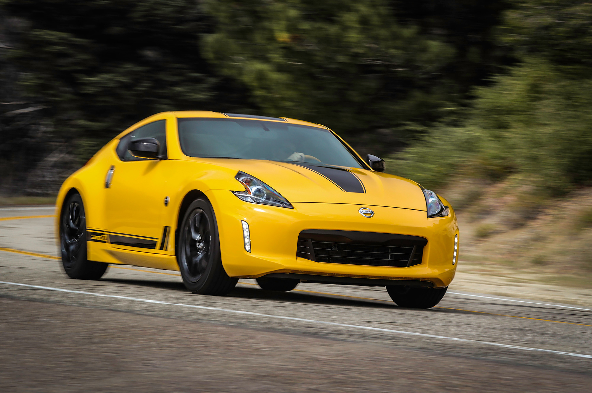 Первый Z-автомобиль появился в октябре 1969 года. Это была модель Nissan Fairlady Z, известная за пределами Японии как Datsun 240Z. Независимая подвеска всех колёс, дисковые тормоза спереди и рядная 154-сильная «шестёрка» 2.4. Такой передовой по тем временам спорткар можно поздравить и заранее. Правда, с презентом особо не заморачивались. По технике это стандартный 370Z с 337-сильным мотором V6 3.7. Отличие в том, что шестиступенчатая «механика» дополнена усиленным сцеплением Exedy. Вдобавок юбилейный спорткар доступен в одном из двух цветов (жёлтый либо чёрный), а капот, крышу, боковины и дверь багажника украсили наклейками.