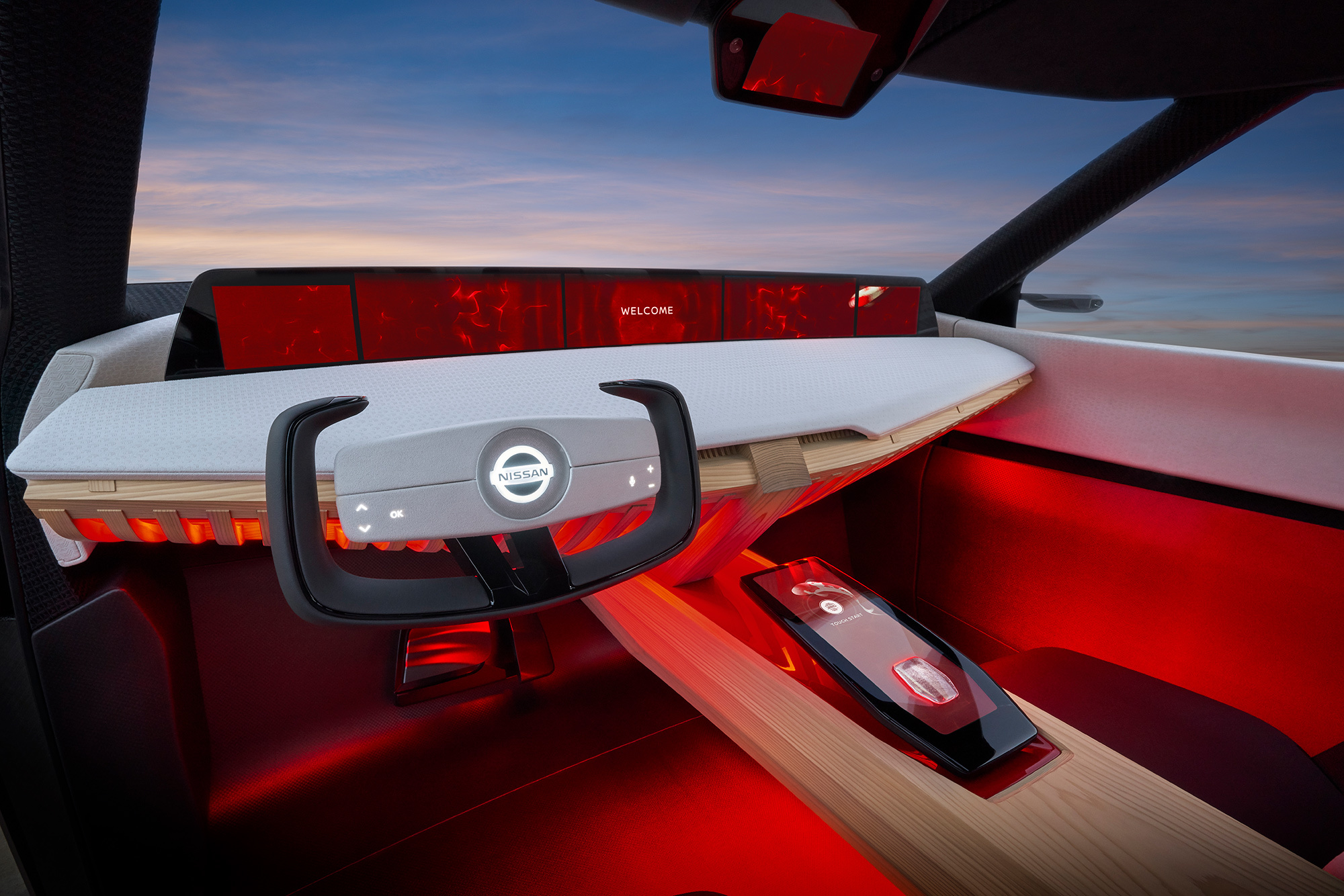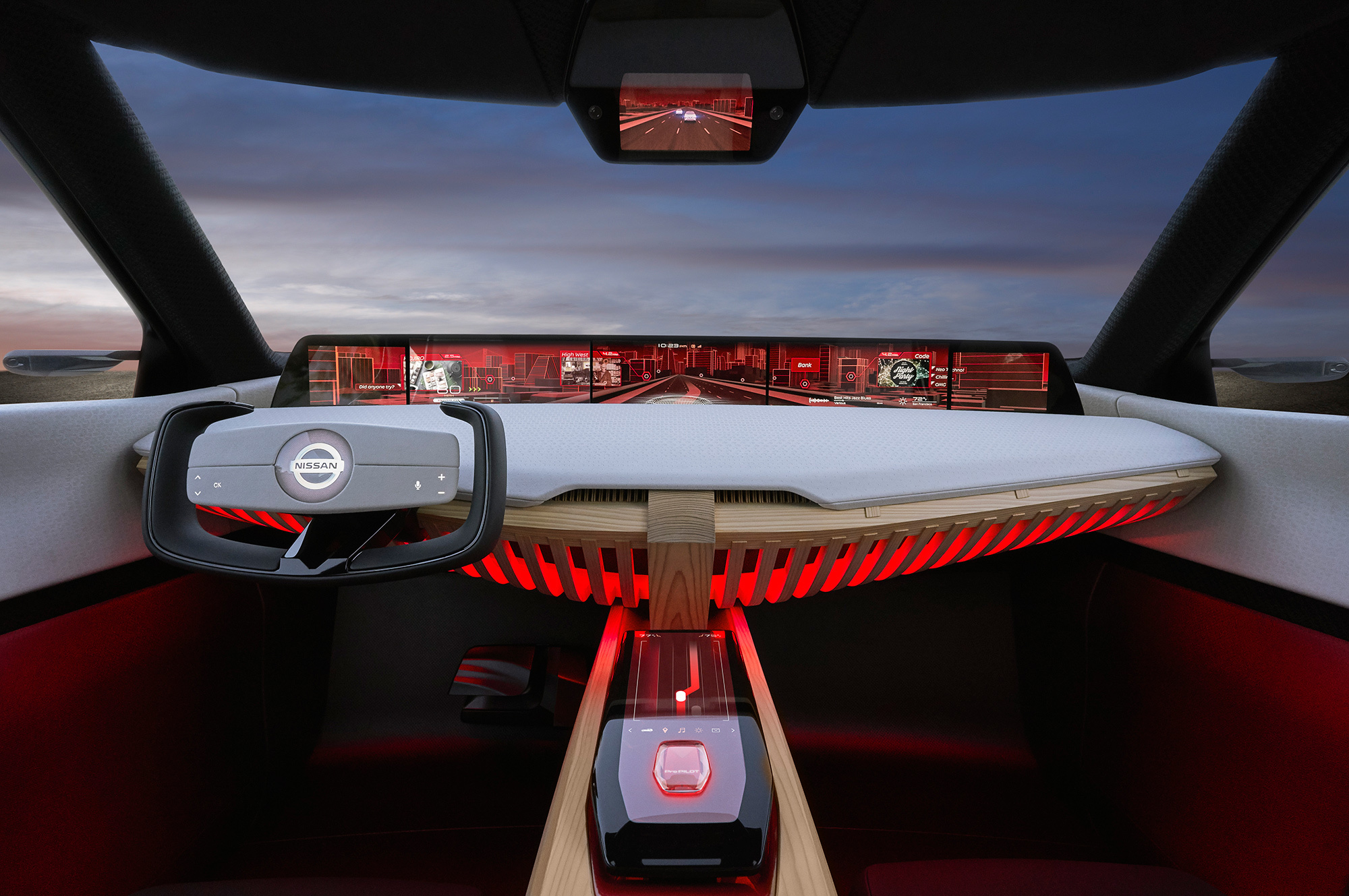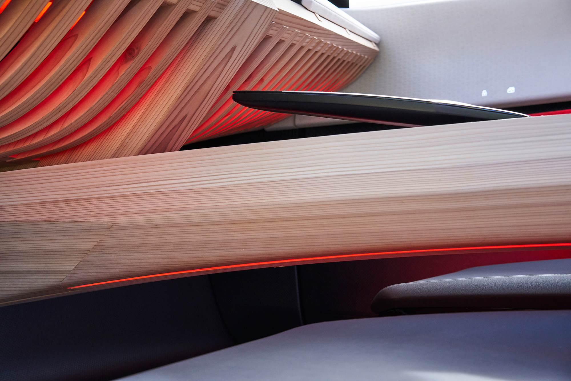 Собственно, это уже второй «очень японский» концепт марки, первым был Nissan IMx. Стилисты говорят, что постигали эстетику Страны восходящего солнца в музеях, читали литературу, беседовали с ремесленниками, строителями храмов. Традиционный деревянный конструктор кумики снова пригодился. О нём напоминают задние фонари с эффектом оптической иллюзии, созданной посредством голограмм. Во внутренней структуре бамперов применено углеволокно, сплетённое в районе Нишиджин, известном текстилем для кимоно и гобеленов. А теперь обратимся к интерьеру и представим, что пол — это лава. Точнее, река.