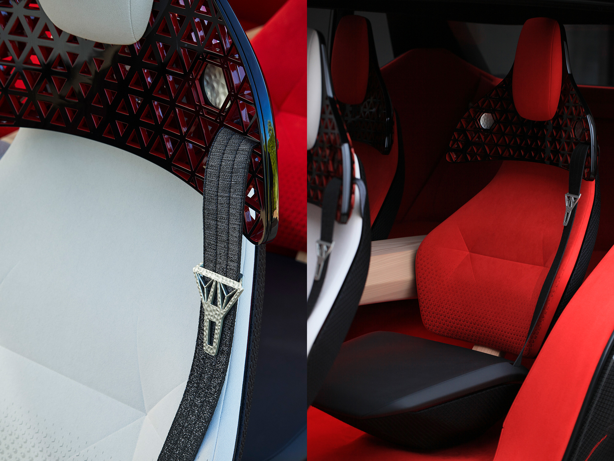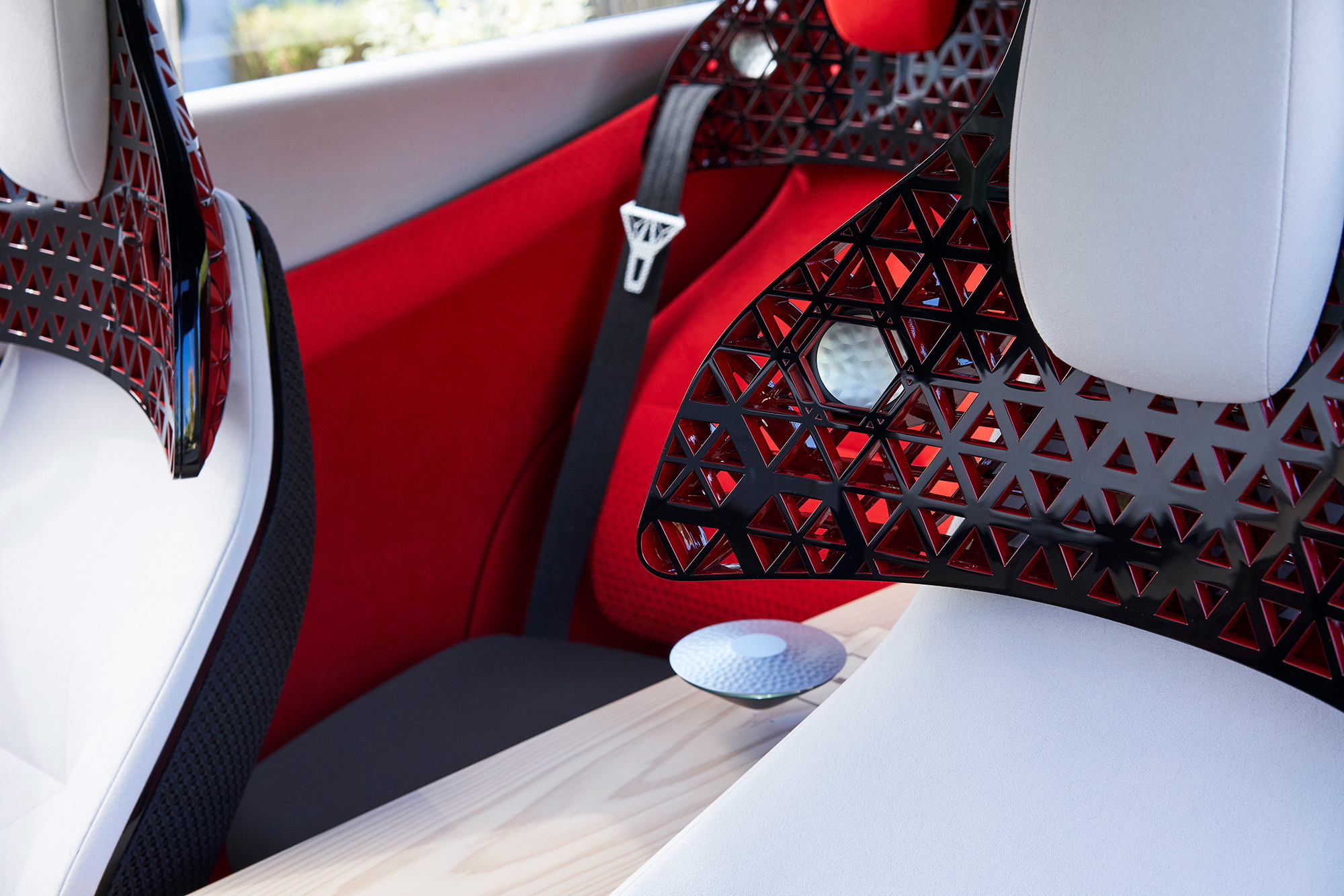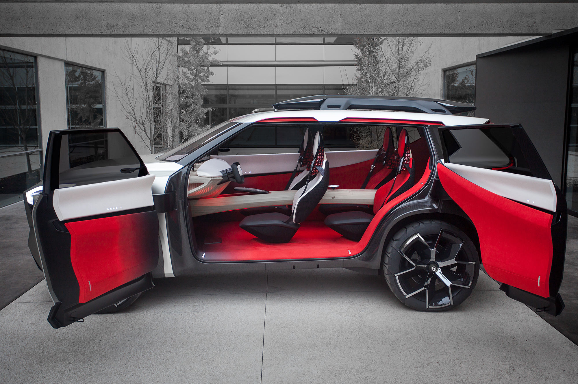 Собственно, это уже второй «очень японский» концепт марки, первым был Nissan IMx. Стилисты говорят, что постигали эстетику Страны восходящего солнца в музеях, читали литературу, беседовали с ремесленниками, строителями храмов. Традиционный деревянный конструктор кумики снова пригодился. О нём напоминают задние фонари с эффектом оптической иллюзии, созданной посредством голограмм. Во внутренней структуре бамперов применено углеволокно, сплетённое в районе Нишиджин, известном текстилем для кимоно и гобеленов. А теперь обратимся к интерьеру и представим, что пол — это лава. Точнее, река.