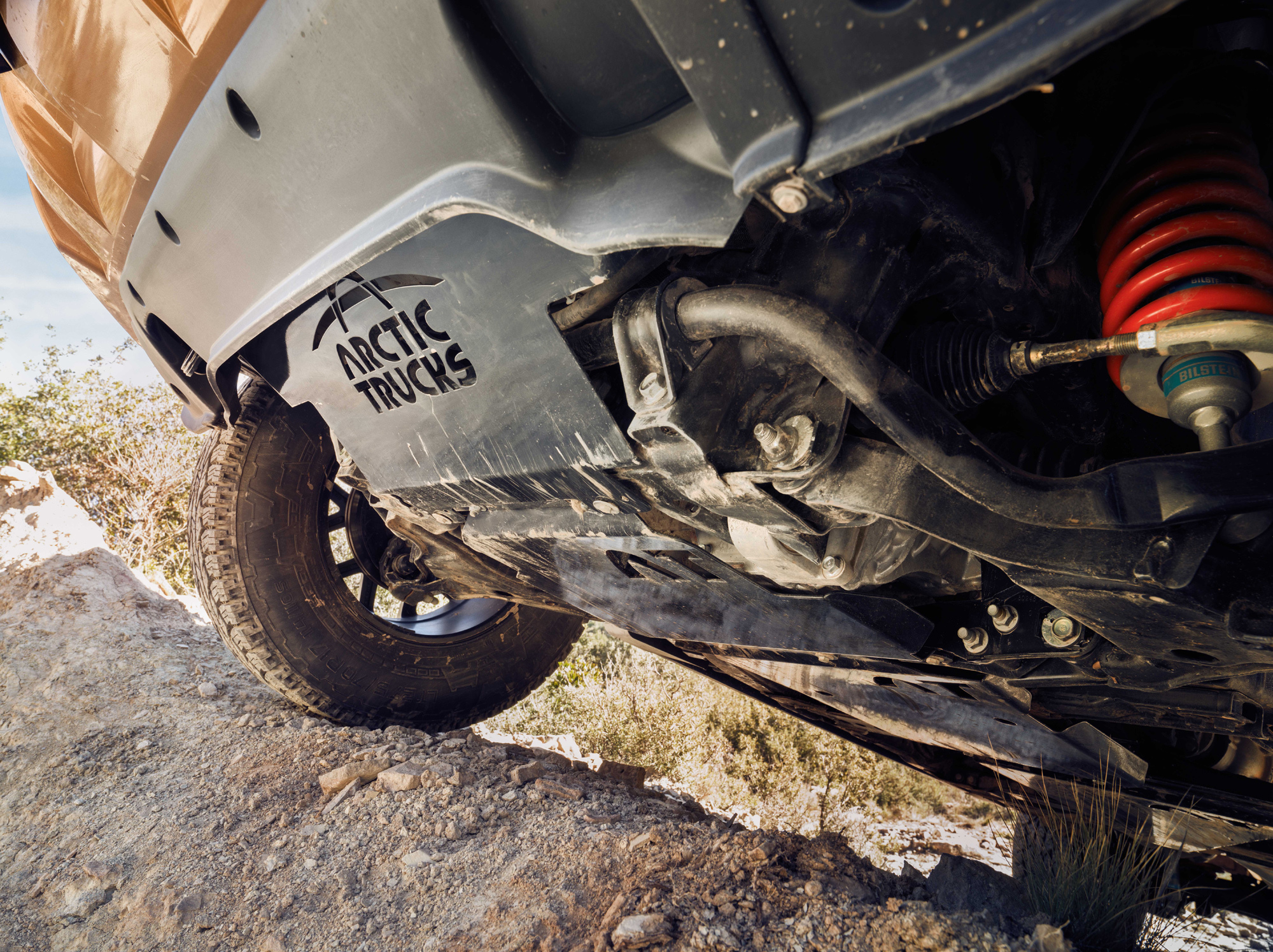 Подвеска Навары Off-Roader AT32 лифтована на 20 мм (с 223 до 243 мм), а вместе с 32-дюймовыми шинами, красующимися на 17-дюймовых дисках, это дало общую прибавку высоты модели в 40 мм. Угол въезда увеличился с 30,4 градуса до 35, а угол рампы — с 22,2 до 24. В базовое оснащение входят помощники старта в гору и спуска с холма, а также камеры кругового обзора.