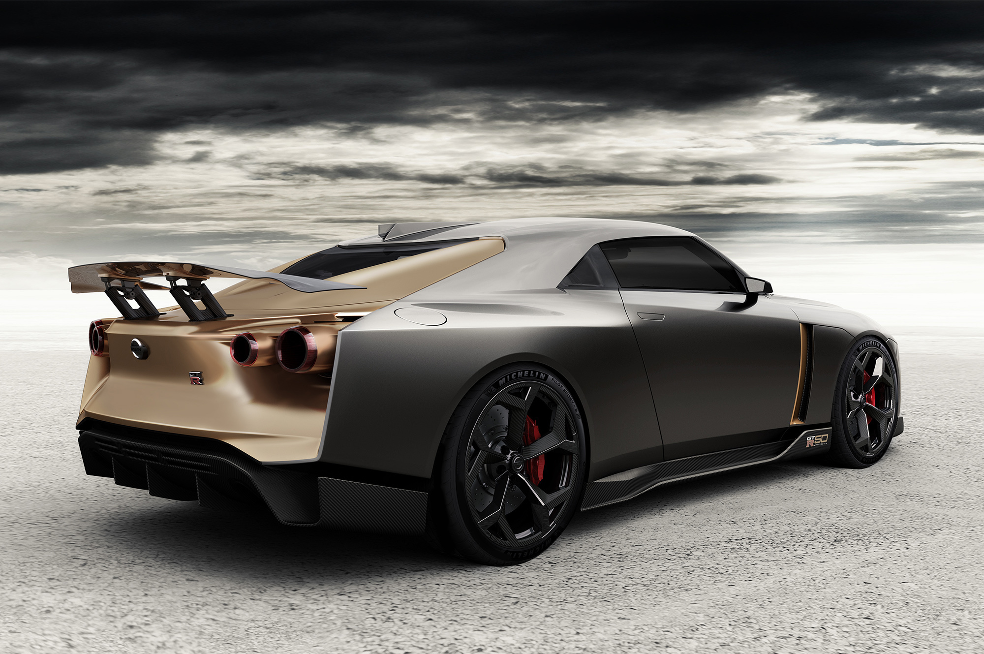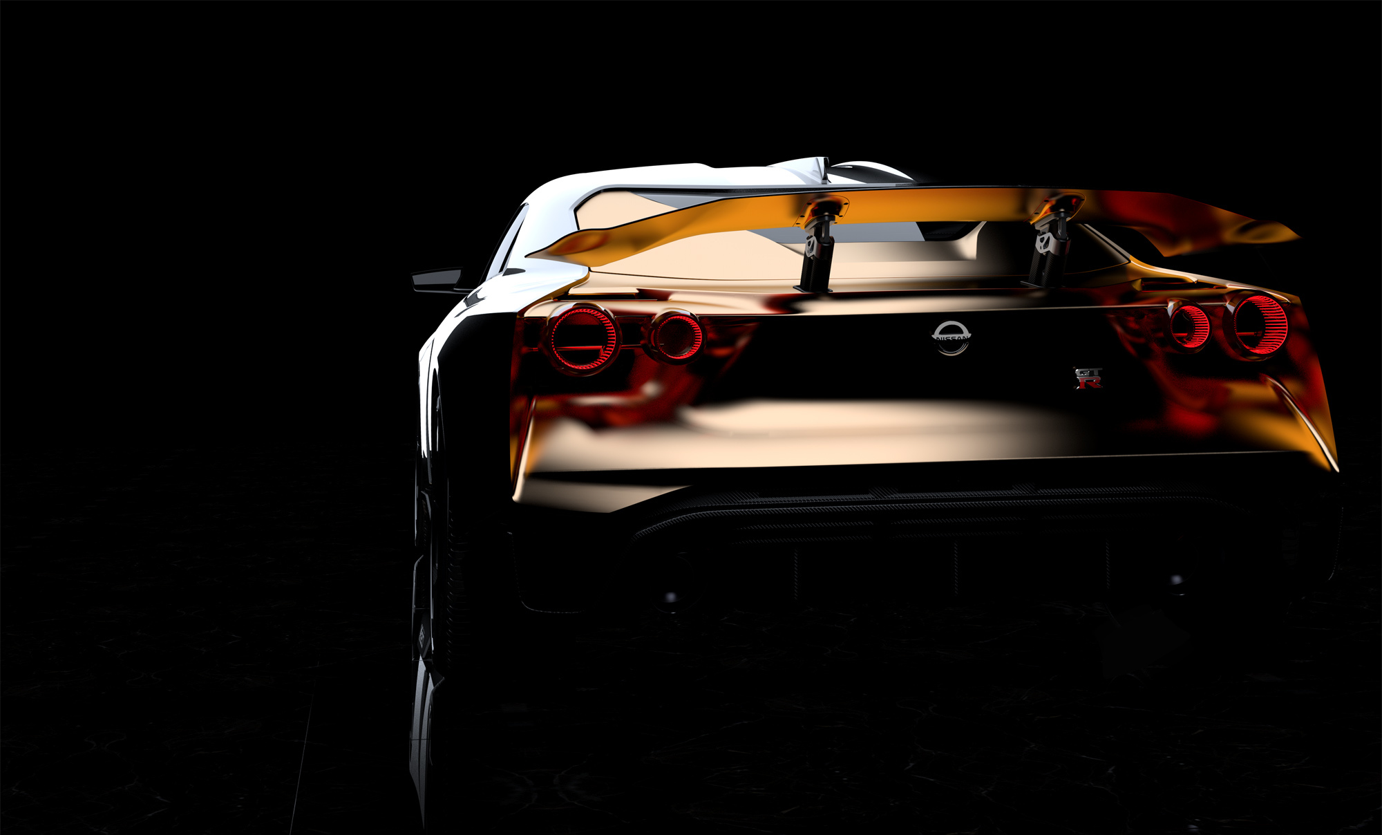 Этот прототип создан на основе «заряженного» купе Nissan GT-R Nismo. Однако кузов подвергся значительной перекройке. Центральный купол на капоте тут рельефнее, чем у исходника, а крыша опущена на 54 мм. Более тонкие и вытянутые светодиодные фары дополнены оригинальной задней оптикой, вентиляционные прорези позади передних крыльев стали крупнее, и, конечно, весь кузов украсили яркие золотистые вставки (цвет назван Energetic Sigma Gold), выделяющиеся на фоне основного серого оттенка Liquid Kinetic Gray.