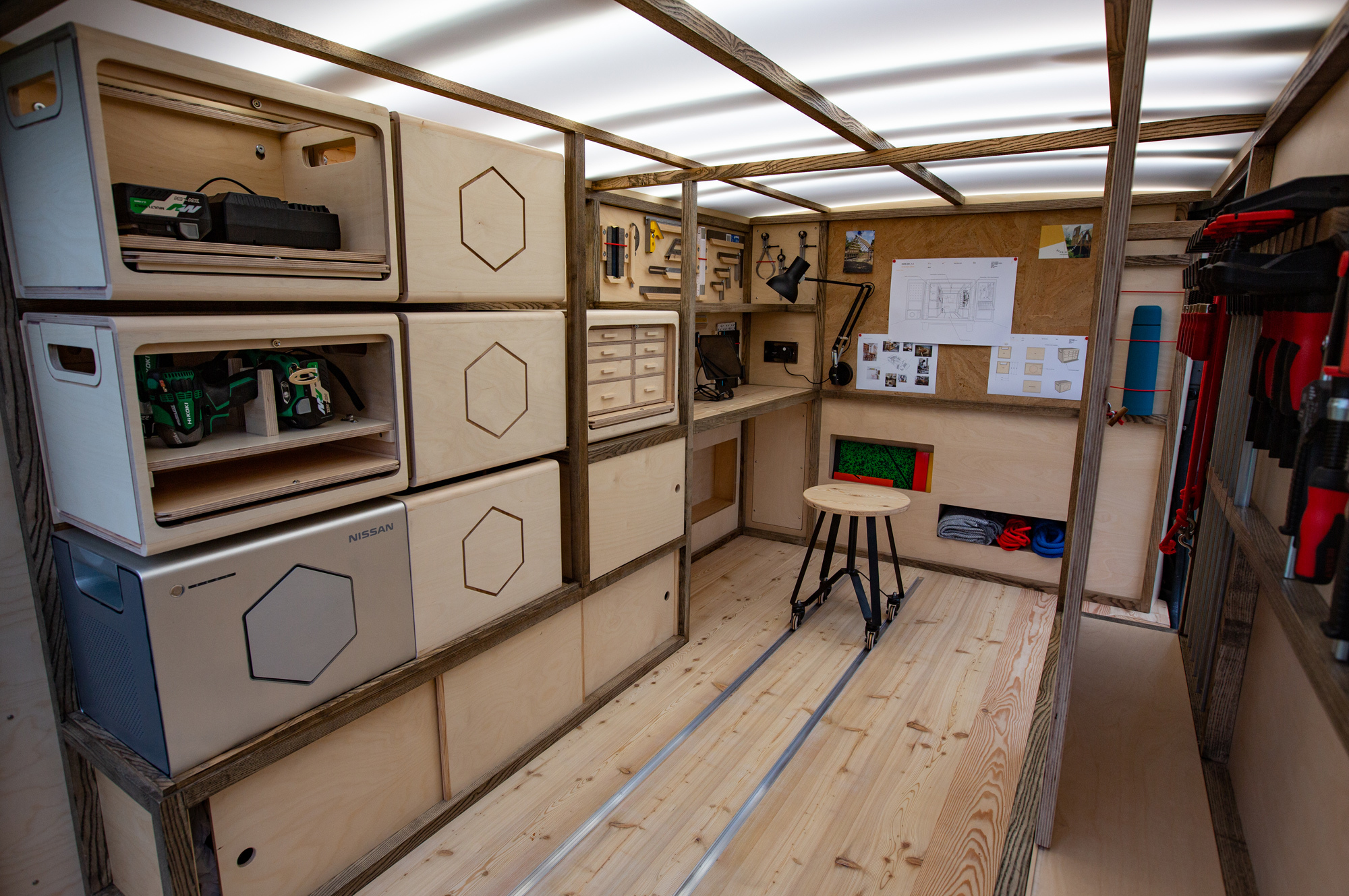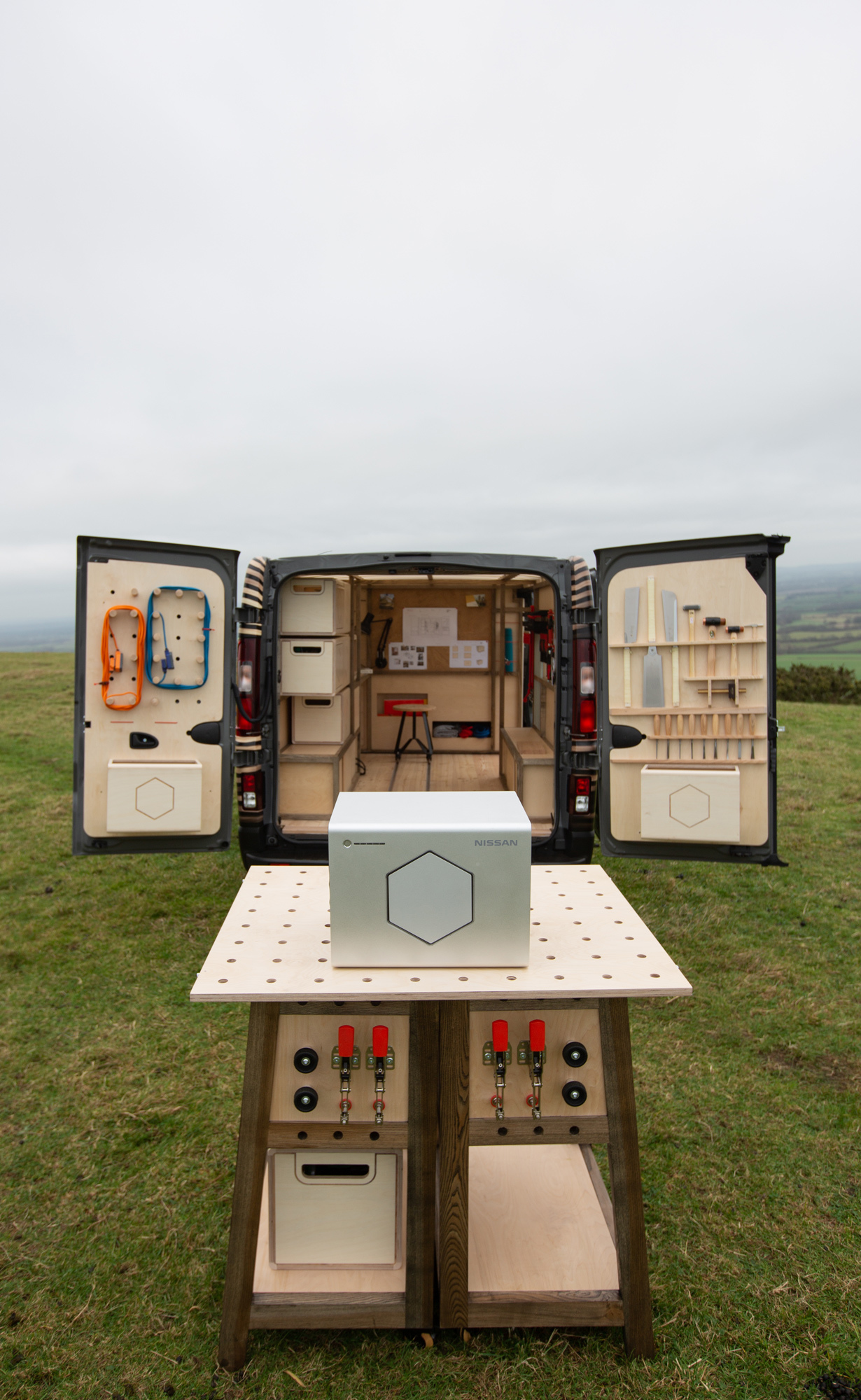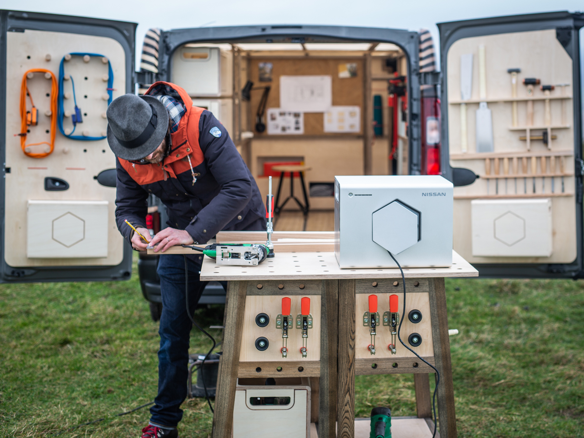 Наиболее интересной деталью концепта в плане техники является всепогодный переносной блок батарей (пауэрбанк) Nissan Energy ROAM для питания оборудования «в поле». Он вмещает 700 ватт-часов энергии и способен выдавать в нагрузку мощность до киловатта, чего вполне достаточно для работы разнообразного инструмента. На крышу концепта его авторы водрузили несколько солнечных батарей. Они обеспечивают автономную работу мастерской вдали от источников питания.