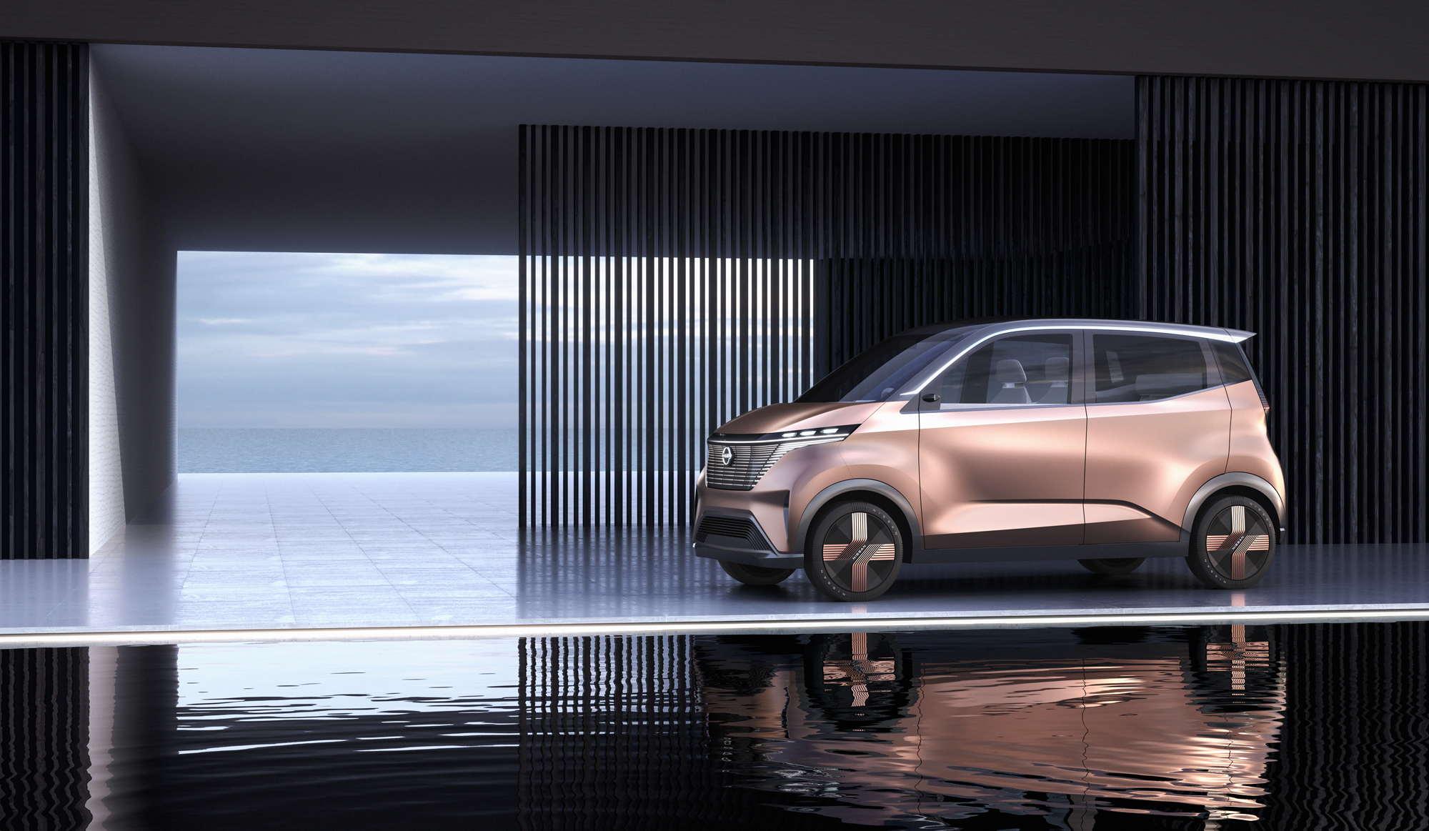 Компания Nissan рассекретила концепт IMk, построенный для Токийского автосалона, продолжателя линии футуристических проектов IMQ, IMx и IMs. Производитель называет его «новым типом электрокара», позволяющим передвигаться по мегаполису «уверенно и тихо», в то же время предоставляя водителю «мощность и динамику» и «отзывчивость, как в напряжённом трафике, так и на ощутимых уклонах дороги». Однако числа отдачи или разгона в релизе не названы.