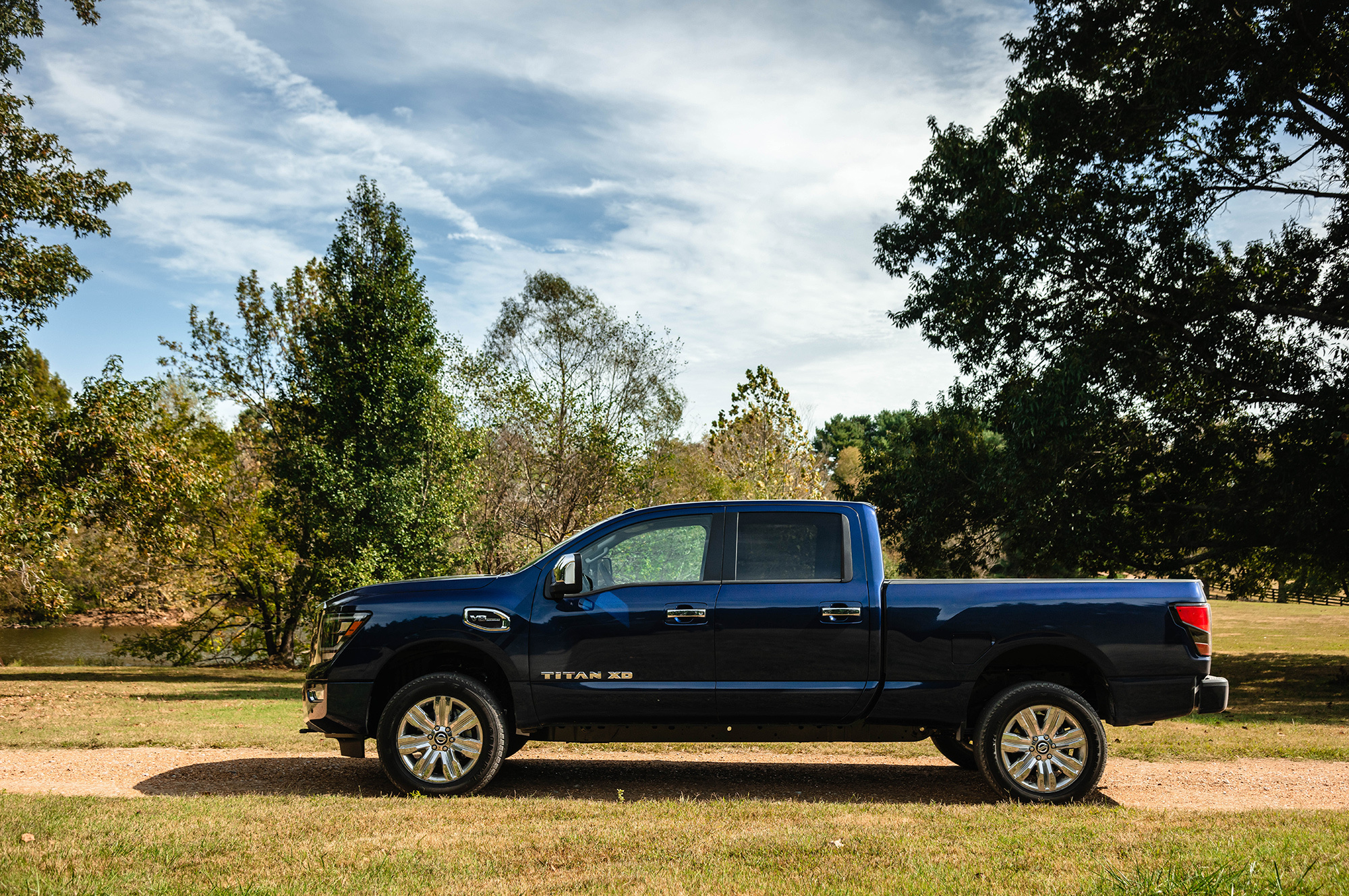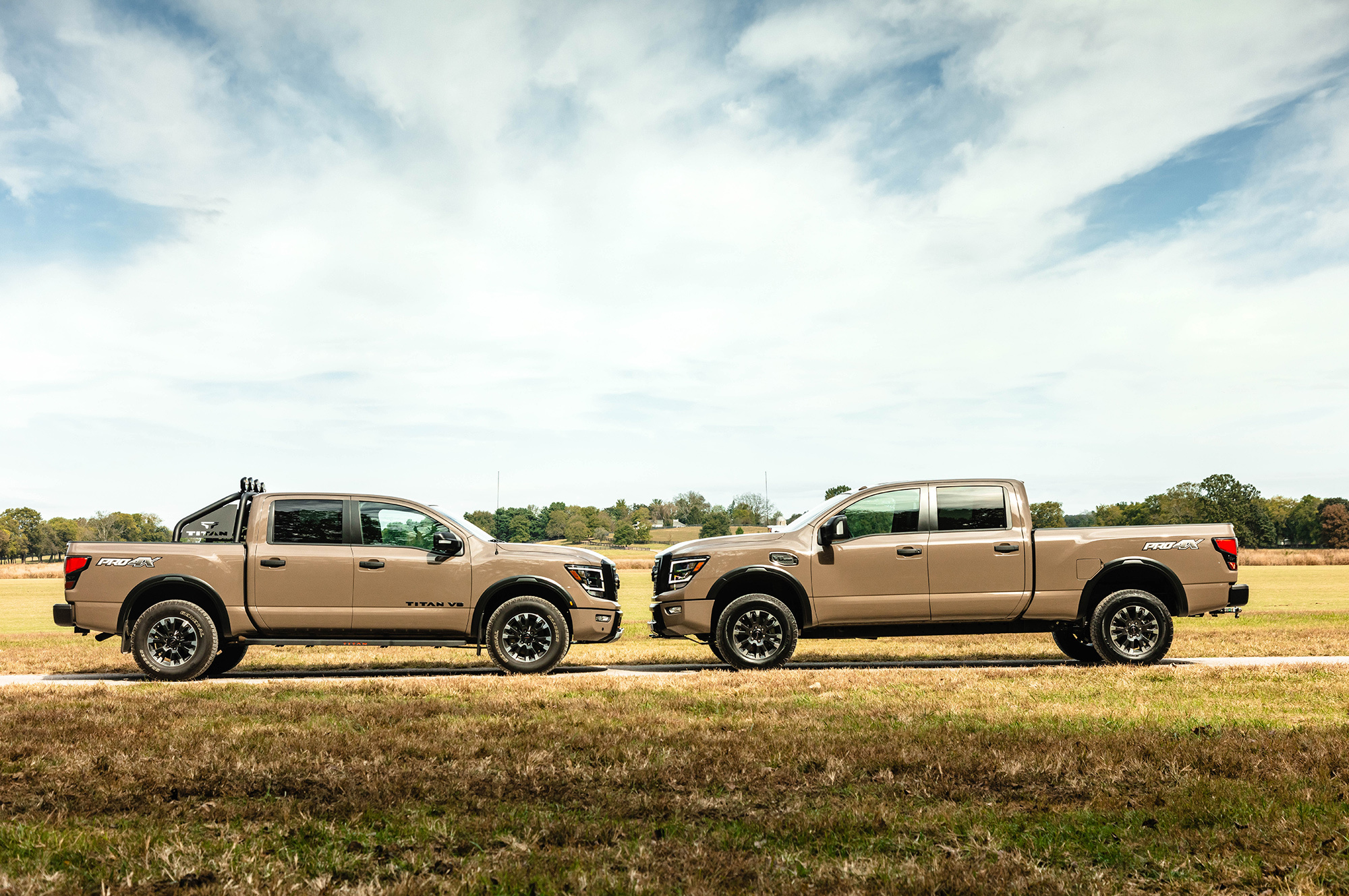 В сентябре Nissan представил американцам обновлённый Titan в «коротком» исполнении, а теперь показан тяжёлый длиннобазный вариант XD. Он отличается усиленной лестничной рамой и перенастроенным шасси, а расстояние между осями составляет 3851 мм (+300). Длина грузовой платформы больше на 305 мм (1981), грузоподъёмность выше на 136 кг (871), тяговое усилие — 5425 кг (+1234). В остальном Титаны похожи как две капли воды.