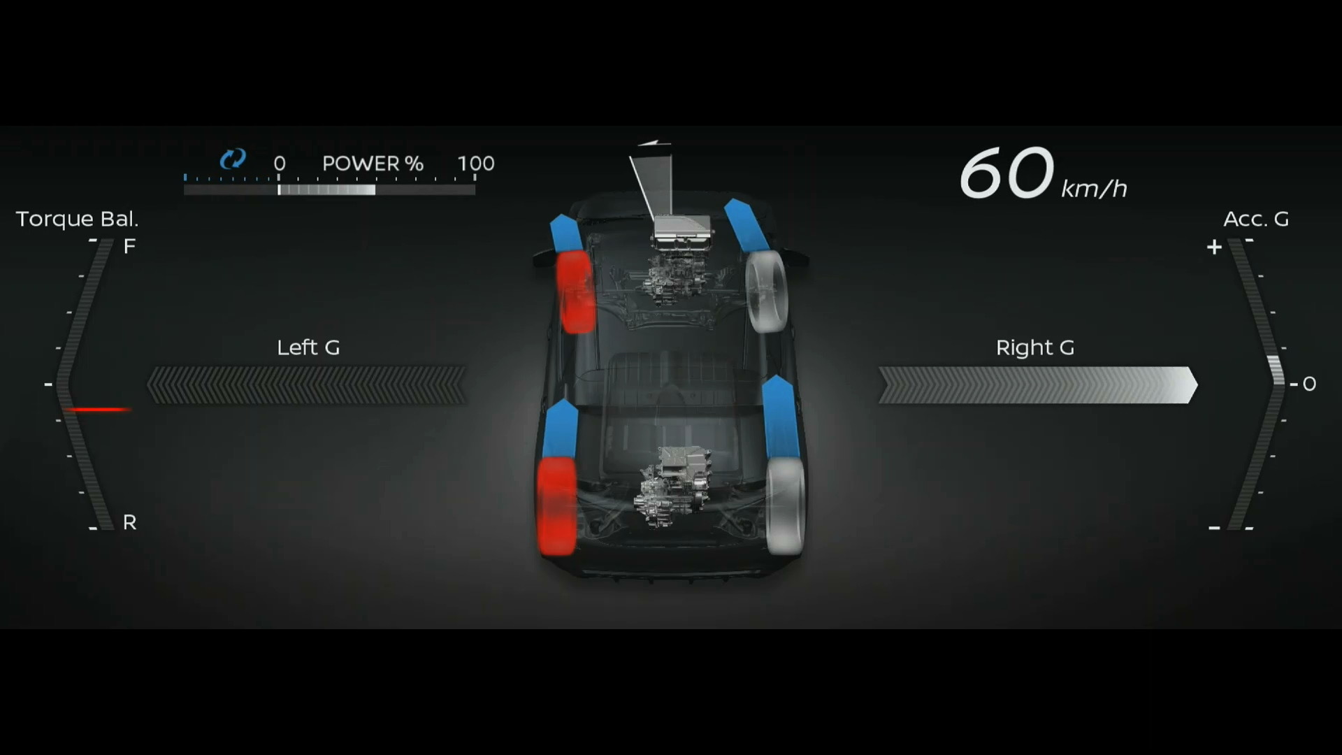 Производитель обещает «очень быстрое, но необычайно плавное ускорение» и независимое управление тормозами на каждом из четырёх колёс. «Водители смогут воспользоваться системой полного привода практически в любых дорожных условиях», — утверждает Nissan. Рекуперация энергии торможения предусмотрена для обоих электромоторов. Это, мол, снижает вероятность укачивания и связанного с ним дискомфорта. Сроки внедрения установки не названы. Серийную Арию японцы ожидают в 2020 году.