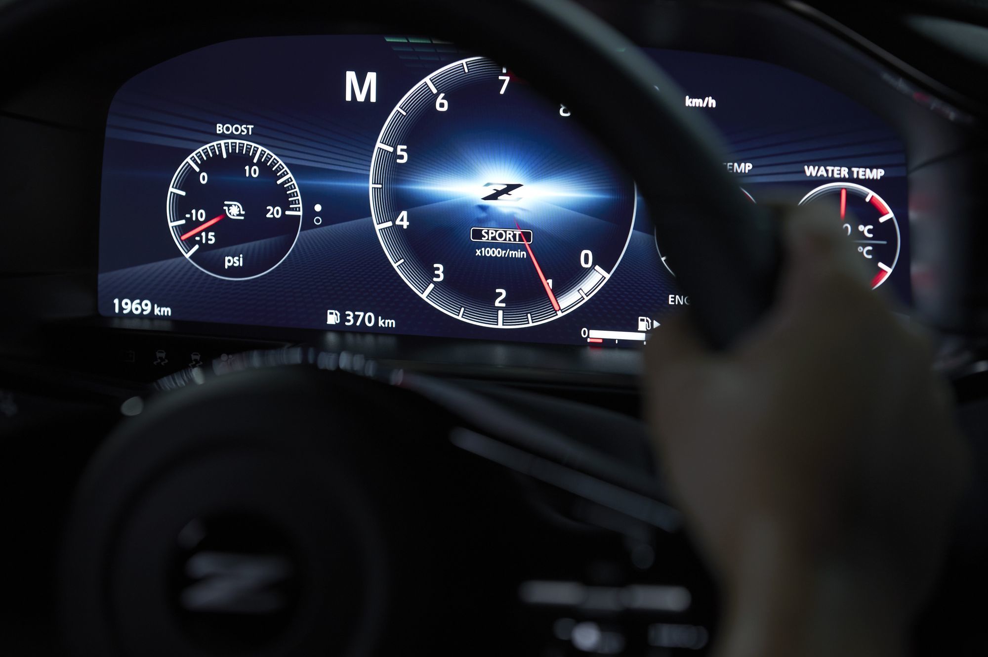 Интерьер с олдскульным рулём и тремя дополнительными приборами над центральной консолью также дарит ретроспективное настроение. Однако оснащение соответствует духу времени нынешнего: Z-мобиль получил цифровую панель приборов диагональю 12,3 дюйма, мультимедийный комплекс с навигацией и поддержкой Apple CarPlay и Android Auto, а на руле видны кнопки управления адаптивным круиз-контролем. Увы, пока мало что известно о технике. Заявлено, что у Z Proto установлен битурбомотор V6 (видимо, агрегат VR30DDTT от Infiniti Q60) в сочетании шестиступенчатой «механикой». Характеристики серийной модели мы узнаем скоро, ведь продажи в США, на крупнейшем для Z-каров рынке, стартуют весной 2021 года.
