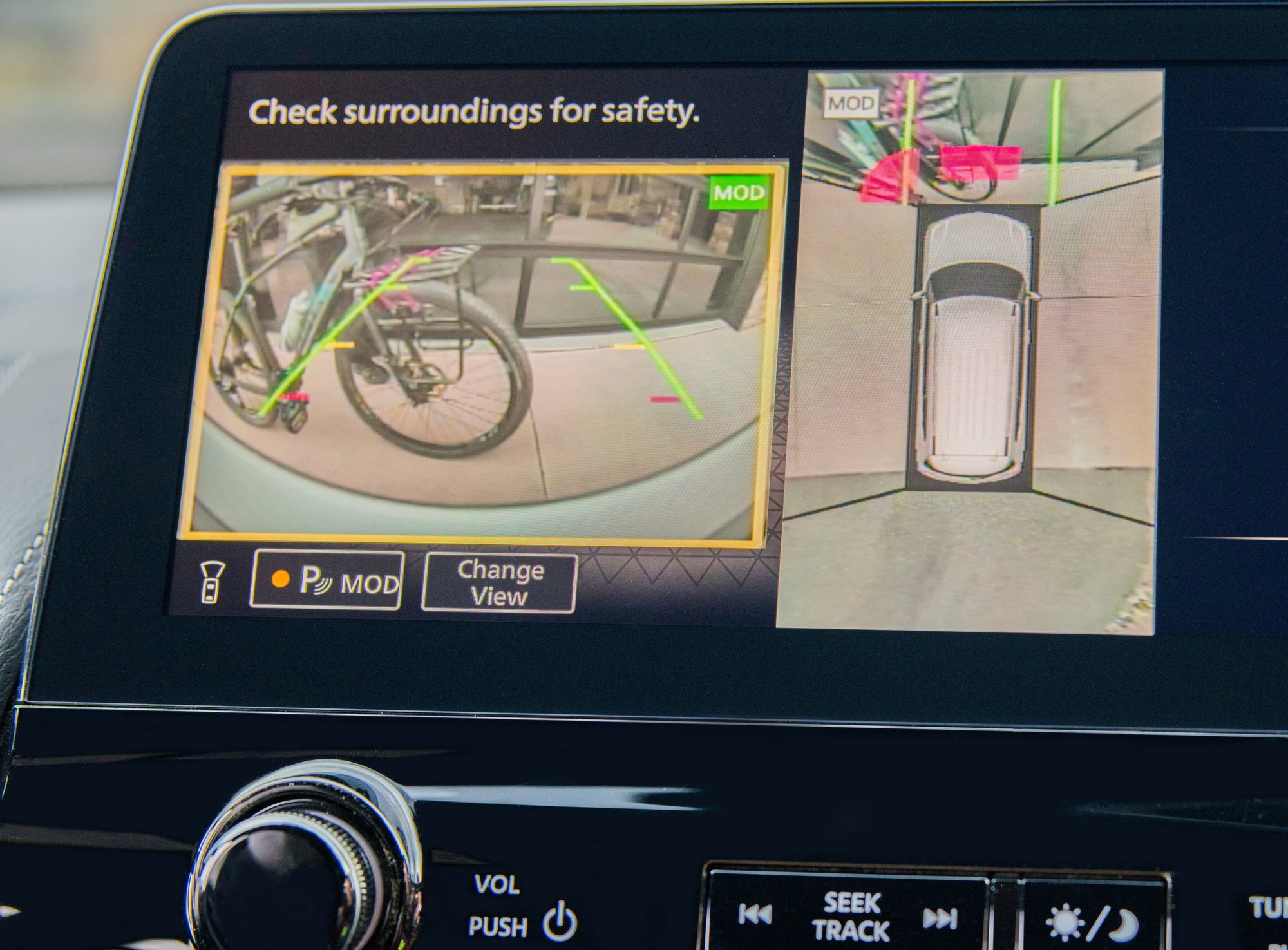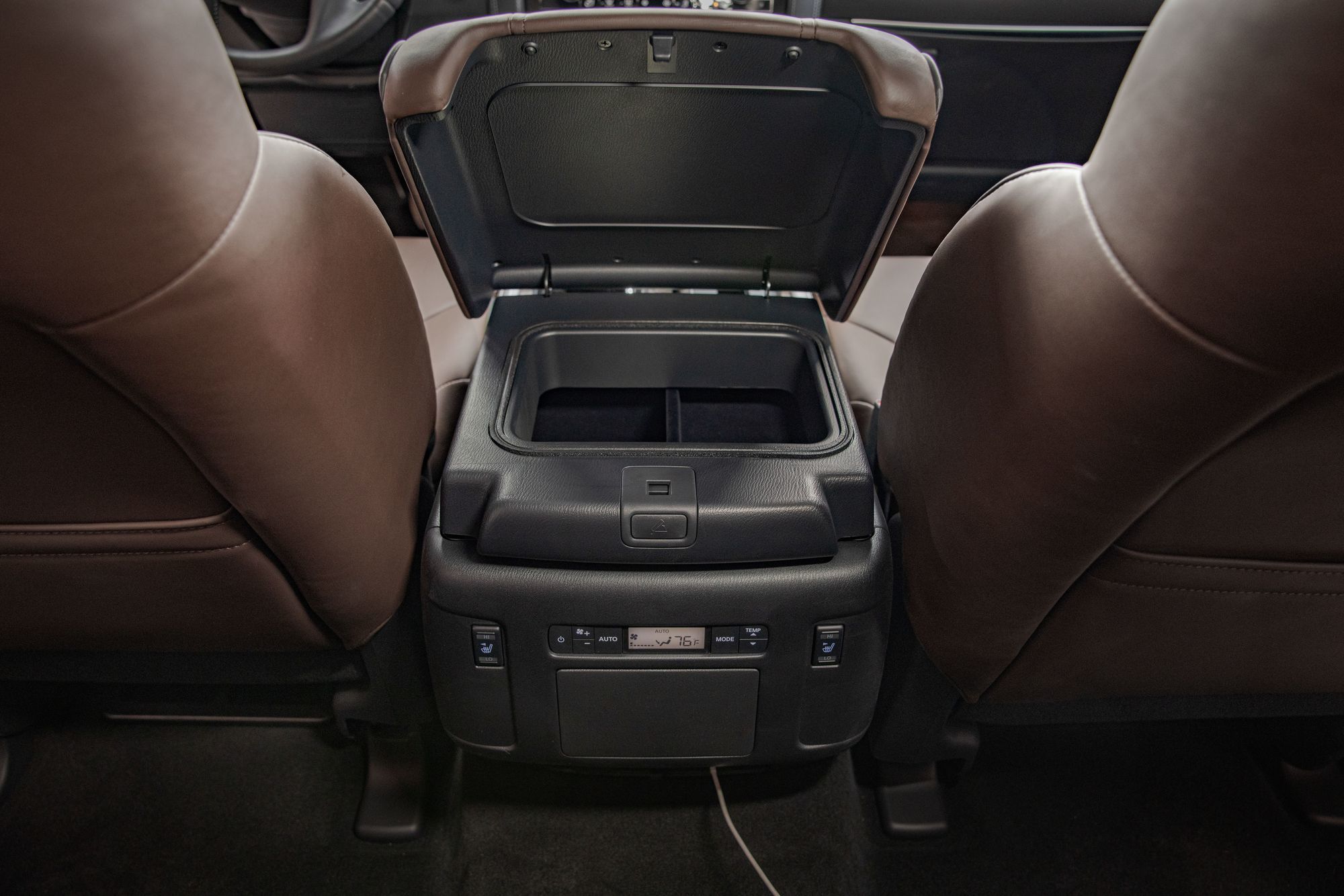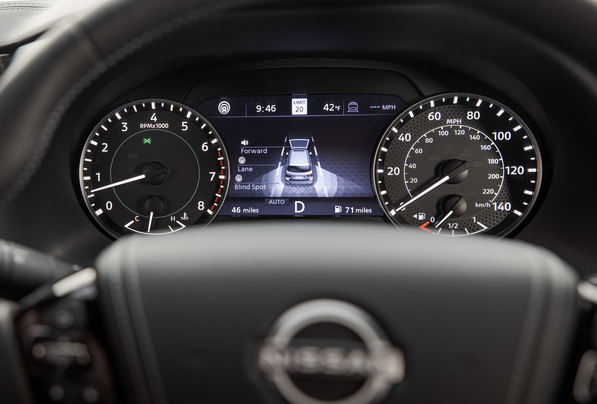 Но больше всего удивил интерьер. Архаичная центральная консоль с двумя дисплеями досталась только Патрулю, а у Армады — полностью переделанная секция с широкоформатным тачскрином на 12,3 дюйма (разрешение 1920x720) сверху, горизонтальными воздуховодами и иным блоком управления климат-контролем. Перекомпонован и тоннель между передними креслами: на нём остались две поворотные шайбы, как у Патруля, но одна переехала правее от рычага коробки передач. По сравнению с предшественницей обновлённая Armada получила безрамочное зеркало заднего вида с более крупным (на 50%) встроенным дисплеем, у которого чётче изображение с камеры заднего вида.