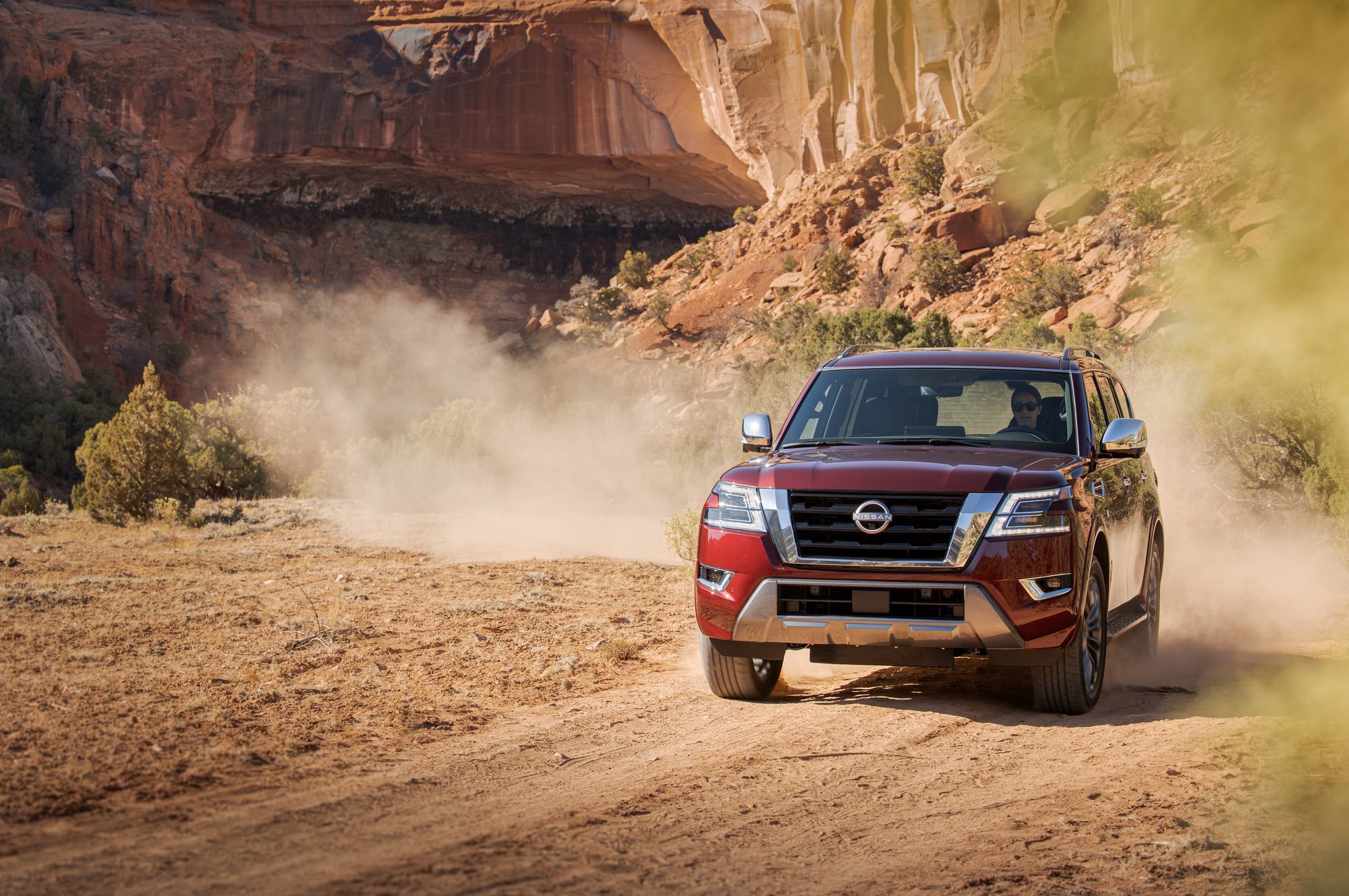 Позиции внедорожника Nissan Patrol особенно сильны в странах Персидского залива. Это главный для модели рынок (22 584 проданных машины за десять месяцев 2020 года), а в ОАЭ на Patrol и вовсе приходится 45,2% спроса. Но есть площадка и успешнее: в США, где Patrol продаётся как Armada, ежегодно реализуют по 32–35 тысяч внедорожников. И для американцев подготовили обновлённую Армаду, которая отличается от рестайлингового Патруля, показанного год назад. У заокеанской версии — более внушительная решётка радиатора с крупными горизонтальными планками чёрного цвета и передний бампер с большой серебристой вставкой. Светодиодная оптика и кузовные панели общие.