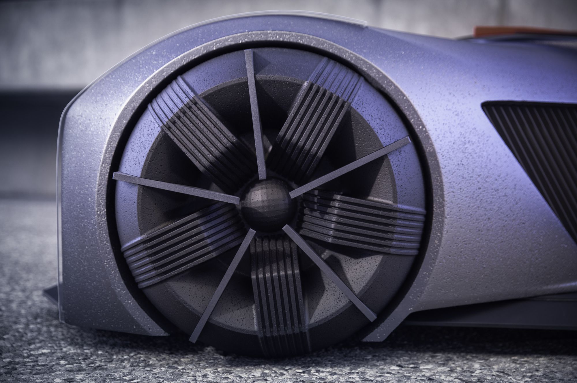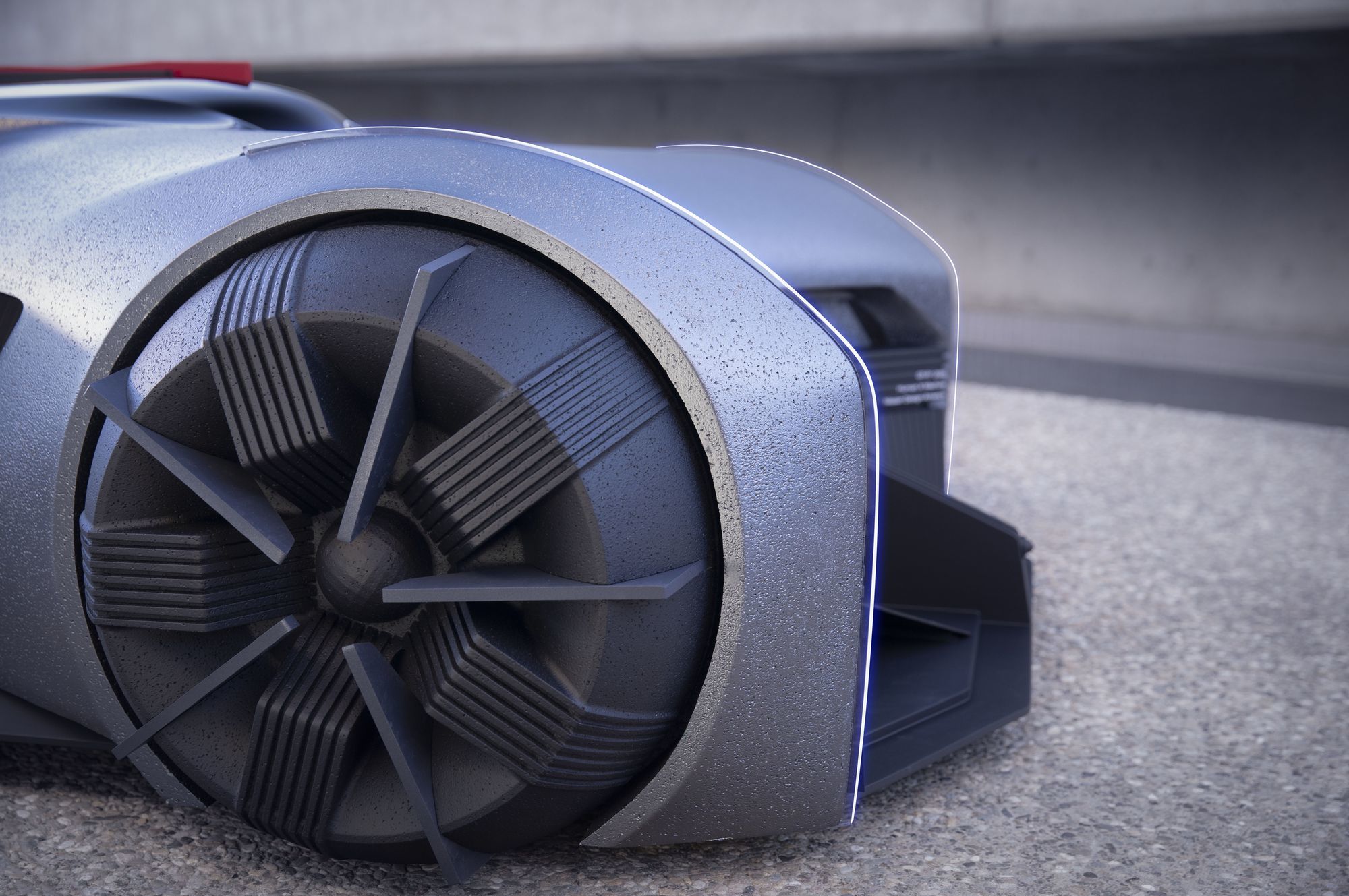 По идее, GT-R (X) представляет собой мощный электрокар, частично складывающийся для входа/выхода. За счёт необычных колёс он способен стоя разворачиваться на 360°. «Джей Би — суперталантливый, суперкреативный дизайнер. Его задумки об интеграции мозга и машины идеально сочетаются с передовыми исследованиями Ниссана в области B2V (Brain-to-Vehicle), — признаётся вице-президент NDA Дэвид Вудхаус. — По сути, автор предвидел новый способ передвижения. Мы всегда поощряем нестандартное мышление, поэтому для нас большая честь воплотить GT-R (X) в жизнь как макет в масштабе 1:1». Заметим, марка Chevrolet в 2014-м показывала очень похожий прототип Chaparral 2X VGT.