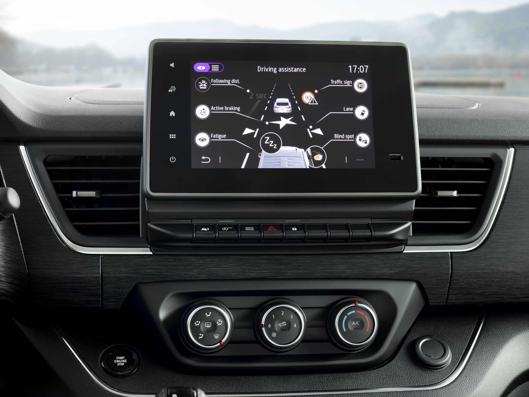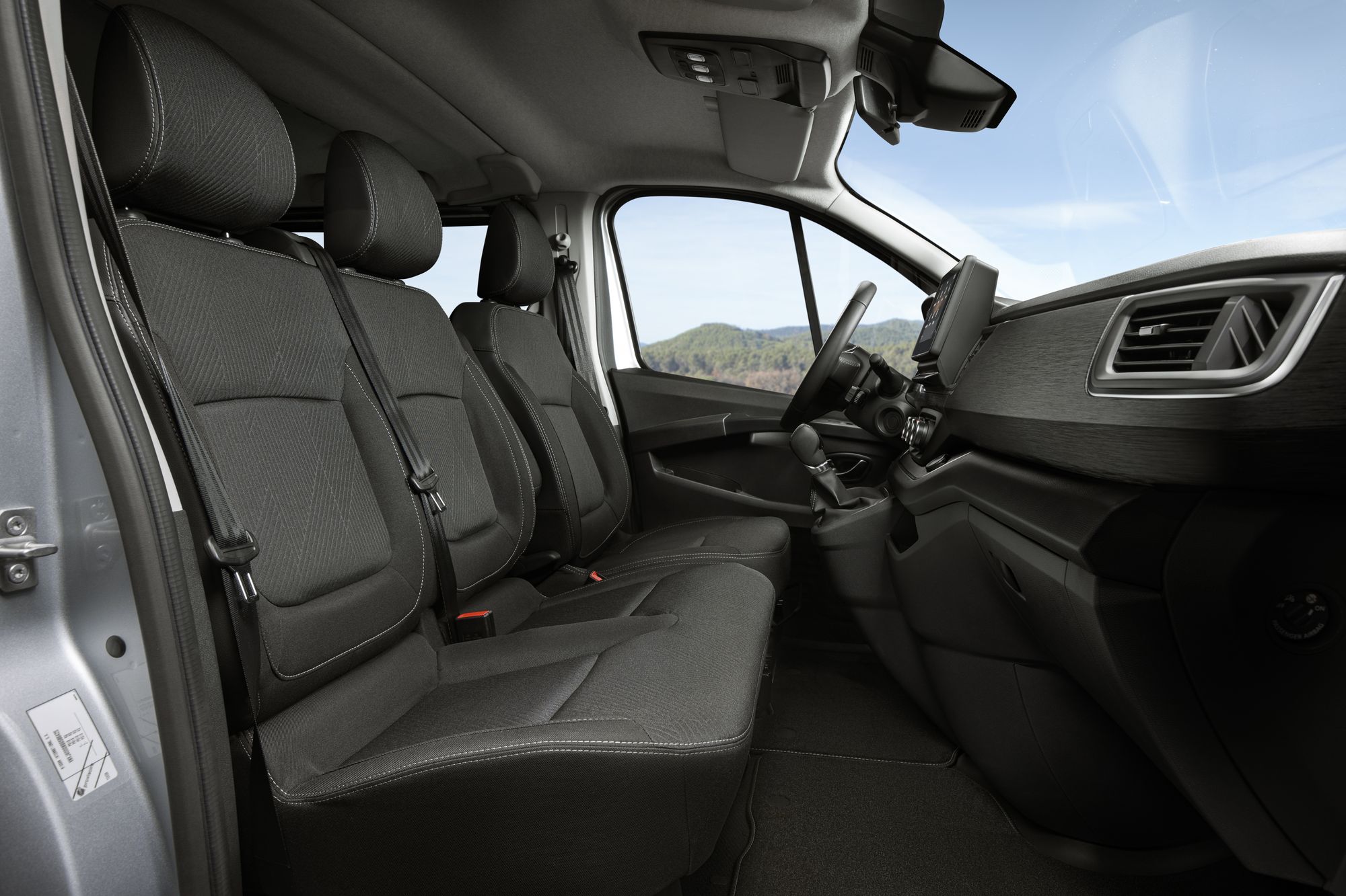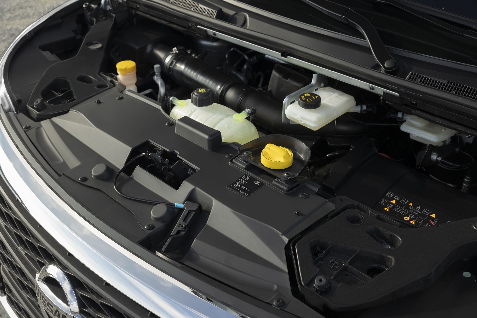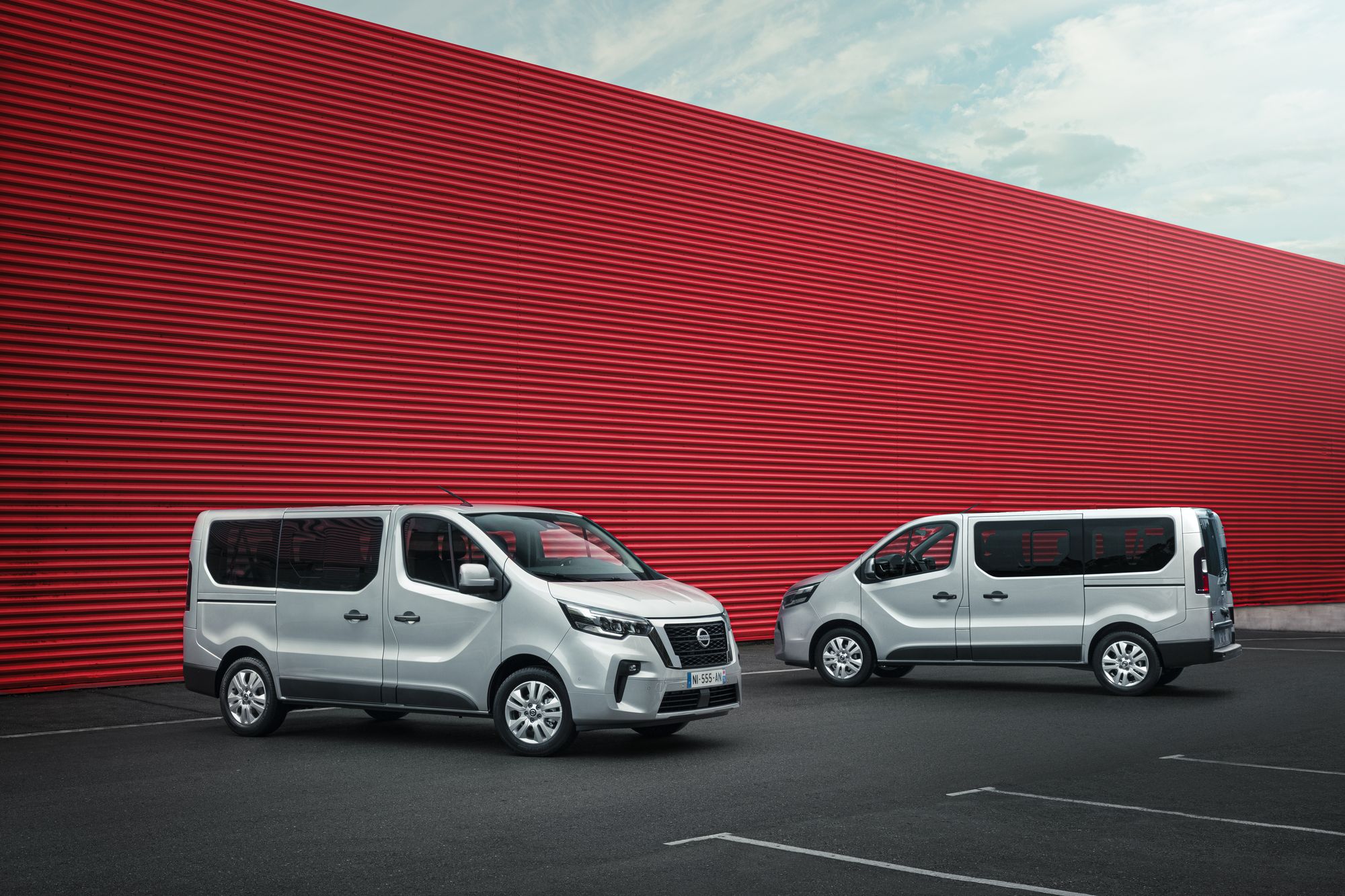 Клонированные Nissan NV300 и Renault Trafic до их обновления можно было легко спутать между собой. Ведь внешне они отличались только решётками радиатора, шильдиками и в меньшей степени капотом. Теперь у нас есть возможность сравнить рестайлинговые модели: после обновления NV300, как и модернизированный осенью 2020-го Trafic, получил новые фары, решётку радиатора, капот, фронтальные крылья и 17-дюймовые легкосплавные колёса. Другой теперь и передний бампер, который вдобавок не такой, как у Трафика, — с угловатым дизайном и иным оформлением противотуманных фар. Есть различия и в форме диодных ходовых огней, встроенных в головную оптику.