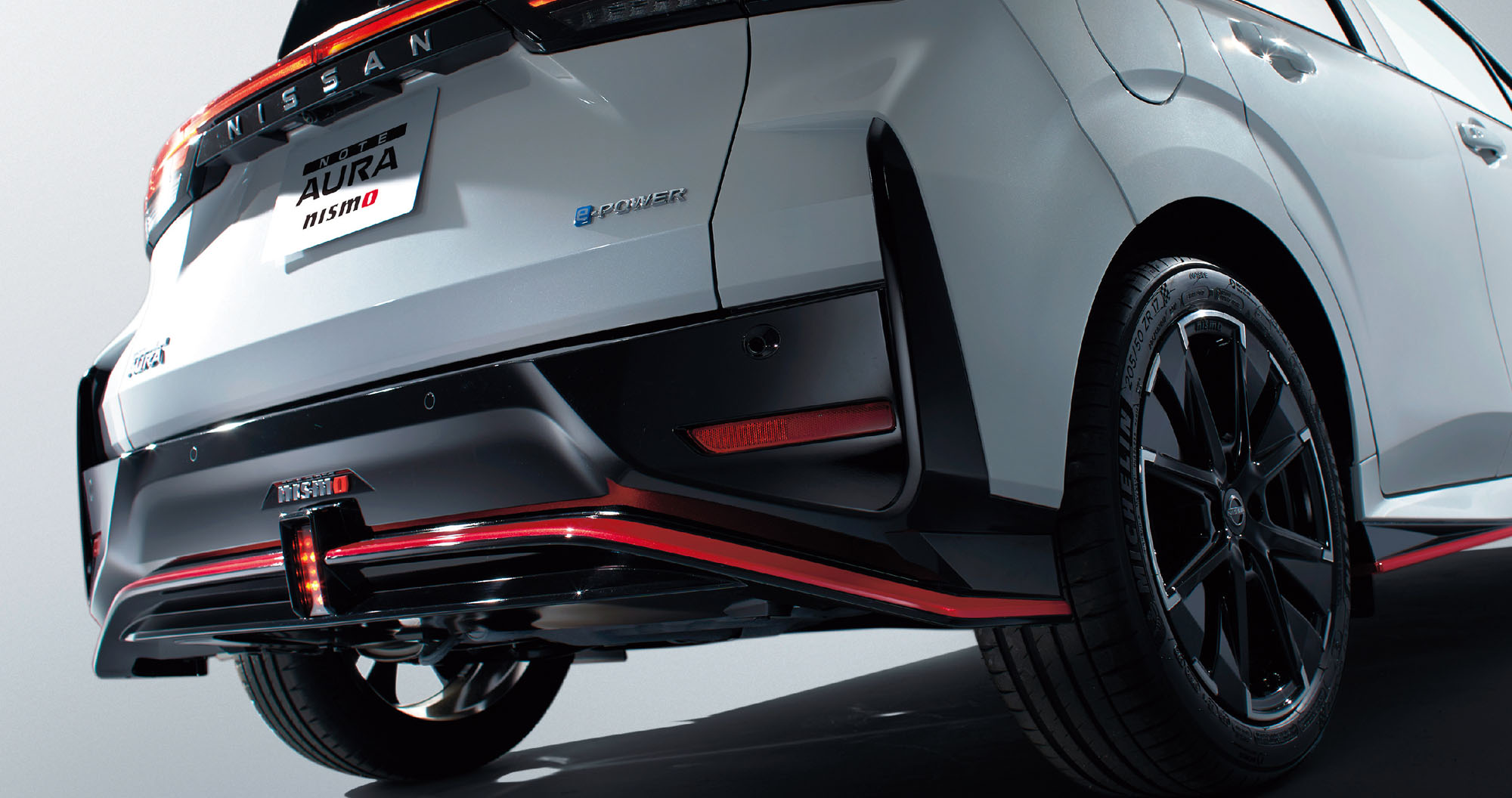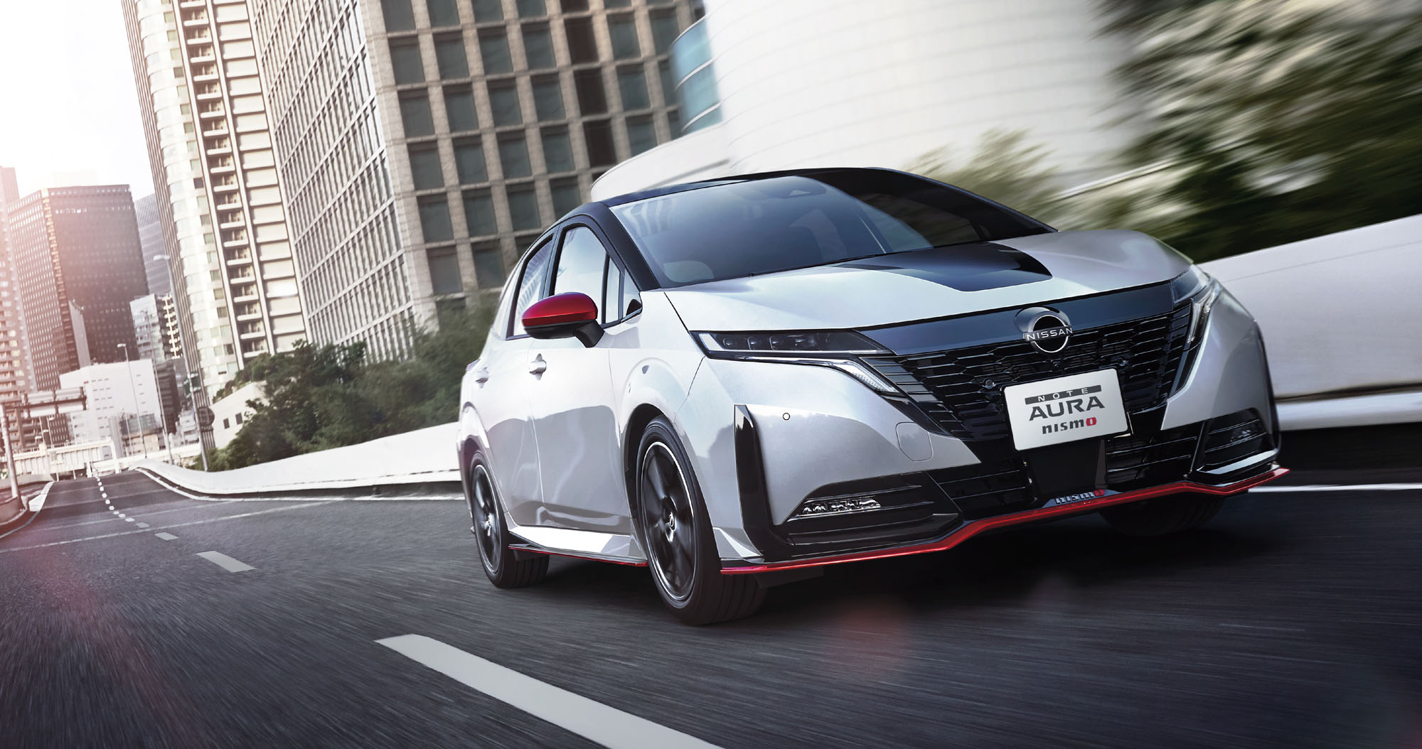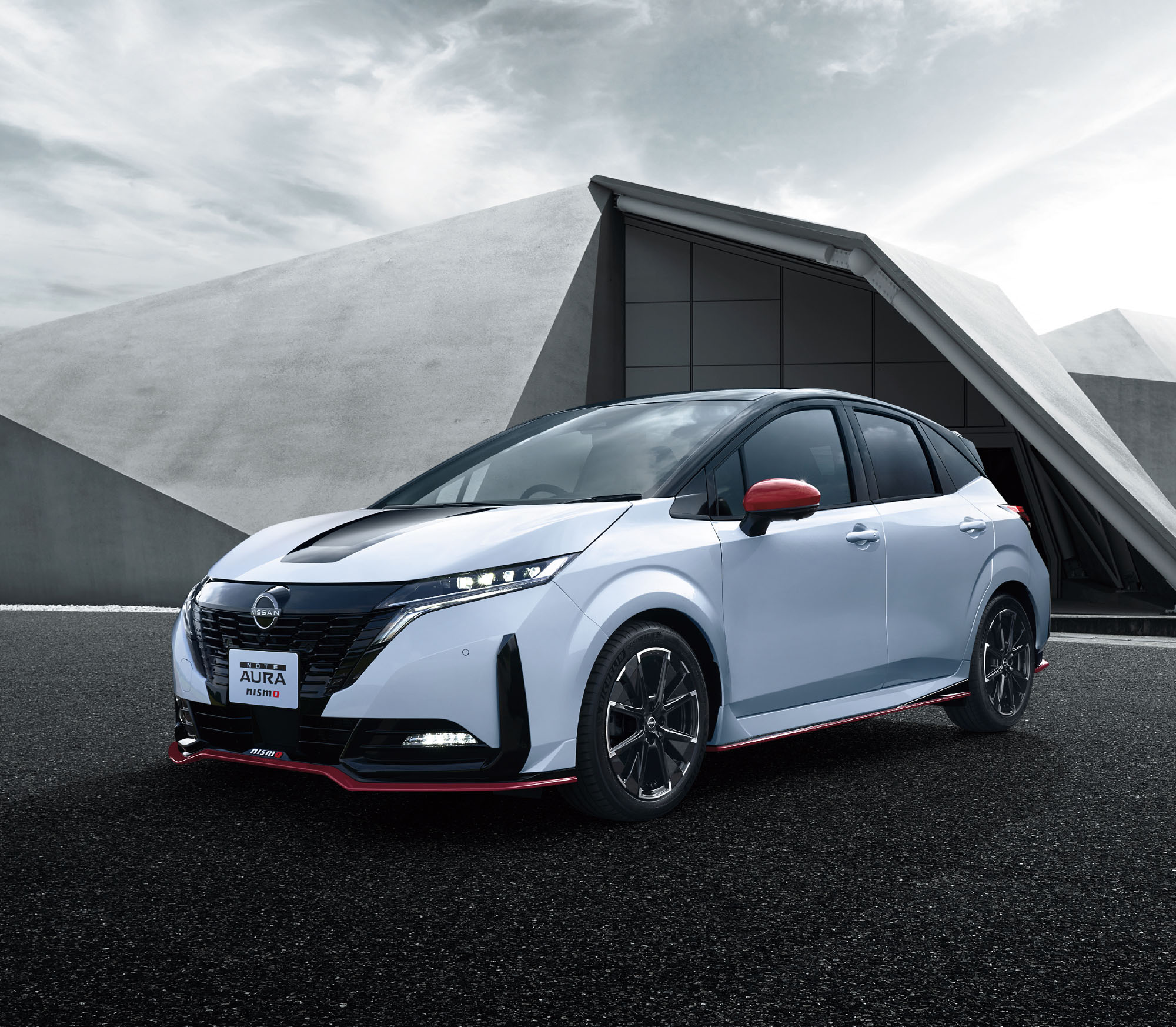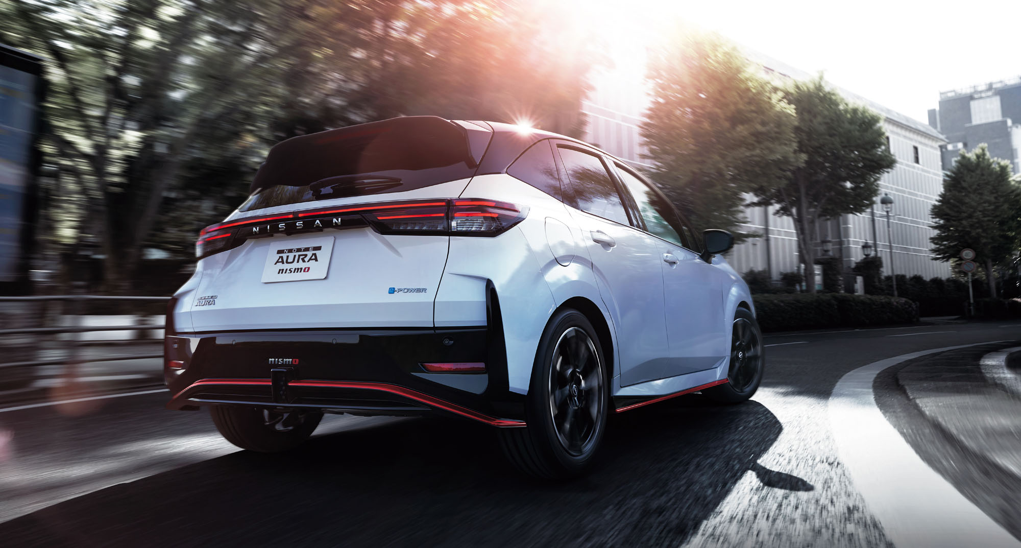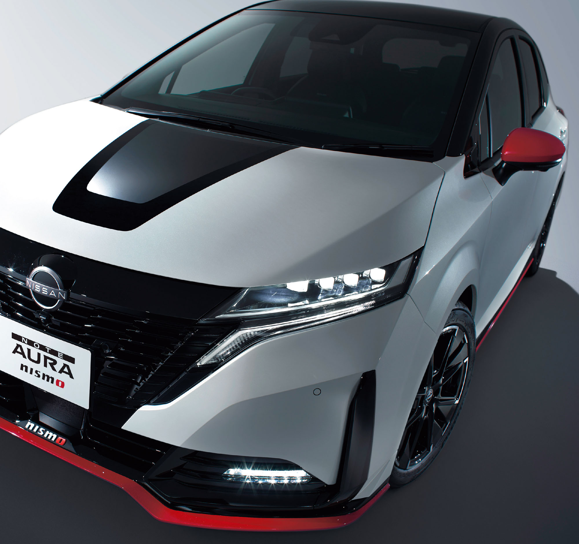 Последовательный гибрид Nissan Note Aura получил оспортивленную версию Nismo. Она отличается экстерьером и интерьером, а ещё настройками подвески и системы изменения режимов движения. Модель Aura Nismo является переднеприводной. Электромотор тут развивает 100 кВт (136 л.с.) и 300 Н•м. Хотя он не мощнее, чем у обычной Ауры, всё же превосходит тяговый электродвигатель простого хэтчбека Note (85 кВт, 116 л.с., 280 Н•м). Зарядкой батареи в движении в любом случае занимается трёхцилиндровый атмосферник 1.2 (82 л.с., 103 Н•м), с колёсами он не связан.