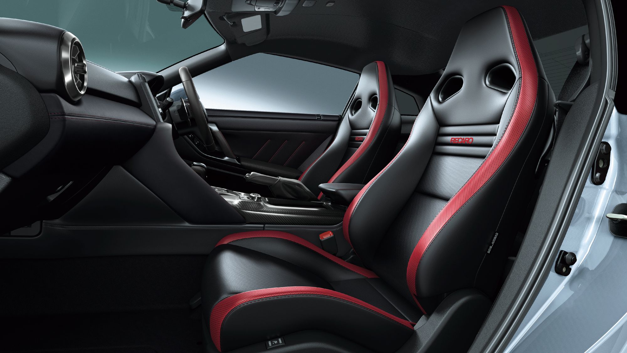 Новые исполнения T-spec отличаются не только «культовыми цветами кузова» и «премиальной отделкой интерьера». Они хвастают расширенными крыльями, углеродокерамическими тормозами, задним спойлером из углеволокна, «золотыми» дисками Rays (20 дюймов), шильдиками T-spec на носу и корме, декором на двигателе V6 3.8 (573 л.с., 633 Н•м). Японцы называют «обычную» версию GT-R Premium edition T-spec, а трековую — GT-R Track edition engineered by Nismo T-spec (на фото ниже). В США вторая идёт как GT-R Nismo Special Edition.