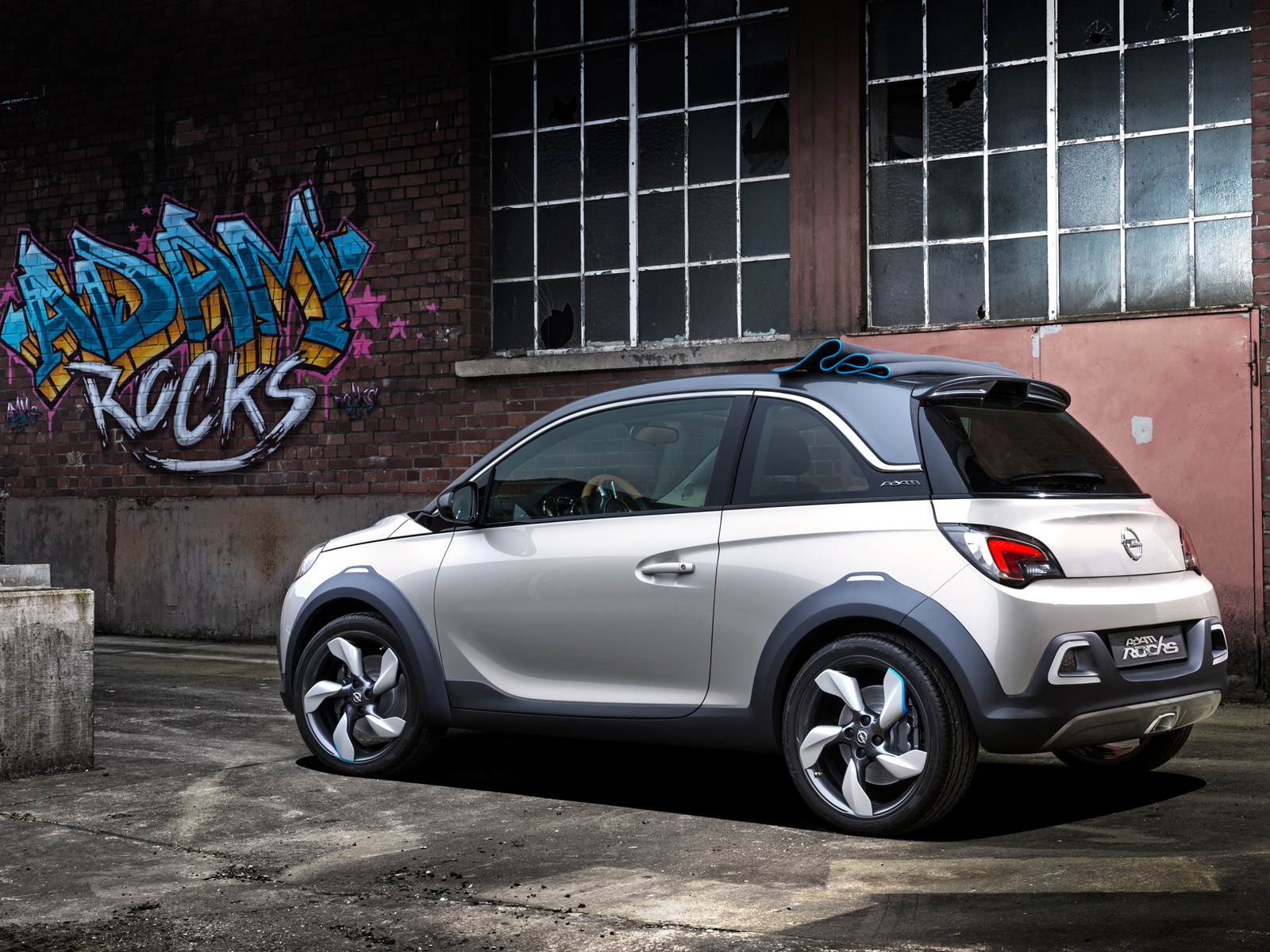 Концепт Opel Adam Rocks, по мнению специалистов GM, открывает новый сегмент рынка — класс городских мини-кроссоверов. Чтобы Адам стал таковым, ему на 15 мм увеличили клиренс, расширили на 40 мм колею да приделали складную матерчатую крышу. Разумеется, его не забыли обвесить декоративными украшениями и придумать для него легенду о свободном от любых препятствий перемещении по городу.
