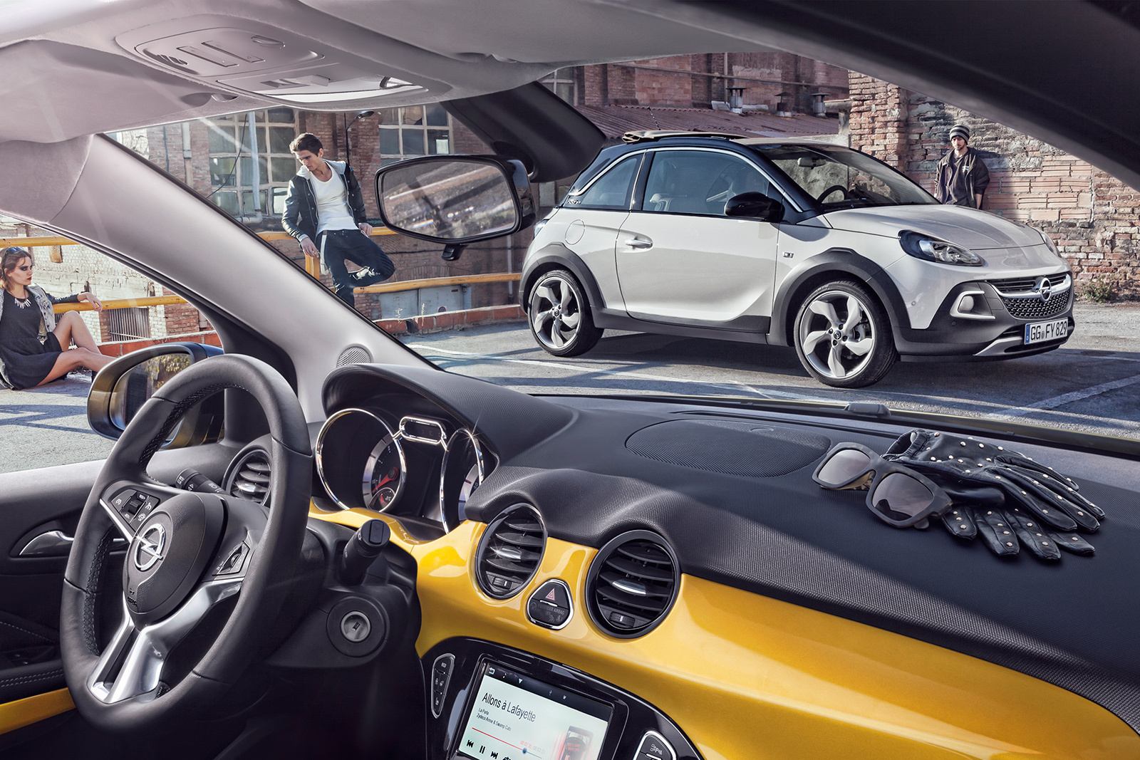Вседорожный облик Опелю Adam придали, воспользовавшись традиционным рецептом. Увеличили клиренс, расширили колёсные арки и добавили деталей из неокрашенного пластика. Примечательно, что, так же как и концепт, серийная версия Rocks осталась кабриолетом. Отличий от шоу-кара во внешности не так много — чуть подправленная оптика, иные передний бампер и патрубок выхлопной системы, который теперь располагается не по центру.