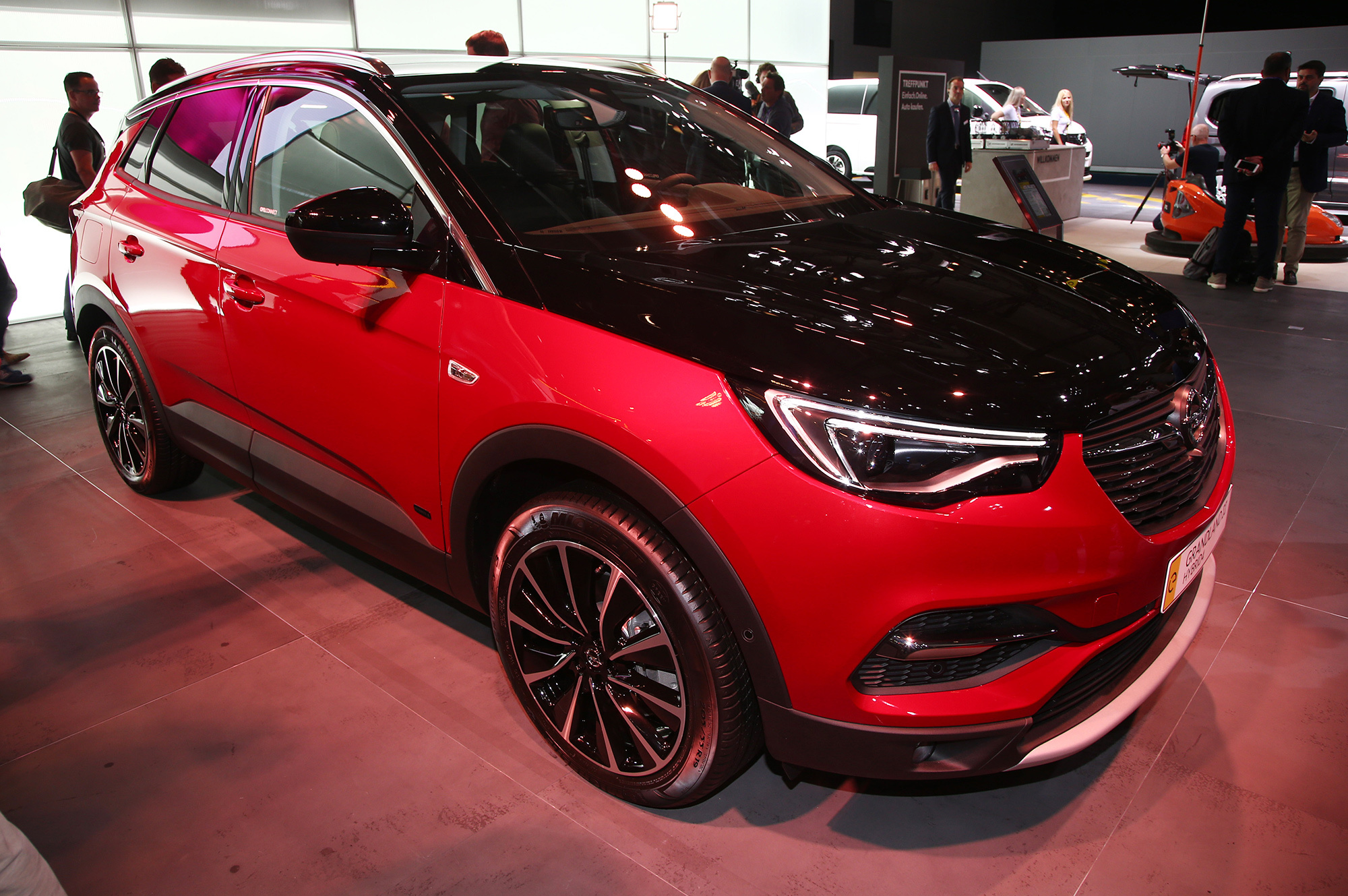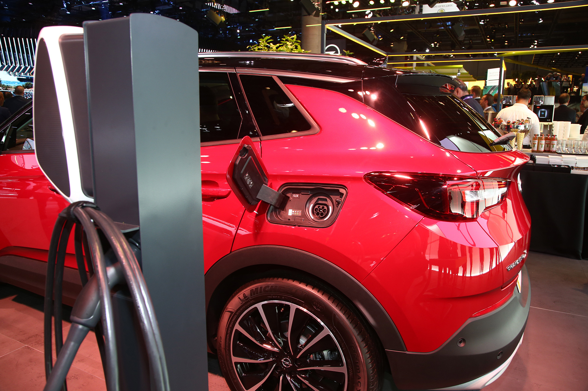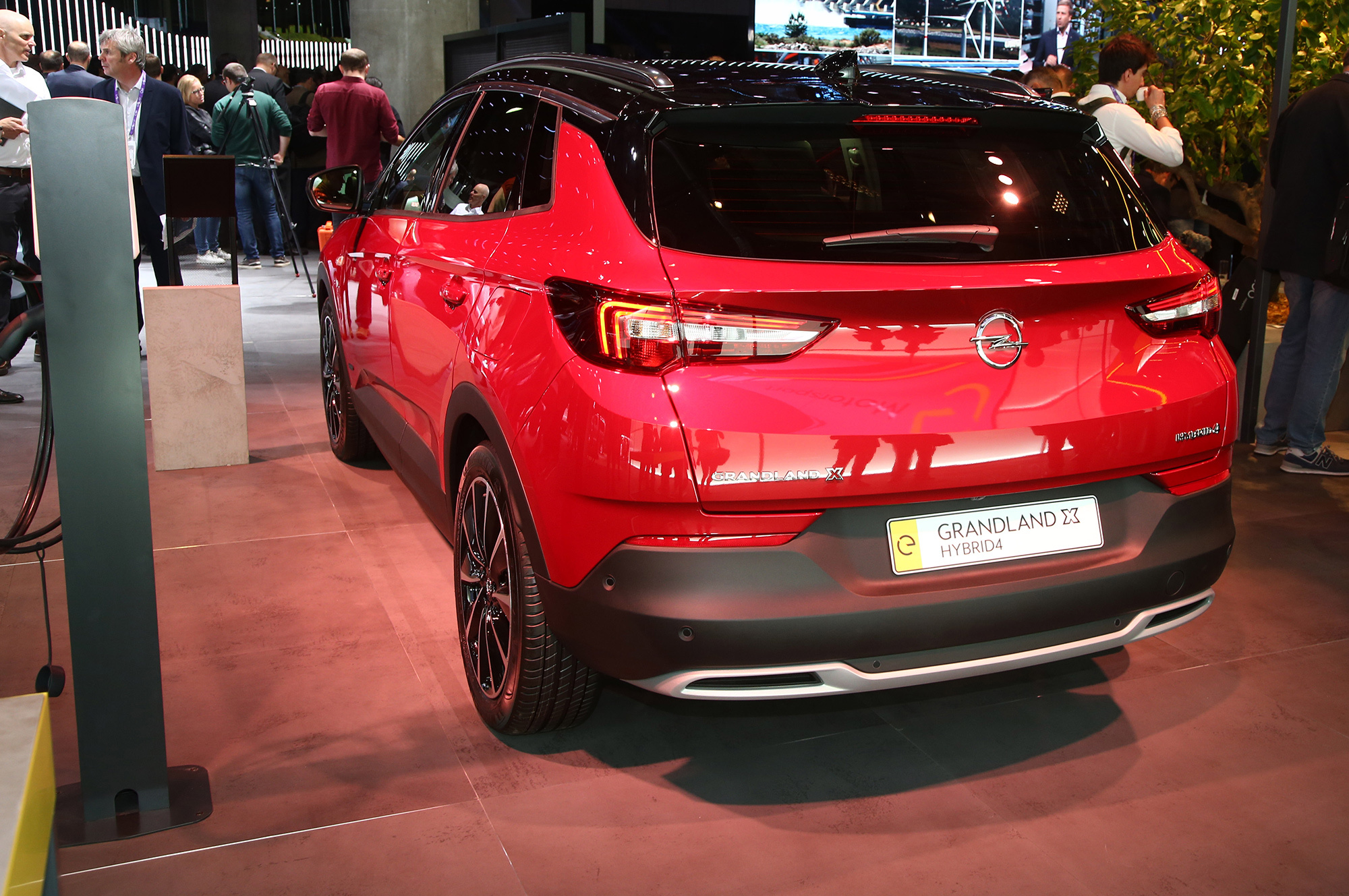 У Опеля система Hybrid4 включает бензиновую турбочетвёрку 1.6 (200 л.с.) и два электромотора по 80 кВт (109 л.с.). Передний электродвигатель соединён с восьмиступенчатым «автоматом» e-EAT8, задний вместе с инвертором и дифференциалом встроен в многорычажную подвеску. Питание обеспечивает литиево-ионная батарея ёмкостью 13,2 кВт•ч, расположенная под задними сиденьями.
