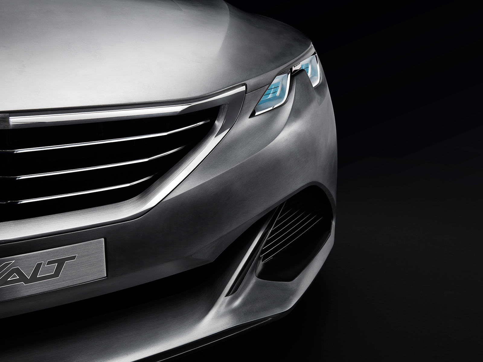 Французы построили весьма необычный концепт. Кузов автомобиля выполнен из необработанной стали, а задняя часть шоу-кара покрыта «акульей кожей» — специальным перфорированным материалом, позволяющим улучшить коэффициент аэродинамического сопротивления. Дизайнеры интерьера тоже не постеснялись реализовать свои самые смелые фантазии, инкрустировав салон ценными породами дерева. Планов по запуску модели Exalt в серию пока нет.