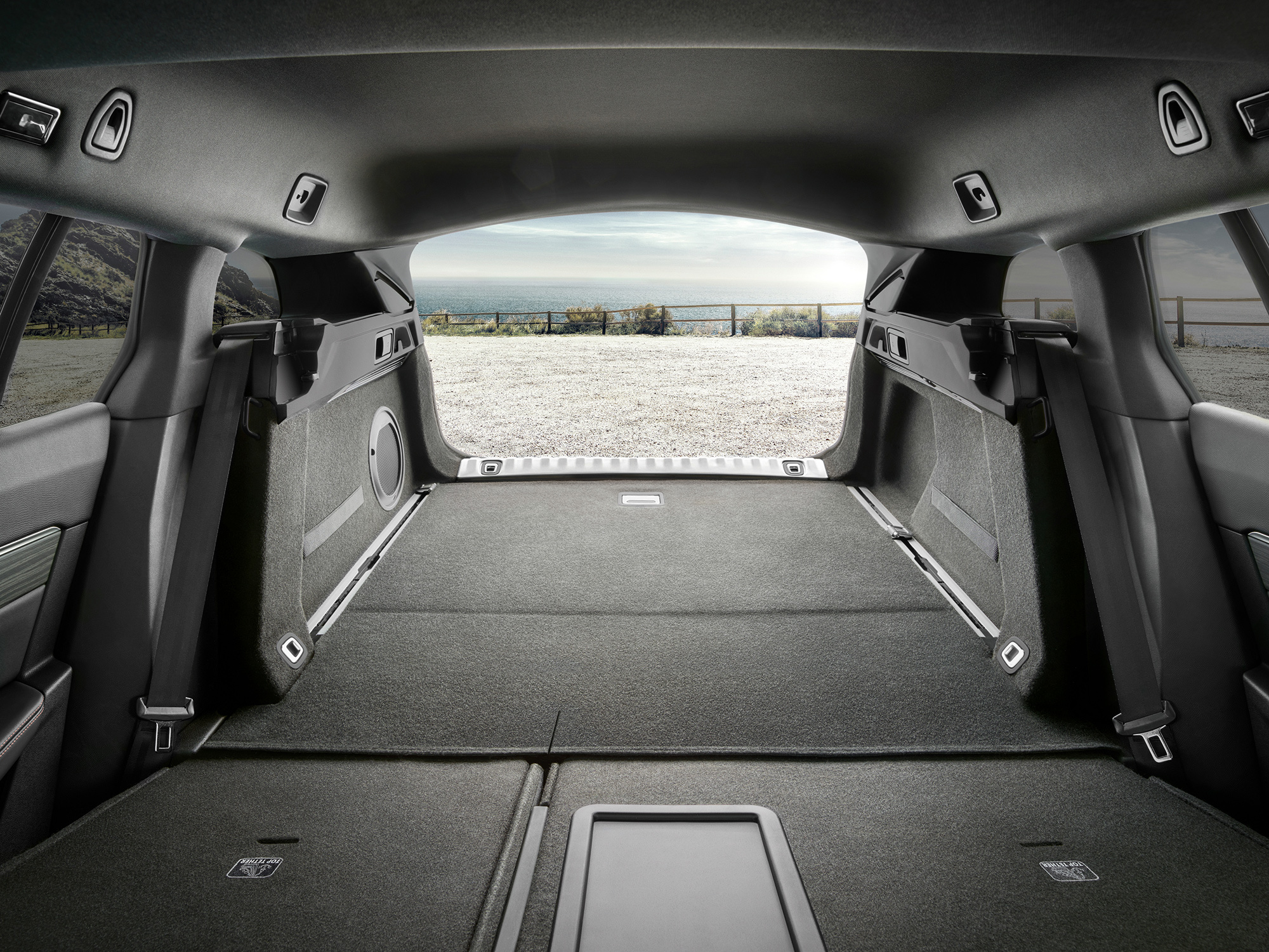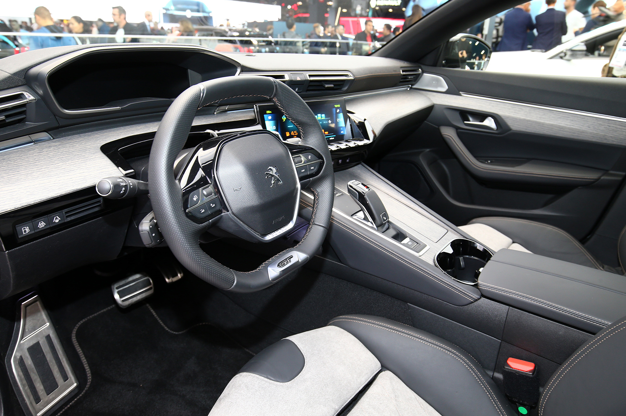 Пятая дверь опционально оснащается электроприводом с функцией бесконтактного открывания. Дверной проём шире, чем у хэтчбека, на 24 мм, а погрузочная высота меньше на 60 мм. Задний диван разделён на две неравные части, которые можно сложить, потянув за два рычажка в багажнике. Приятная отделка, крючки, специальные рельсы для креплений сетки ― всё это также будет доступно клиентам. Должно быть удобнее и пассажирам второго ряда: спинка дивана отклоняется на 27°, освобождая над головой дополнительные 40 мм пространства. В остальном салон, как у хэтча. Такие же слоёная передняя панель, развёрнутая к водителю центральная консоль, виртуальные приборы и футуристичный рычаг коробки передач.