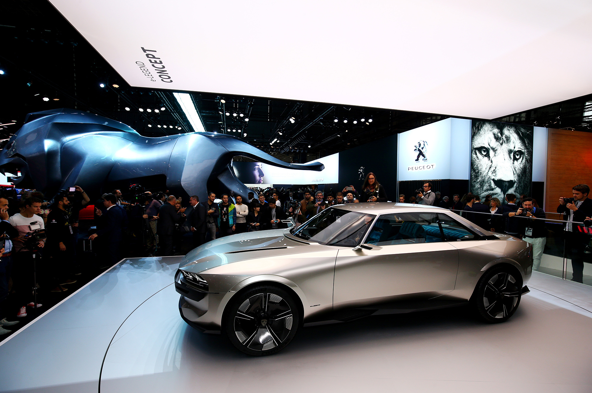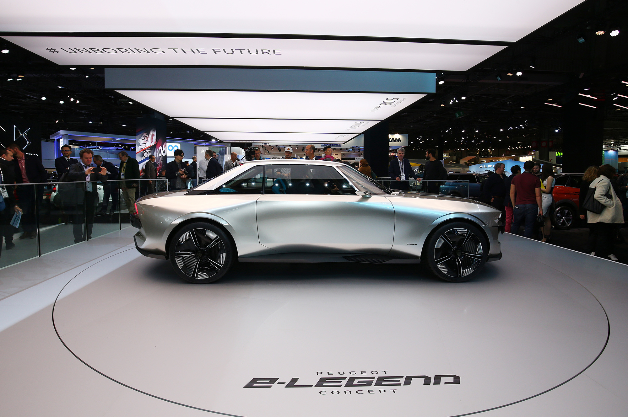 Концептуальное купе, подготовленное компанией Peugeot к Парижскому автосалону, действительно эксплуатирует тему ретро и не случайно названо e-Legend. Шеф-дизайнер Жиль Видаль дал такую характеристику: «Этот ультратехнологический архетип автомобильного удовольствия находит свою силу в ДНК купе Peugeot 504. Он формализует наш подход к дизайну Peugeot, который отвечает новым технологическим задачам автомобильной промышленности». Под новыми задачами понимается повальная электрификация, о чём говорит буква «е» в названии шоу-кара.