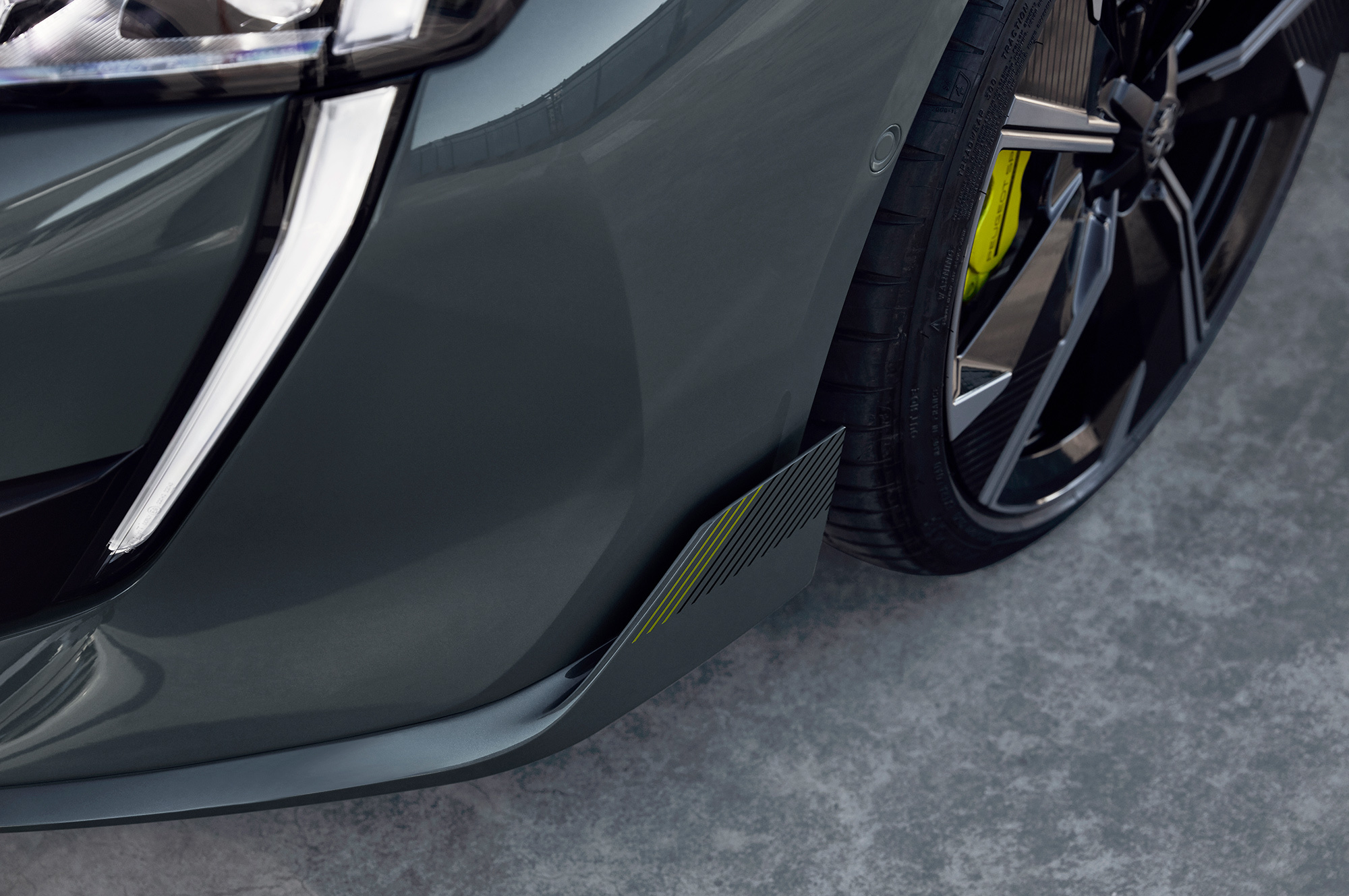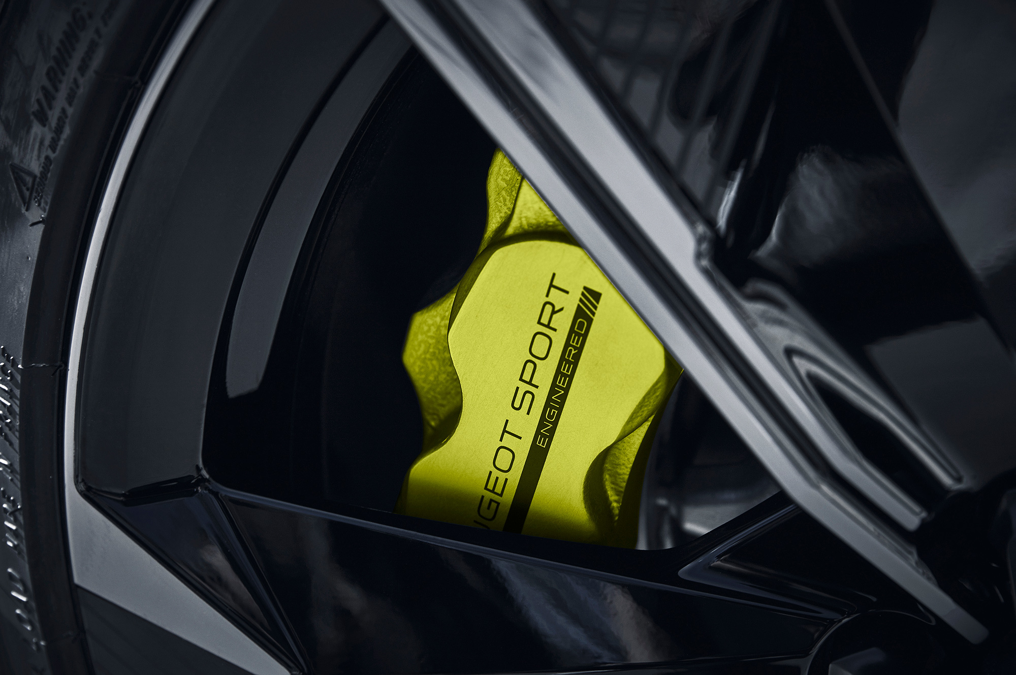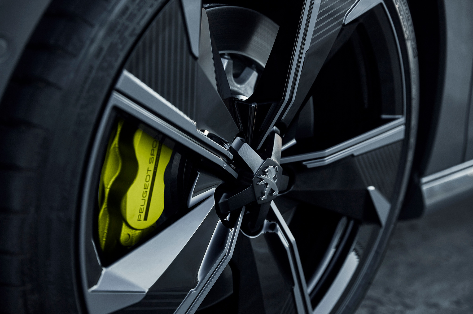 Инженерам пригодился опыт, полученный при создании прототипов Peugeot 208 Hybrid FE и 308 R Hybrid. Они доработали подвеску, в результате передняя колея расширена на 24 мм, задняя — на 12. Спереди стоят тормозные диски диаметром 380 мм с четырёхпоршневыми суппортами, проглядывающими сквозь 20-дюймовые легкосплавные диски. При выборе шин победили партнёрские Michelin Pilot Sport 4S размерности 245/35 R20.