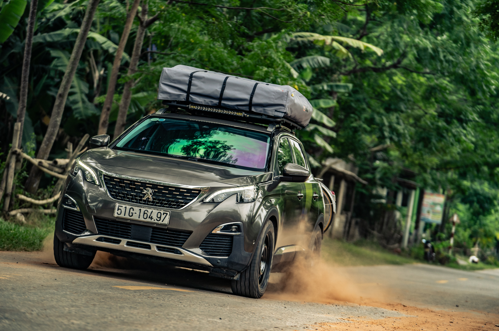 Надо полагать, разработчики концепта посчитали, что переднего привода кроссоверу вполне хватит для поставленных перед ним задач. Особенно в сочетании с продвинутой системой контроля тяги Advanced Grip Control с режимами «Снег», «Грязь», «Песок», ESP off. Просто к ней инженеры добавили стальные 17-дюймовые колёса с зубастыми внедорожными шинами Cooper AT3 и переднюю защитную пластину. Вся эта история с концептом, отправленным во Вьетнам, служит исключительно развлекательным целям и заодно рекламой 3008-го.