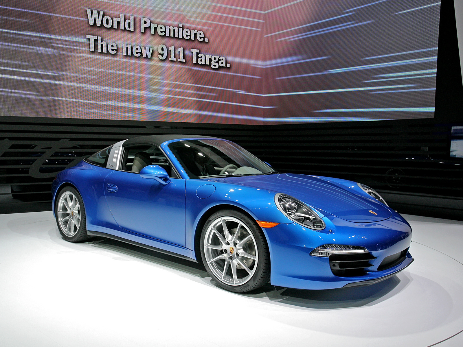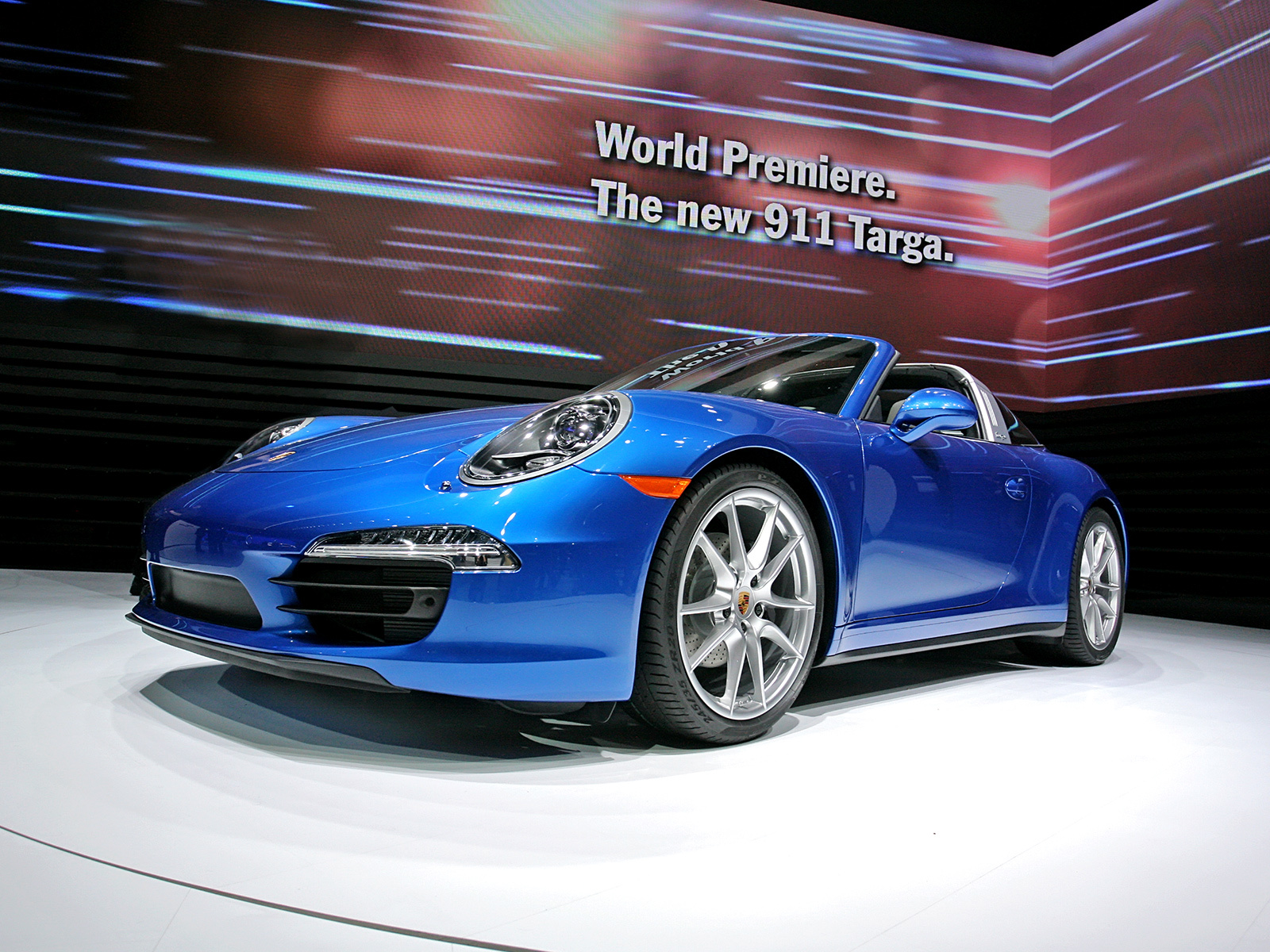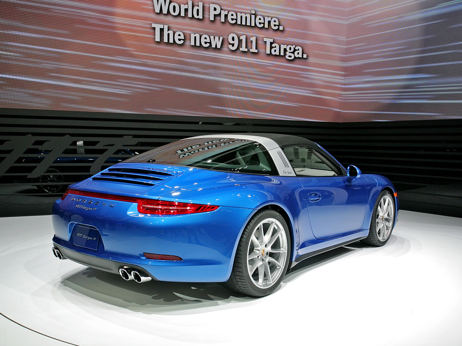 В Детройт немцы привезли двухдверку Porsche 911 Targa нового поколения. В этом нет ничего удивительного — модификации с таким названием выпускаются с 1966 года. Приятно удивило другое — то, что новинка создана по лекалам давно минувших лет, но с применением современных технологий. Перед нами теперь не спорткар с банальной сдвижной стеклянной крышей (такими Тарги стали с 1995 года), а «девятьсот одиннадцатая» — с дугой безопасности, прозрачным выпуклым колпаком за ней и съёмной центральной секцией крыши. Всё как у классических моделей 911 Targa образца конца 1960-х. Разница лишь в том, что современная Targa получила электропривод, убирающий часть верха в нишу над мотором.