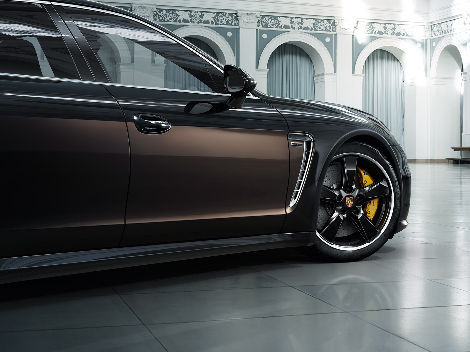 Автомобили из спецсерии будут окрашены вручную. Чёрный цвет на кузове плавно переходит в коричневый. Хэтчбеки Panamera обули в колёсные диски оригинального дизайна (20 дюймов). В салоне сиденья и нижние части дверей отделаны кожей Poltrona Frau коричневого цвета, центральная панель и верхние части дверей — чёрной кожей Nappa. Сзади установлена развлекательная система с 10,1-дюймовыми экранами, видеокамерами и DVD-плеером.