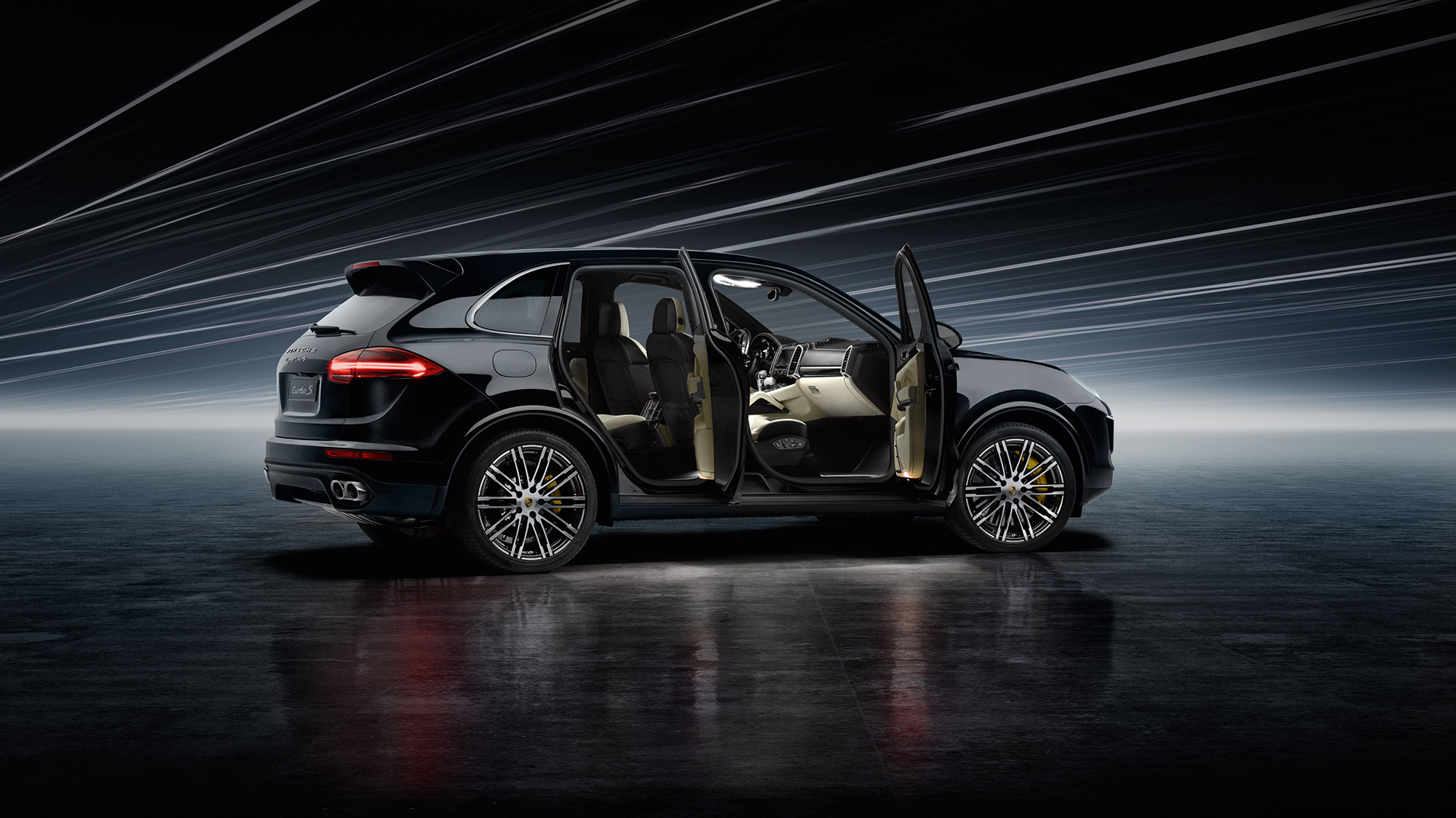 Создатели даже вывезли Cayenne Turbo S на Северную петлю, которую кроссовер проехал за 7:59.74. Из серийных паркетников такое время никому ещё не покорилось. Между прочим, это даже быстрее, чем результат 457-сильного купе Mercedes C 63 AMG. И, конечно же, такого итога невозможно добиться одним только двигателем. Супер-Кайен с электромагнитной муфтой в приводе передних колёс изначально оснащён адаптивными амортизаторами с оригинальной калибровкой, системой активного подавления кренов и задним редуктором с изменяемым вектором тяги. Но больше всего удивления вызывает тормозная система. На передней оси установлены аж десятипоршневые моноблочные суппорты, обнимающие 420-миллиметровые углеродокерамические диски. Заднюю ось тоже не обидели — сюда поставили четырёхпоршневые суппорты с 370-миллиметровыми блинами.