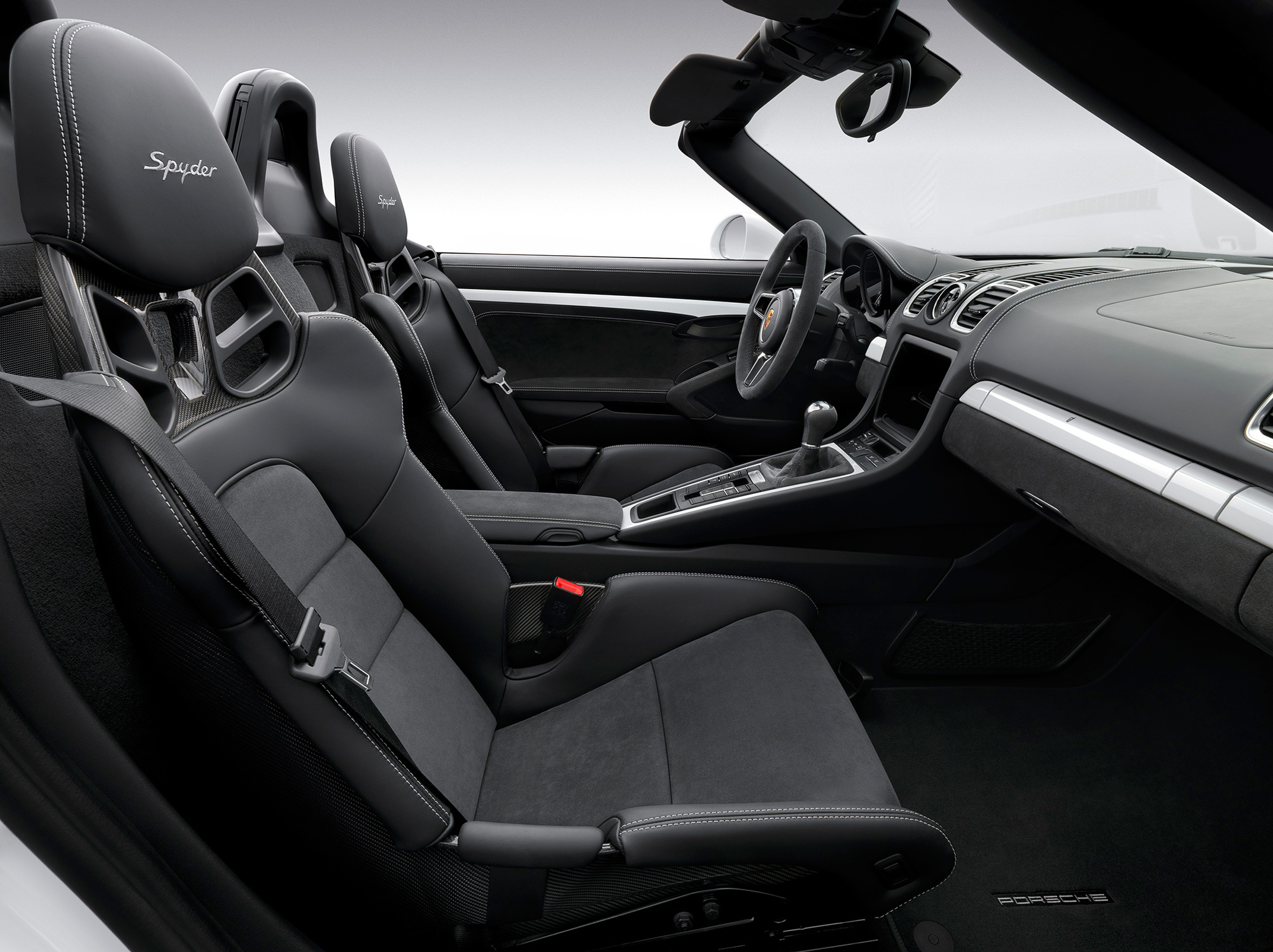 В Нью-Йорке дебютировала открытая модель Porsche Boxster Spyder, предназначенная для тех, кому поведение машины на треке или извилистом шоссе важнее комфорта. Мы предполагали, что в основе новой модификации будет лежать самая мощная на данный момент (330-сильная) версия Бокстера с индексом GTS, но всё оказалось куда интереснее. У нового Спайдера появился перенастроенный мотор 3.8 от Карреры S (как, к слову, и у недавно представленного Каймана GT4). Развивает он на Бокстере 375 сил (420 Н•м). Это на 10 л.с. меньше, чем на старшем Каймане при равном максимальном крутящем моменте.