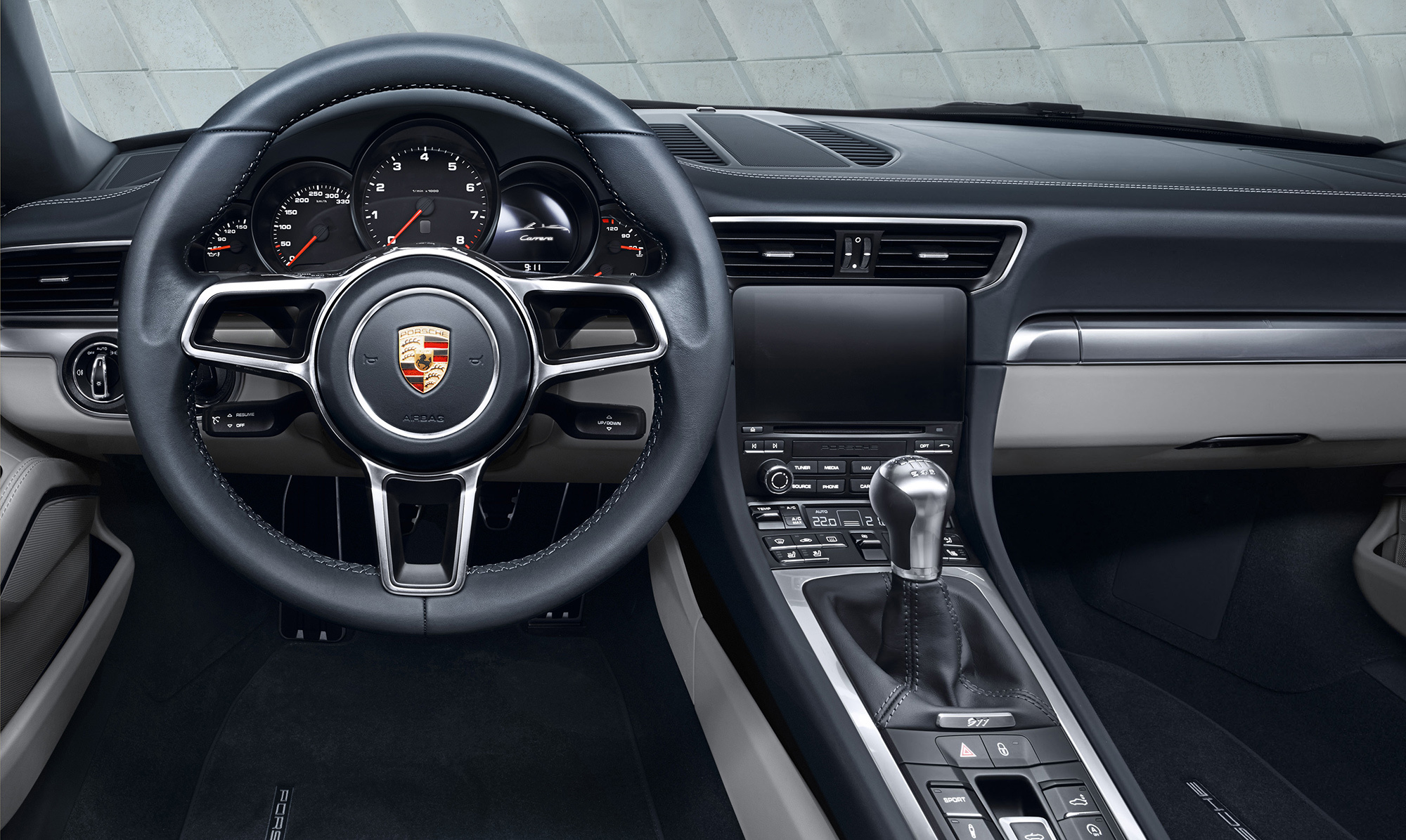Ещё на модели — новая мультимедиа Porsche Communication Management с семидюймовым экраном, распознающим жесты, как при управлении смартфоном, с навигацией на основе сервисов Google Earth и Google Street View, голосовым управлением, Wi-Fi и поддержкой интерфейса Apple CarPlay. Российское представительство компании уже опубликовало цены на обновлённые модели, которые до нас доберутся в январе. В частности, базовое купе 911 Carrera (с «механикой») подорожало на 194 000 рублей — до 5 375 000, а Carrera S — на 157 000 (до 6 128 000). Базовое купе с PDK оценено в 5 587 988 рублей. Учитывая задний привод, его можно сравнить с Ягуаром F-type. Такое купе с «автоматом» и мотором мощностью 380 л.с. стоит 5 143 000. За обновлённый кабриолет 911 в России попросят минимум 6 057 000 рублей.
