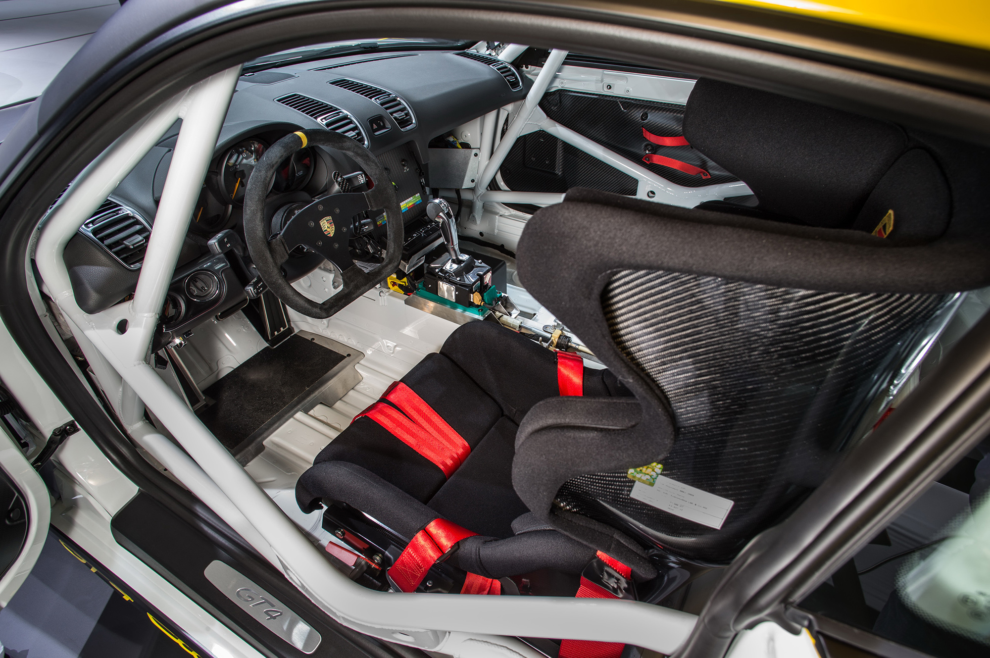 За $165 000 клиент получит серьёзный инструмент для настоящих мужчин. Стальной кузов и алюминиевые внешние панели заимствованы у обычного «джи-ти-четвёртого», но в салоне, лишённом отделки, находится лишь водительское сиденье и развитый каркас безопасности. Передняя подвеска со стойками McPherson полностью взята от болида 911 GT3 Cup, а аналогичная задняя от Каймана GT4 дополнена поперечными рычагами от кубкового «джи-ти-третьего». Тормоза ― вентилируемые чугунные роторы диаметром 380 мм «по кругу», шестипоршневые и четырёхпоршневые моноблочные суппорты спереди и сзади.