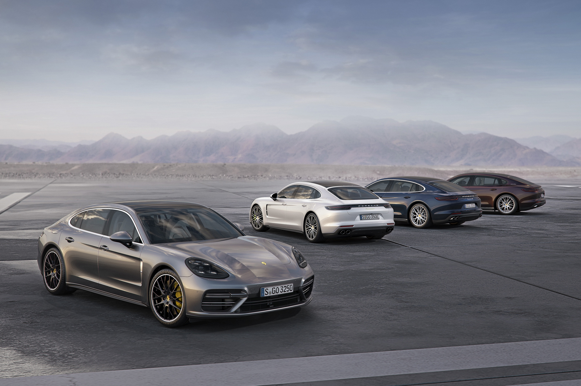 Вместе с длиннобазным вариантом немцы раскрыли данные новой начальной модели с простым названием Panamera (с задним приводом) и Panamera 4 (с полным приводом). Обе эти машины оснащены 330-сильной (450 Н•м) «шестёркой» с двумя турбокомпрессорами в развале блока. Похожая входит в состав гибрида Panamera, только у него рабочий объём 2894 см³, а здесь — 2995 см³. Новый агрегат на 20 сил мощнее, чем у базовой Панамеры в прошлом поколении, и при этом на литр бережливее (7,5 л/100 км). Разгон составляет 5,5 c (c пакетом Sport Chrono) у варианта с задним приводом и 5,3 с — с полным.