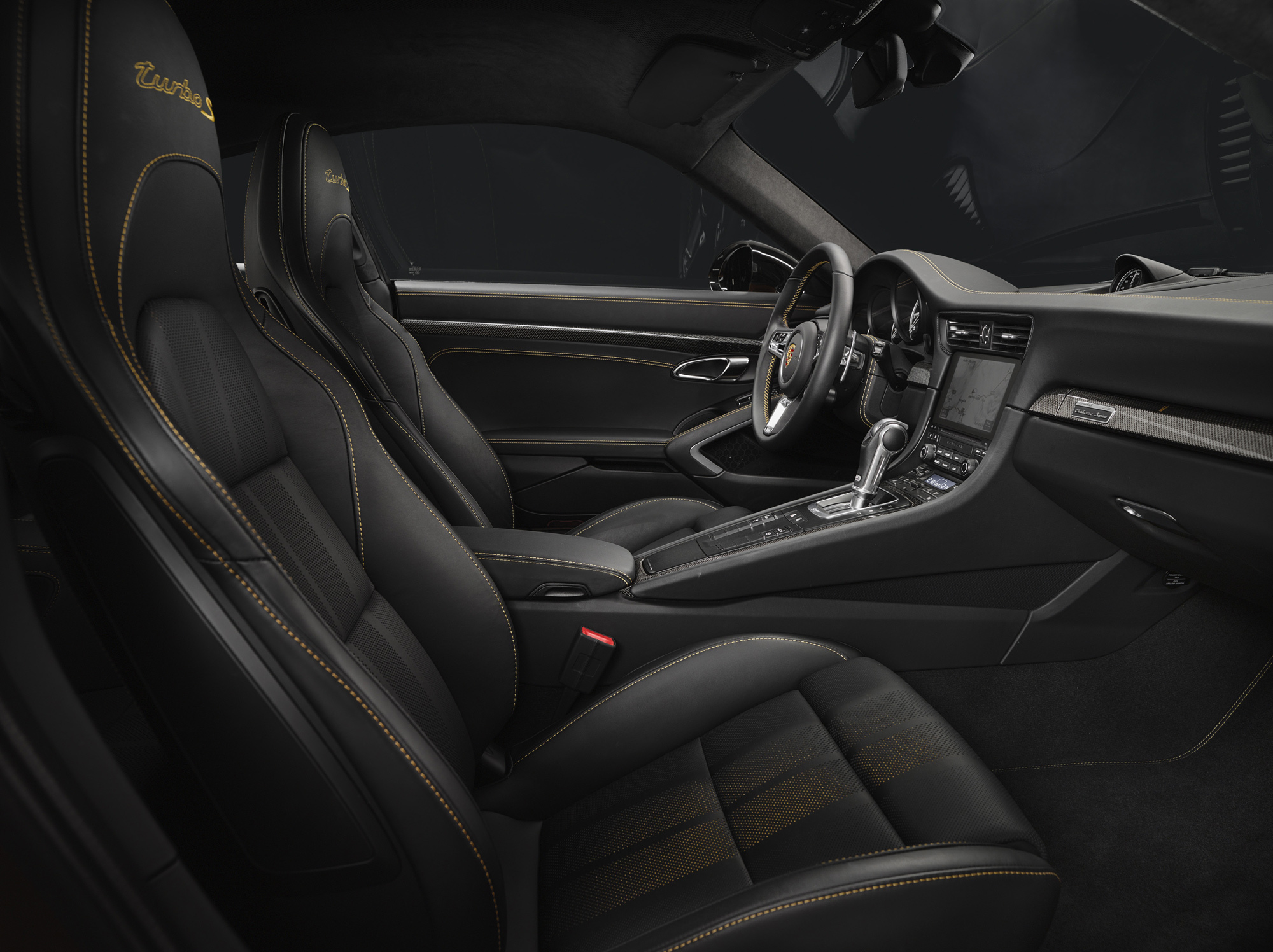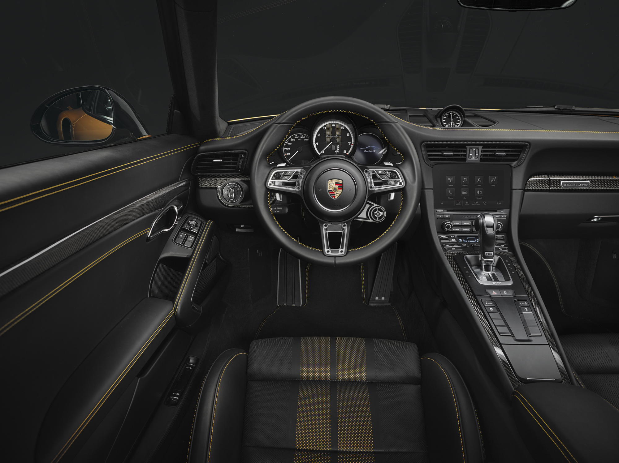 Паспортное время разгона с нуля до сотни не изменилось (2,9 с), как и максималка (330 км/ч) и средний расход топлива (9,1 л/100 км). Зато до 200 км/ч 911 Exclusive Series добирается быстрее: за 9,6 с после старта против 9,9 с у модели 911 Turbo S с пакетом Sport Chrono. К слову, адаптивное шасси PASM и пакет Sport Chrono входят в стандартное оснащение новой эксклюзивной серии, равно как углеродокерамические тормозные диски PCCB, активная система подавления кренов PDCC и управляемая задняя ось.