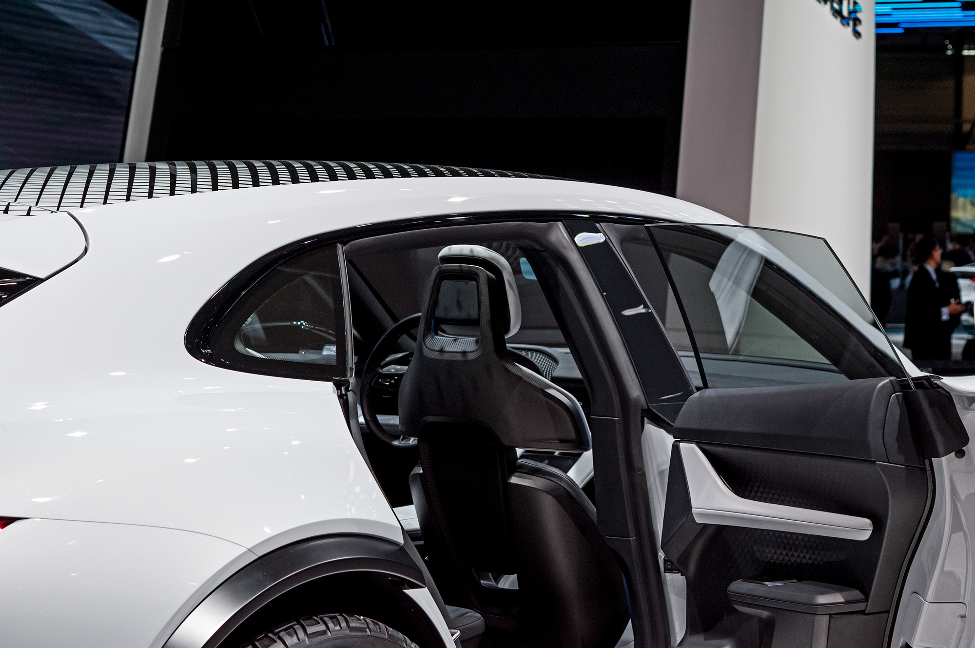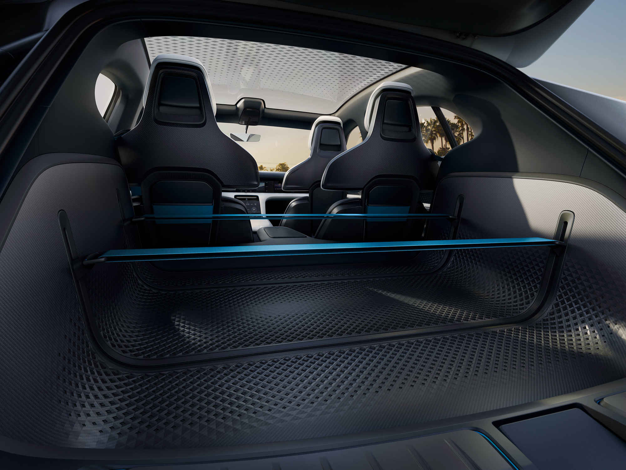 Одной из ключевых особенностей концепта является интерфейс человек-автомобиль. Цифровая приборка тут отслеживает направление взгляда водителя и выводит на передний план ту часть индикаторов, которая интересует его в данный момент. Центральный экран, занимающий всю пассажирскую сторону, фиксирует взгляд переднего пассажира, который получает возможность таким необычным способом управлять многими функциями. На руле есть сенсорные «умные кнопки», на тоннеле — крупный тачпад. А ещё сенсорные дисплеи встроены в блок стеклоподъёмников (там же регулировка кресел) и дефлекторы вентиляции. Система Smart Cabin адаптирует настройки климата и подвески к предпочтениям пассажиров и дорожной ситуации. А ещё многие настройки машины можно выполнять дистанционно (с планшета, смартфона или смарт-часов).