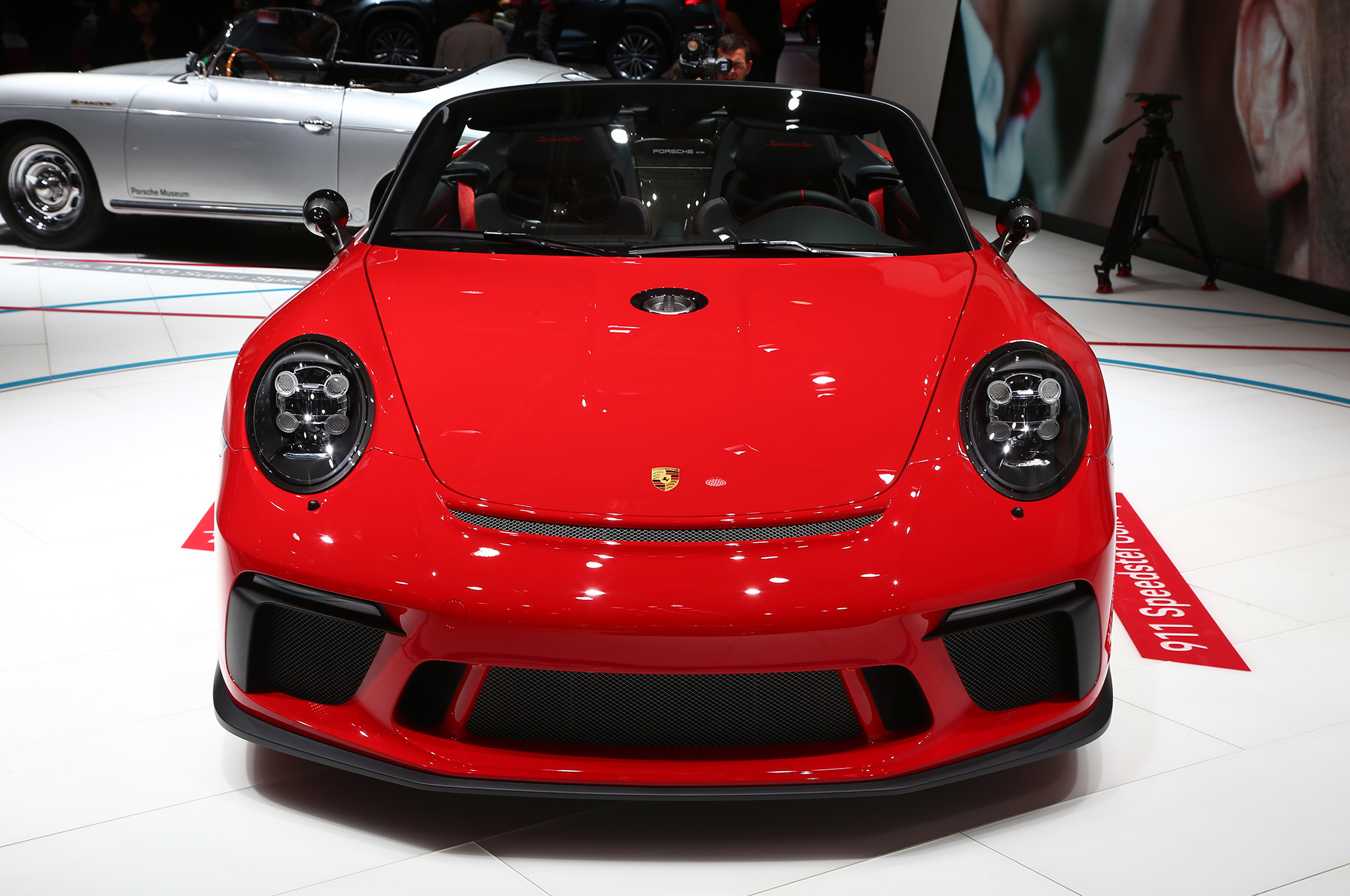 Концепт Porsche 911 Speedster, представленный летом в Цуффенхаузене, одобрен к мелкосерийному производству в первой половине 2019-го. Тираж ограничен 1948 экземплярами, поскольку это год рождения оригинального Спидстера 356. Но в Париж штутгартцы снова привезли концепт. Второй прототип отличается от первого только окрасом Guards Red, новыми колёсами диаметром 21 дюйм и отделкой салона перфорированной чёрной кожей с красными вкраплениями. «Все компоненты кузова и все технологии двух автомобилей идентичны», — указывает Porsche.