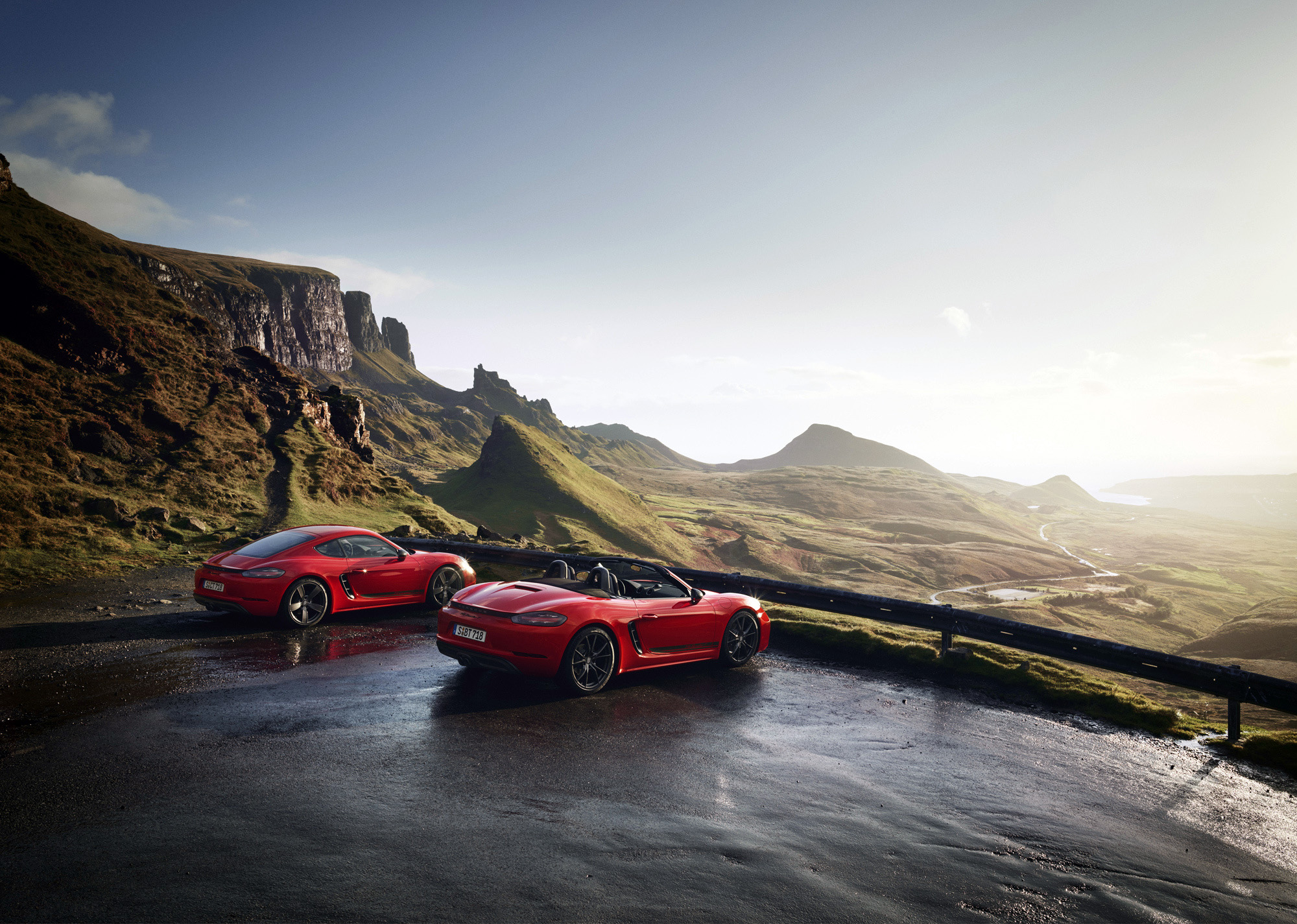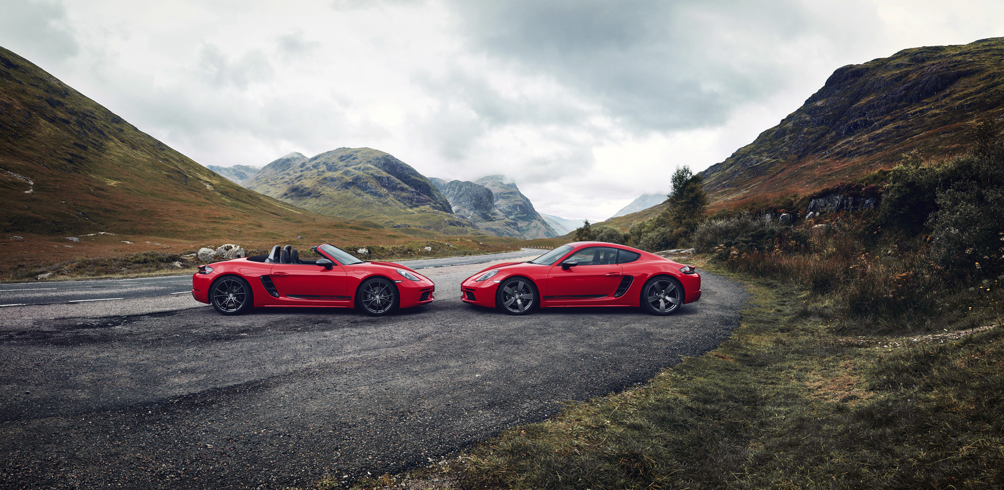 Идеология модели Porsche 911 T 1968 года, не самой мощной, но по мере возможности упрощённой и облегчённой, нацеленной на чистое удовольствие от вождения, в прошлом году была использована при создании современного купе 911 T. Теперь тот же рецепт компания применила для семейства Boxster/Cayman. Получилась пара с обозначением 718 Boxster T и 718 Cayman T. К слову, буква T в данном случае означает Touring (как и на 911-м).