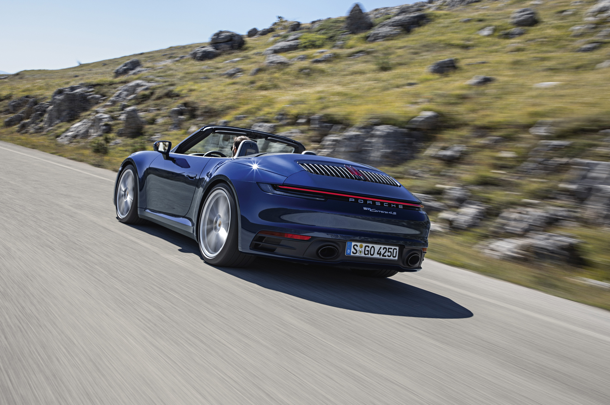 В семье Porsche 911 последнего поколения появился открытый вариант. Модель с приставкой Cabriolet в названии, как и купе, пока представлена лишь двумя модификациями: Carrera S и Carrera 4S. Они используют оппозитную турбошестёрку 3.0 с отдачей в 450 л.с. и 530 Н•м в сочетании с восьмиступенчатым «роботом». Отличаются они приводом (задний у S и полный у 4S). Версия 911 Carrera S Cabriolet набирает первую сотню за 3,9 с (3,7 с пакетом Sport Chrono), а 911 Carrera 4S Cabriolet — 3,8 и 3,6 с. То есть «открытка» проигрывает 0,2 с современному купе, но при этом на 0,4 с быстрее прошлого кабриолета в аналогичных исполнениях. Максималка заднеприводной версии равна 306 км/ч, а полноприводной — 304 км/ч.