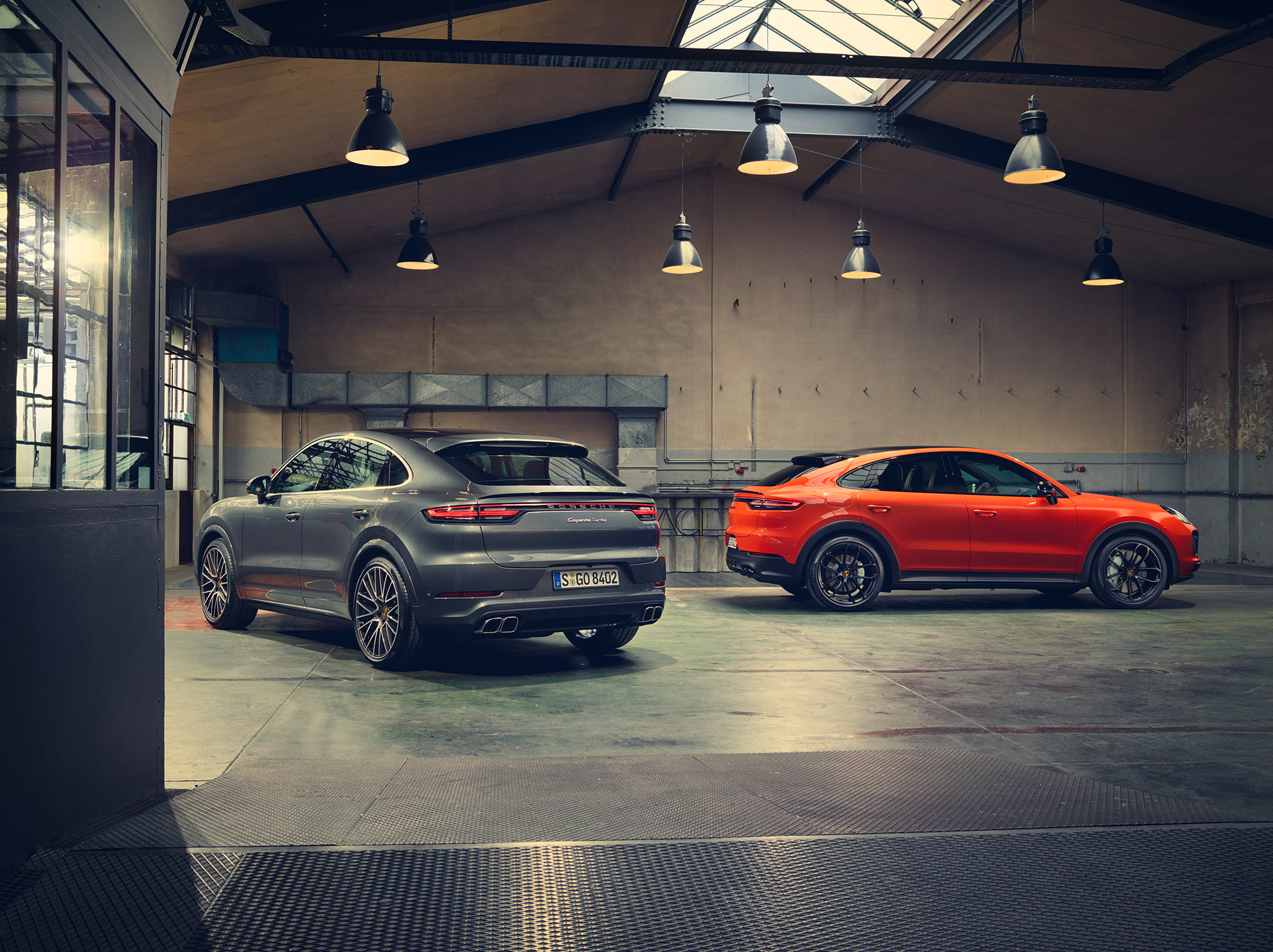 На момент выхода на рынок для купеобразного Кайена заявлено два мотора. Это турбошестёрка 3.0 (340 л.с., 450 Н•м), которая позволяет модели, по умолчанию оборудованной пакетом Sport Chrono, набирать первую сотню за 6,0 с. А с пакетом облегчённых деталей такой вариант кроссовера справляется с задачей за 5,9 с. Максималка трёхлитровой версии равна 243 км/ч. Облегчённый спортпакет предлагается в трёх версиях, в частности в него входят крыша из углепластика, 22-дюймовые колёсные диски GT Design, клетчатые тканевые вставки в сиденьях, декор из углепластика и алькантары, а на Turbo ещё и спортивная выхлопная система.