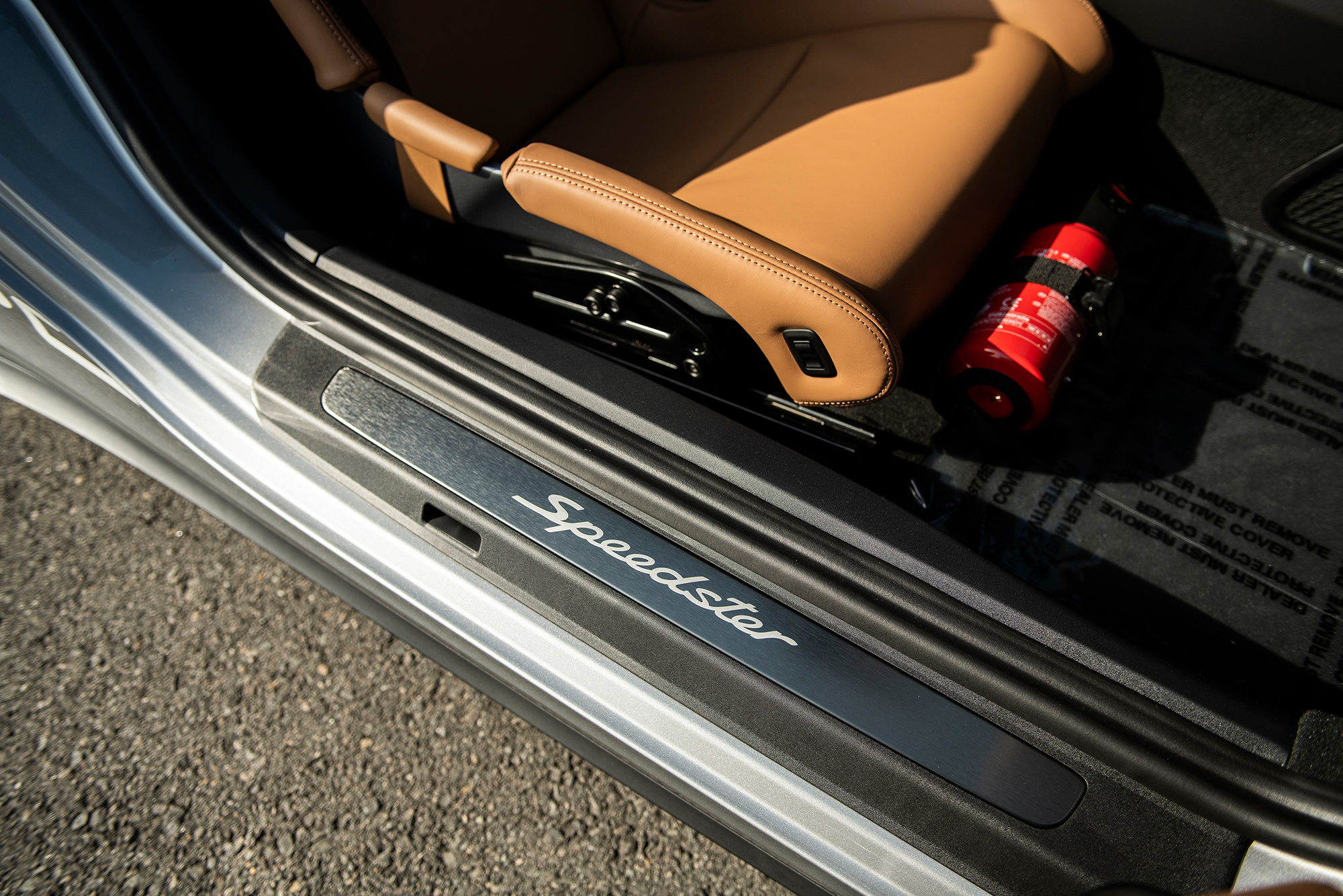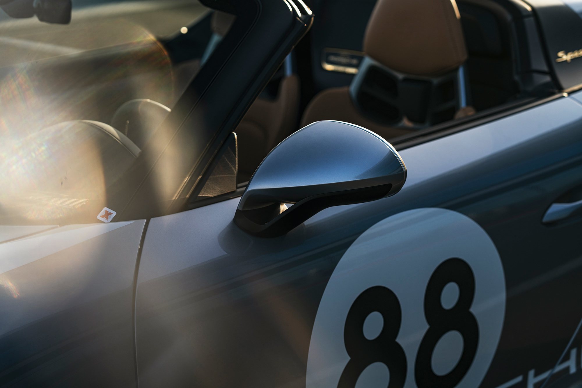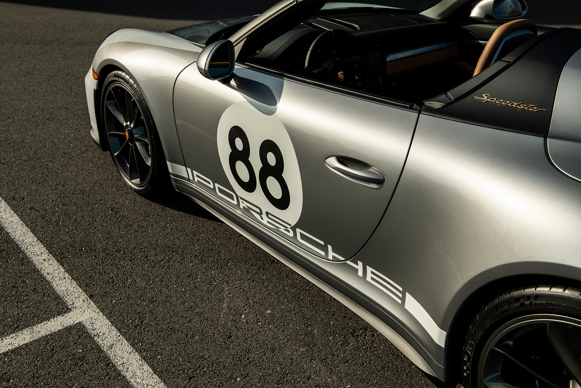 Победителю аукциона достанется Speedster с пакетом Heritage Design. Серебристый кузов в сочетании с наклейками на нём должны напомнить о гоночных моделях Porsche 356. Кованые 20-дюймовые колёса платинового цвета с чёрными центральными гайками также входят в комплект. Но по-настоящему уникальным аукционный Speedster делает комплектация, в которую входят эксклюзивные часы 911 Speedster Heritage Design от Porsche Design с калибром Werk 01.200 и ротором в форме колеса Спидстера. К автомобилю также прилагается единственный экземпляр книги в кожаном переплёте с историей производства конкретного Спидстера и скетчами дизайнеров модели.