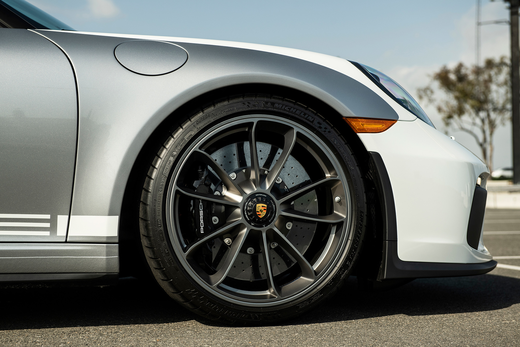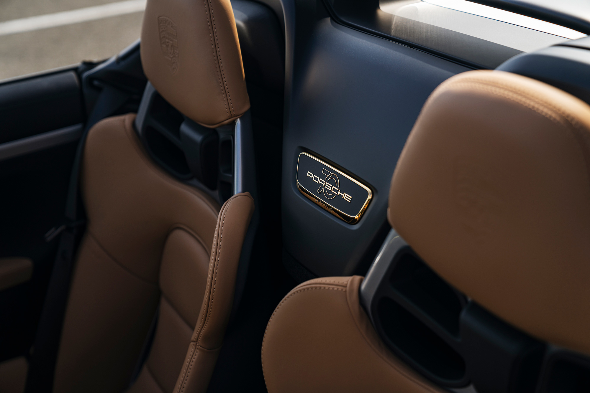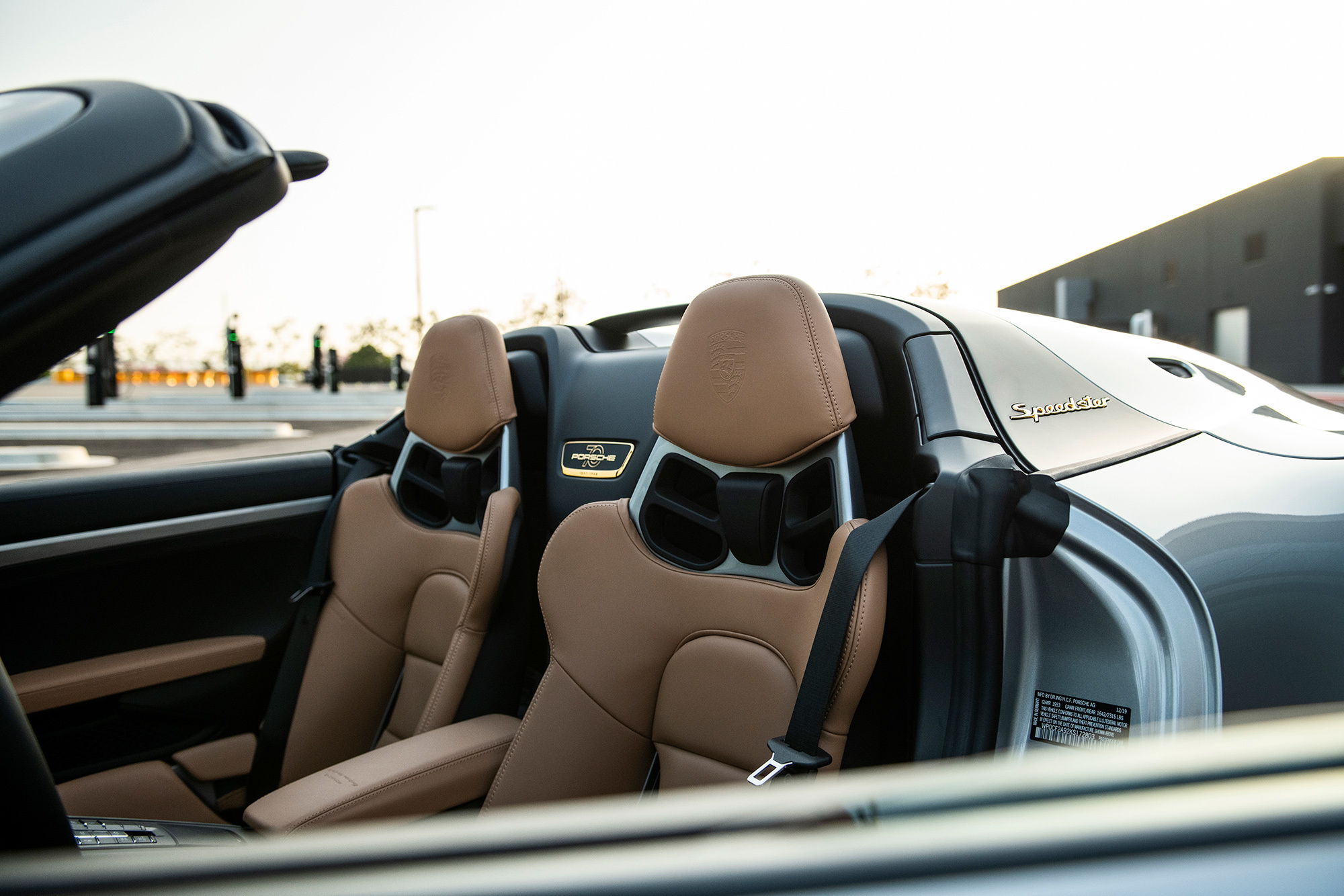 Победителю аукциона достанется Speedster с пакетом Heritage Design. Серебристый кузов в сочетании с наклейками на нём должны напомнить о гоночных моделях Porsche 356. Кованые 20-дюймовые колёса платинового цвета с чёрными центральными гайками также входят в комплект. Но по-настоящему уникальным аукционный Speedster делает комплектация, в которую входят эксклюзивные часы 911 Speedster Heritage Design от Porsche Design с калибром Werk 01.200 и ротором в форме колеса Спидстера. К автомобилю также прилагается единственный экземпляр книги в кожаном переплёте с историей производства конкретного Спидстера и скетчами дизайнеров модели.