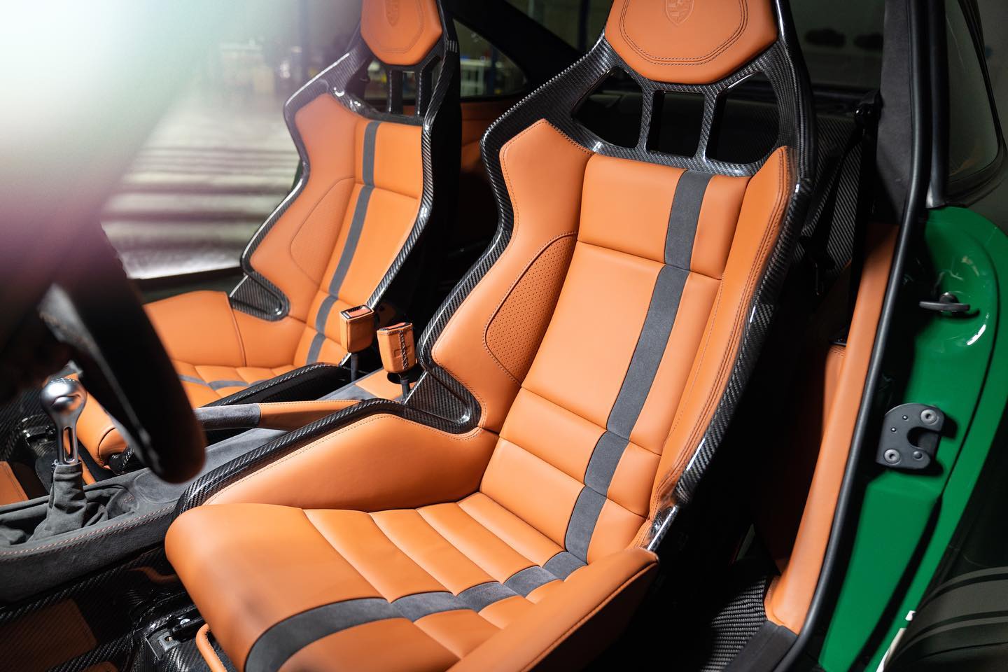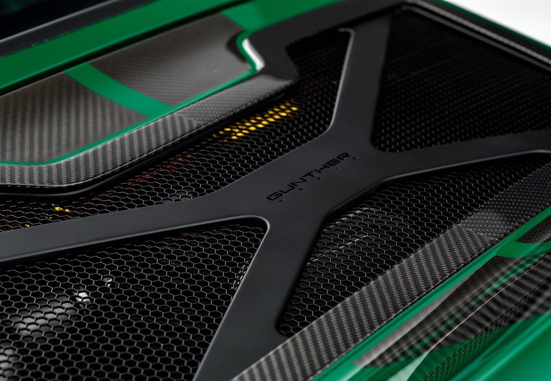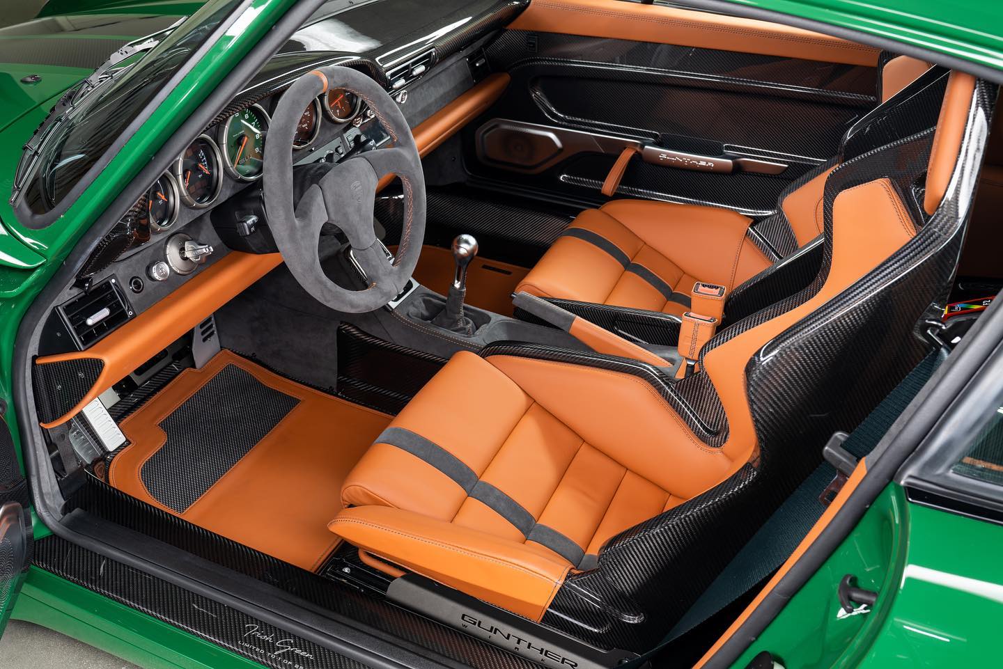 Сиденья построены на каркасе из углепластика, разработанном самой фирмой Gunther Werks. Кожей отделаны напольные углеволоконные коврики и пряжки ремней безопасности, из того же материала — петли, заменяющие внутренние дверные ручки и нулевая отметка на руле из алькантары. Все эти дизайнерские детали появились при индивидуализации проекта по программе GW Studio. Цена данного образца не названа, однако по прошлым работам ателье ясно, что речь идёт о полумиллионе долларов сверх стоимости машины-донора.