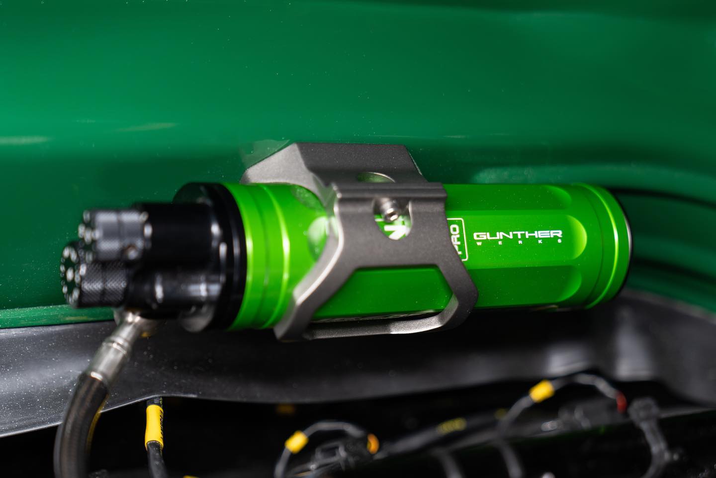 Как и во всех машинах серии 993 Remastered by Gunther Werks, американцы использовали здесь оппозитную «шестёрку» 4.0 от Rothsport Racing с отдачей в 441 л.с. и 454 Н•м, дополненную «механикой». Тормозные механизмы взяты у Brembo, а подвеска доработана с применением компонентов от Eisenlohr Racing и JRZ Suspension Engineering. Чтобы поддержать внешнюю зелёную окраску, ателье поставило на купе анодированные зелёные выносные резервуары амортизаторов, а в салоне — тахометр того же цвета.