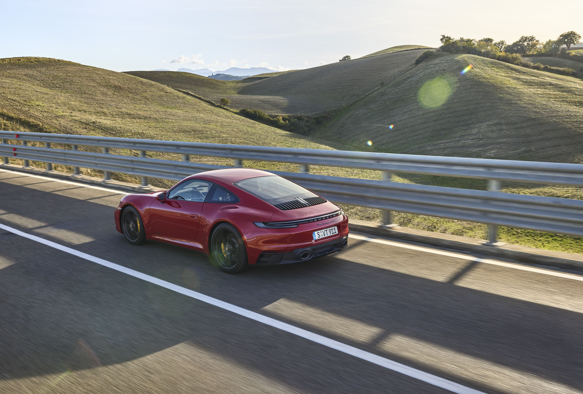 Все модели 911 GTS используют восьмиступенчатый «робот» PDK, который по желанию можно заменить на семиступенчатую «механику». Купе Carrera 4 GTS с «роботом» справляется с набором сотни с нуля за 3,3 с. Это на 0,3 с быстрее, чем аналогичная вариация в прошлом поколении после обновления. Динамика логично соответствует положению «джи-ти-эсок» в линейке 911-х. Для сравнения, Carrera 4S даже с пакетом Sport Chrono ускоряется до ста за 3,4 с, ориентированный на трек 510-сильный 911 GT3 за те же 3,4, а вот 580-сильный 911 Turbo укладывается в 2,8 с.