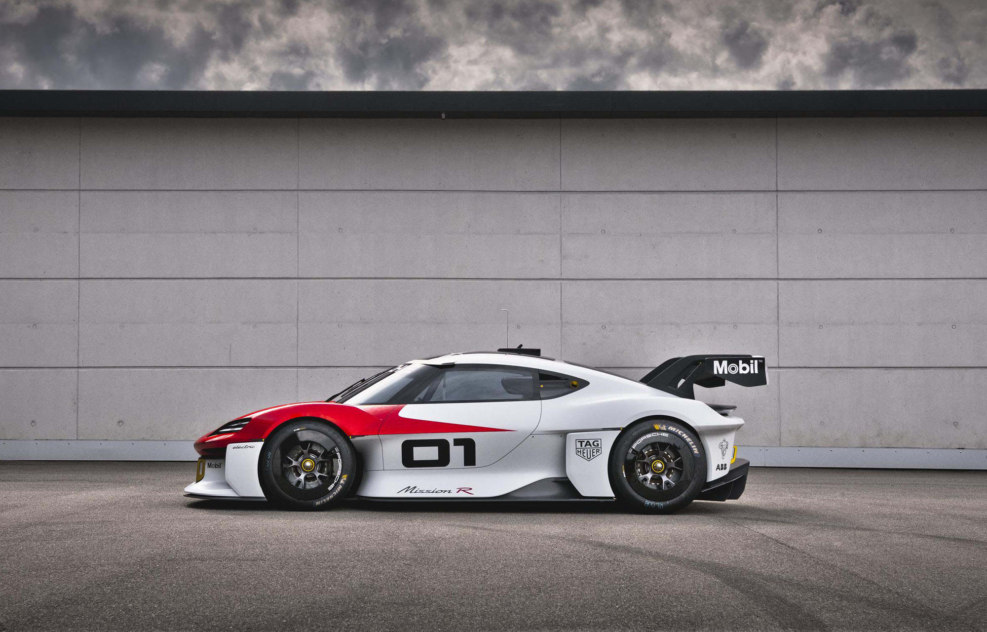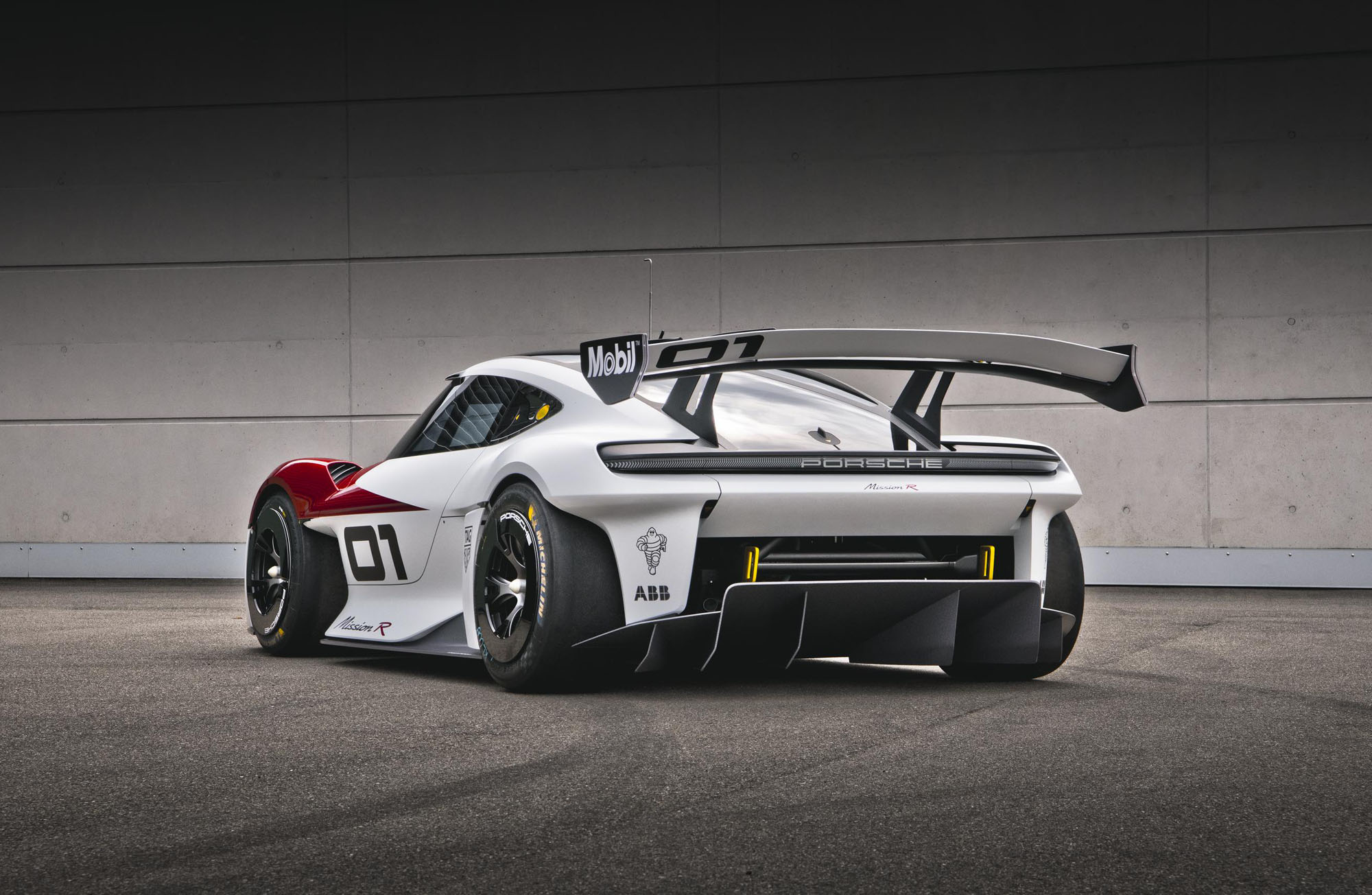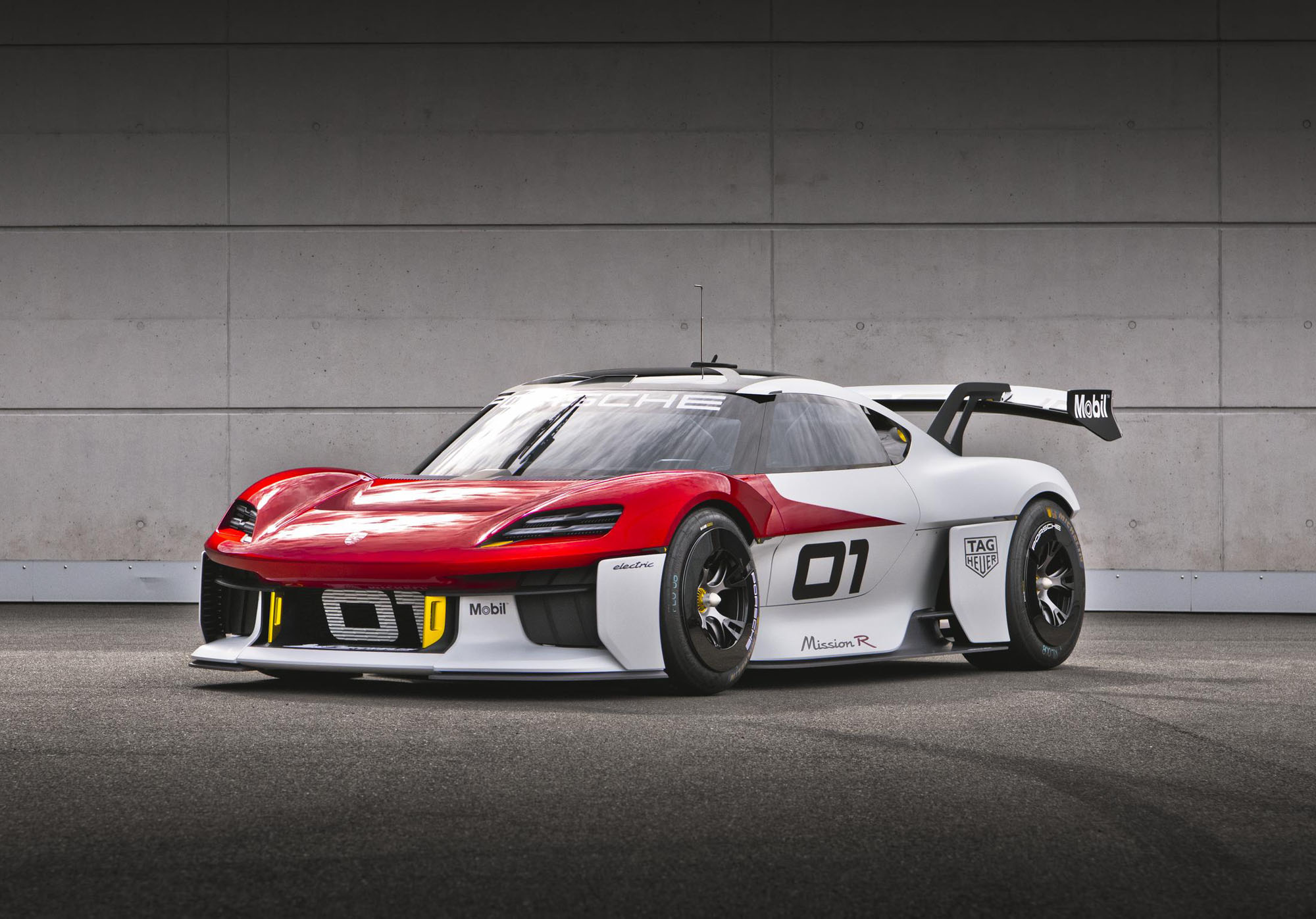 Полноприводное купе с двумя электромоторами в режиме квалификации располагает поголовьем в 800 кВт (1088 л.с.), что позволяет набирать первую сотню быстрее 2,5 с. Максималка превышает 300 км/ч. В гоночном режиме пара электромоторов выдаёт суммарно до 500 кВт (680 л.с.) постоянной мощности и не перегревается. Как и батарея, они получили непосредственное масляное охлаждение. Пиковая отдача каждого двигателя в отдельности выше: у переднего она равна 320 кВт (435 л.с.), а у заднего — 480 кВт (653 л.с.). По оценке Porsche, батареи ёмкостью 80 кВт•ч хватит на спринтерскую гонку, причём даже в конце отдача моторов снижаться не будет. Разработчики говорят, что на кольцевых трассах Mission R проходит круги с тем же временем, что и гоночный Porsche 911 GT3 Cup 992.