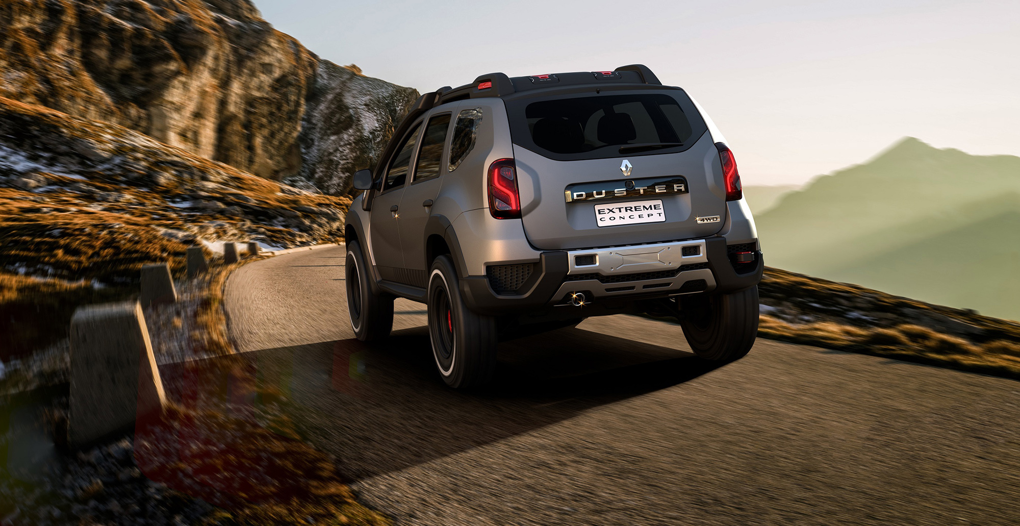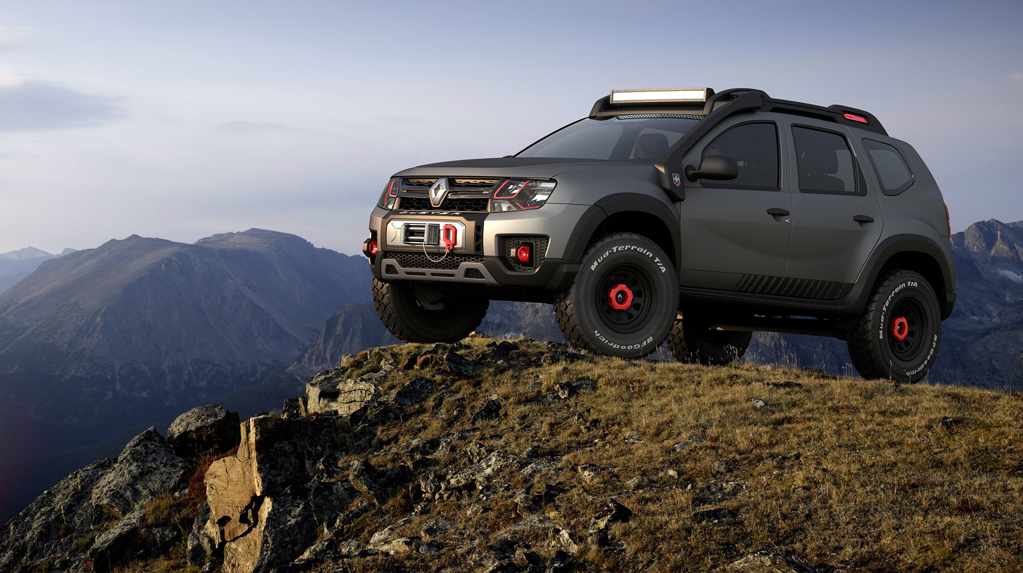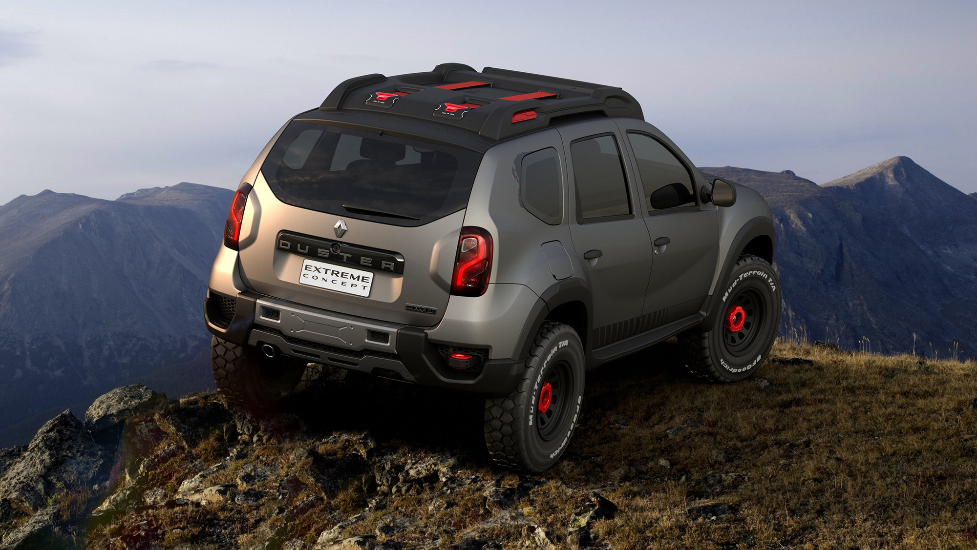 Другой пример вседорожных украшательств — концепт Renault Duster Extreme. У него перекроенные бамперы, крупные колёса с зубастыми покрышками, «люстра» и багажник на крыше, лебёдка... Вполне традиционный набор для подобного рода упражнений. Машина должна напомнить зрителям об обычном Дастере, который в Бразилии продаётся с моторами 1.6 и 2.0, с передним и полным приводом.