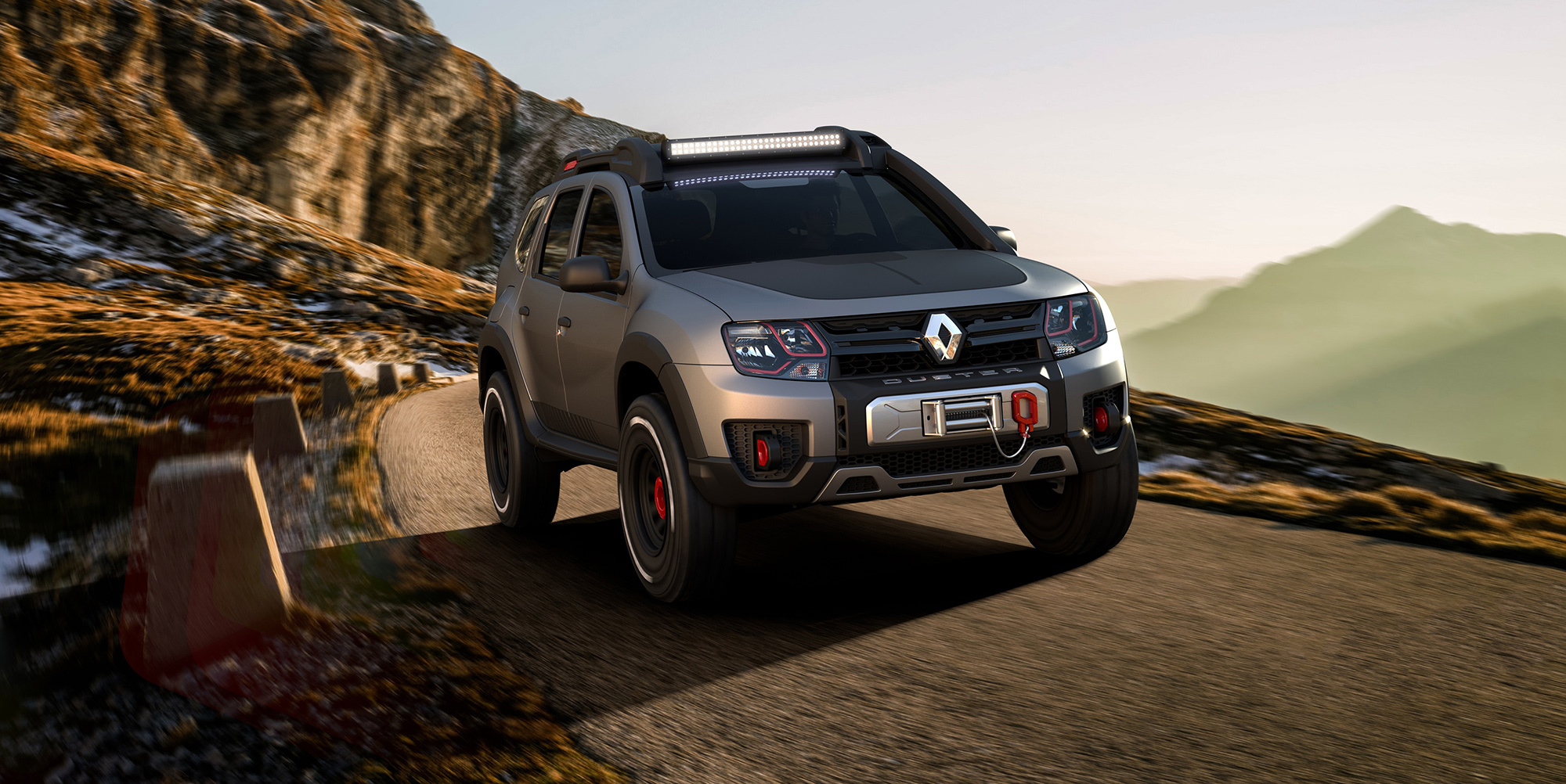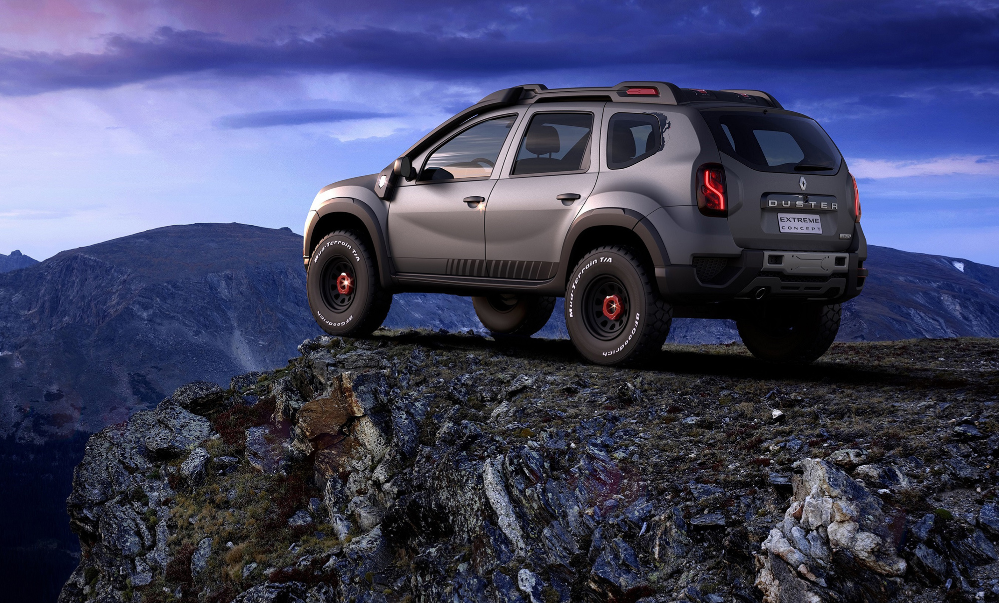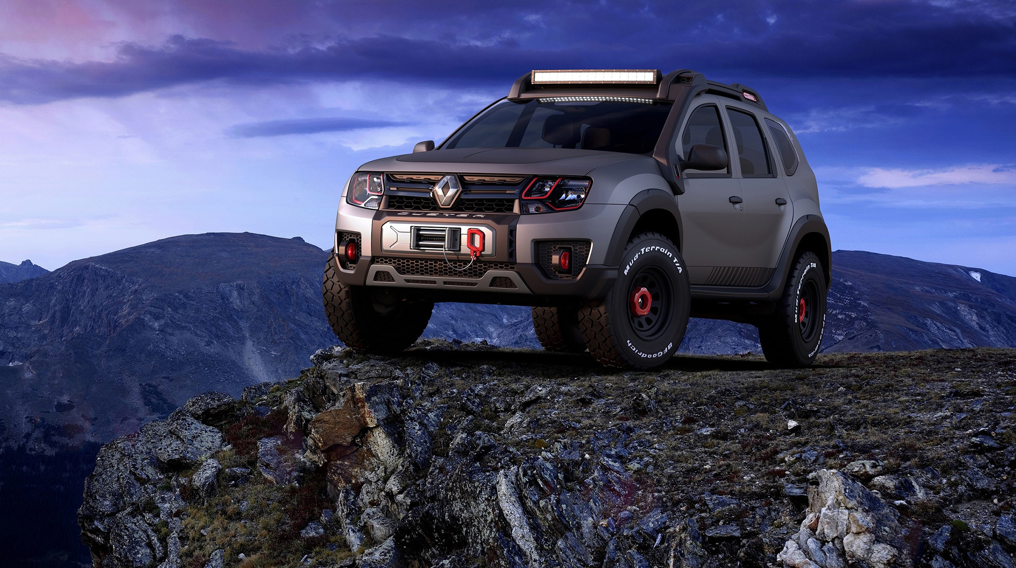 Другой пример вседорожных украшательств — концепт Renault Duster Extreme. У него перекроенные бамперы, крупные колёса с зубастыми покрышками, «люстра» и багажник на крыше, лебёдка... Вполне традиционный набор для подобного рода упражнений. Машина должна напомнить зрителям об обычном Дастере, который в Бразилии продаётся с моторами 1.6 и 2.0, с передним и полным приводом.