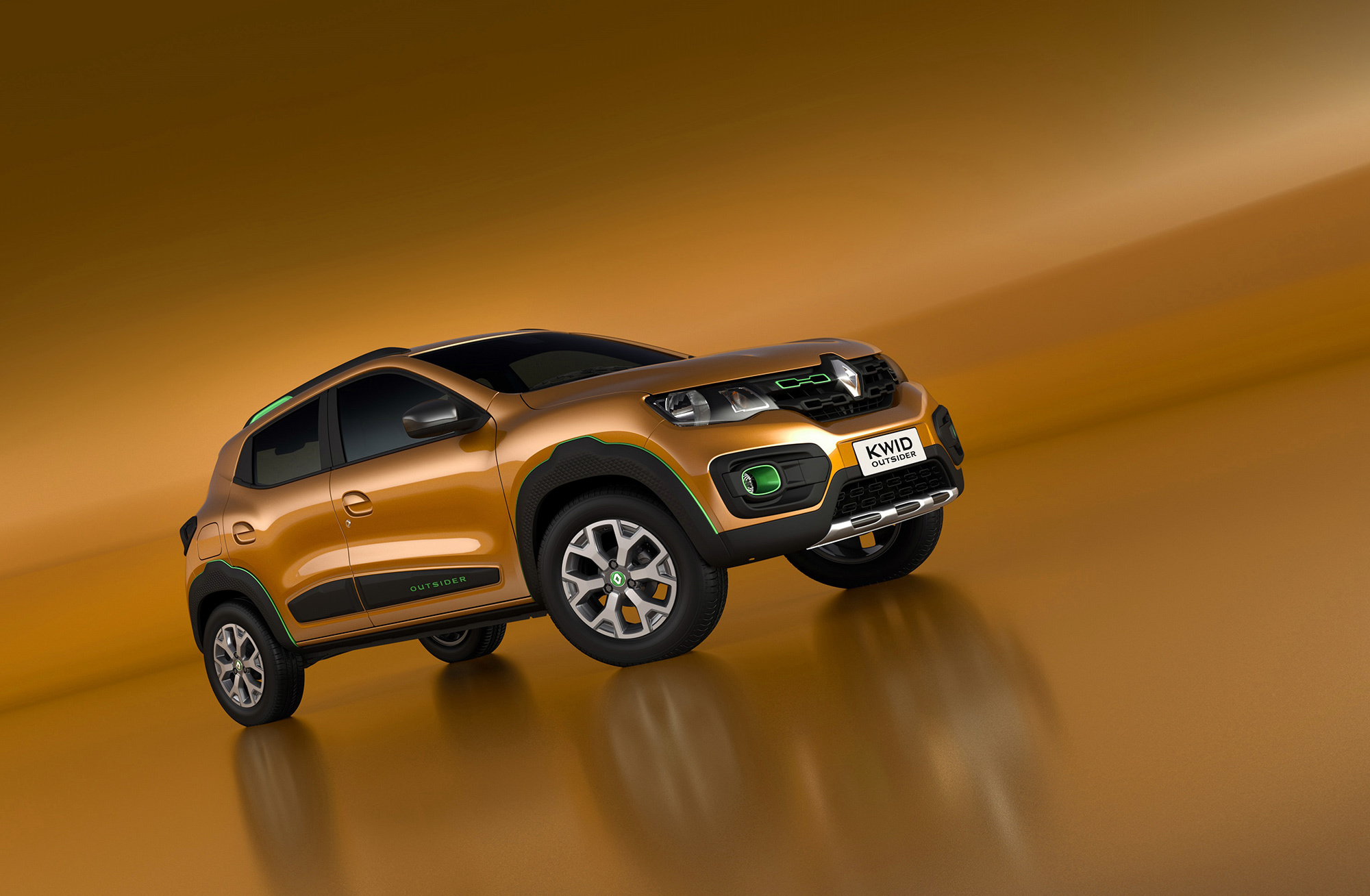 Компания Renault представила на автосалоне в Сан-Паулу несколько серийных машин и шоу-каров, призванных привлечь интерес опять же к серийным легковушкам. Среди них особого внимания заслуживает симпатичная субкомпактная модель Kwid, добравшаяся до местного рынка. Сам по себе этот хэтчбек претендует на некие «гены» кроссовера. А для автошоу его вдобавок приодели, превратив в концепт Kwid Outsider.