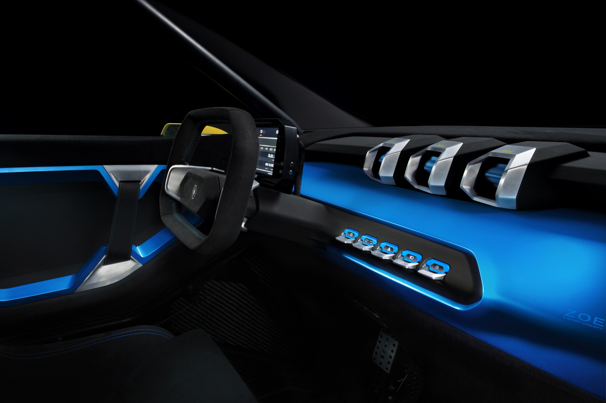 Такой Zoe купить захотели бы многие: шутка ли — тут два электромотора суммарной отдачей 340 кВт (462 л.с.) и крутящим моментом 640 Н•м. Двигатели расположены на обеих осях и разгоняют e-Sport с до сотни за 3,2 с, а максималка концепта ограничена на уровне 210 км/ч. Этой скорости полноприводный аппарат достигает через 10 с после старта.